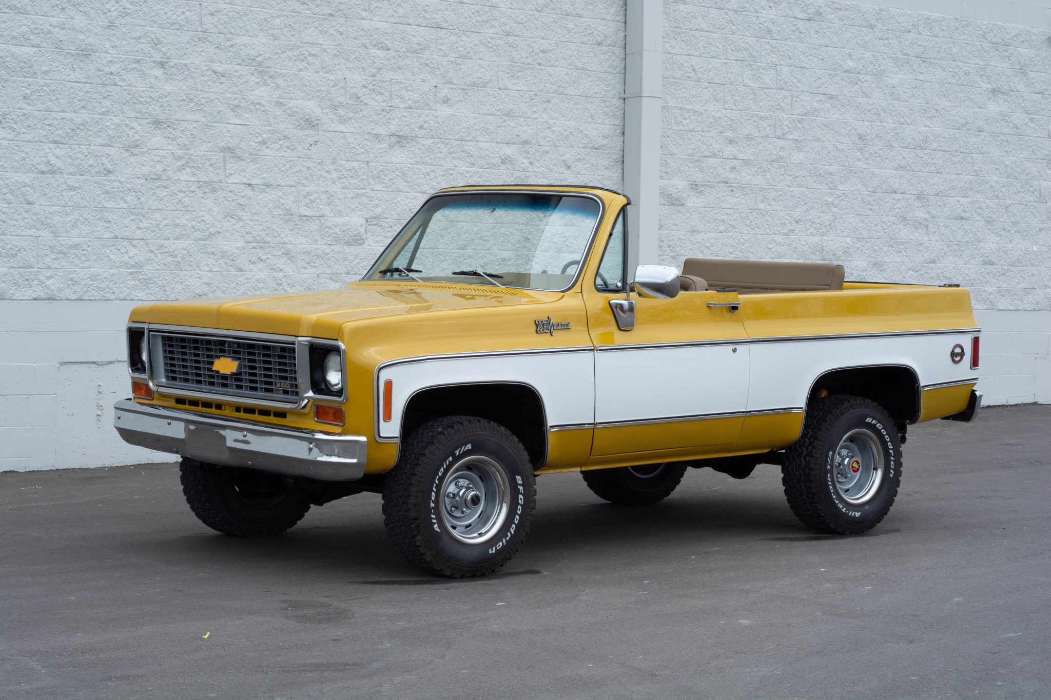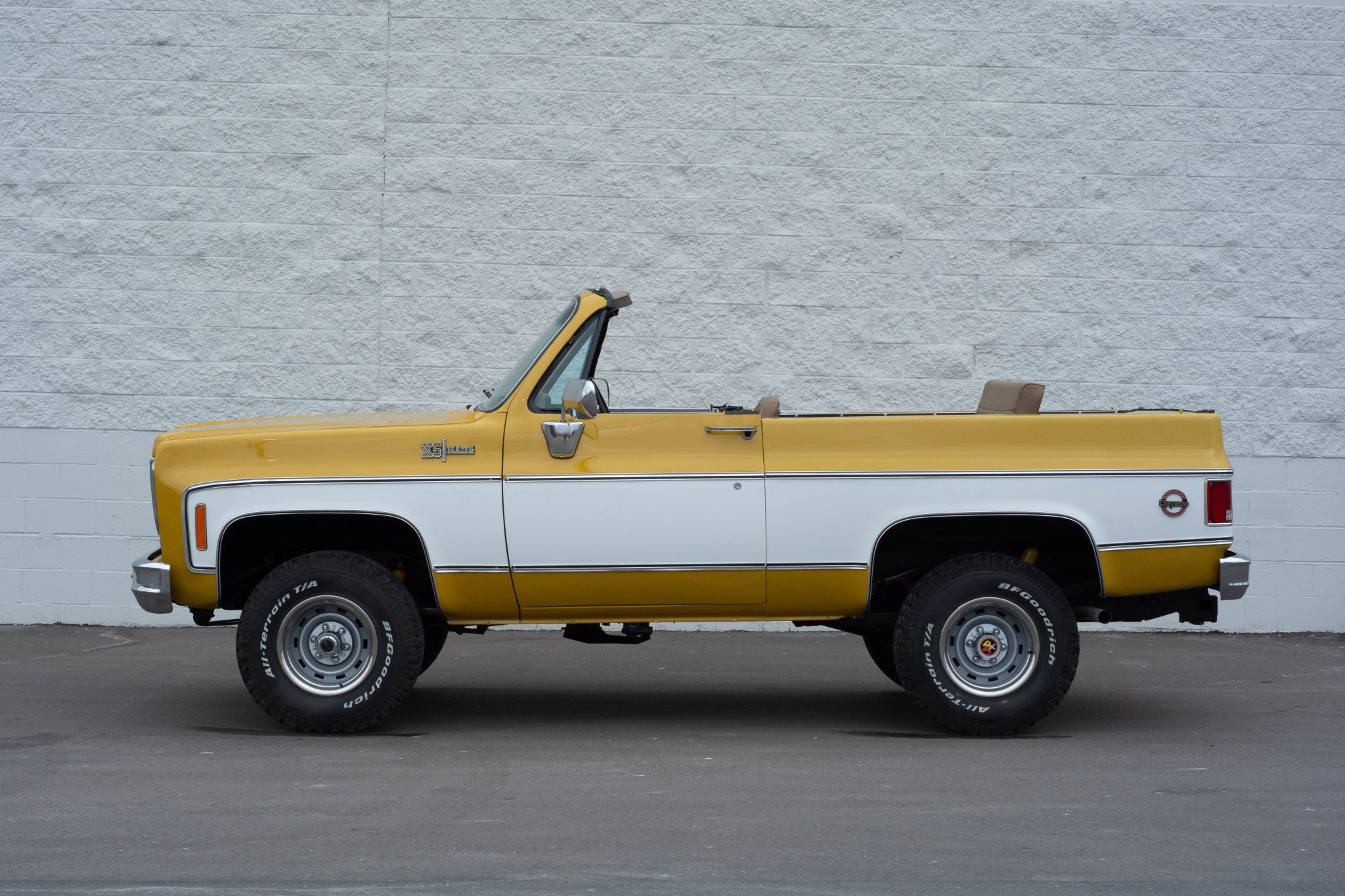 Replacement 15″ steel wheels with polished trim rings are fitted with BFGoodrich All-Terrain KO tires. The shocks and front leaf springs were replaced as well as the power steering pump and steering stabilizer.