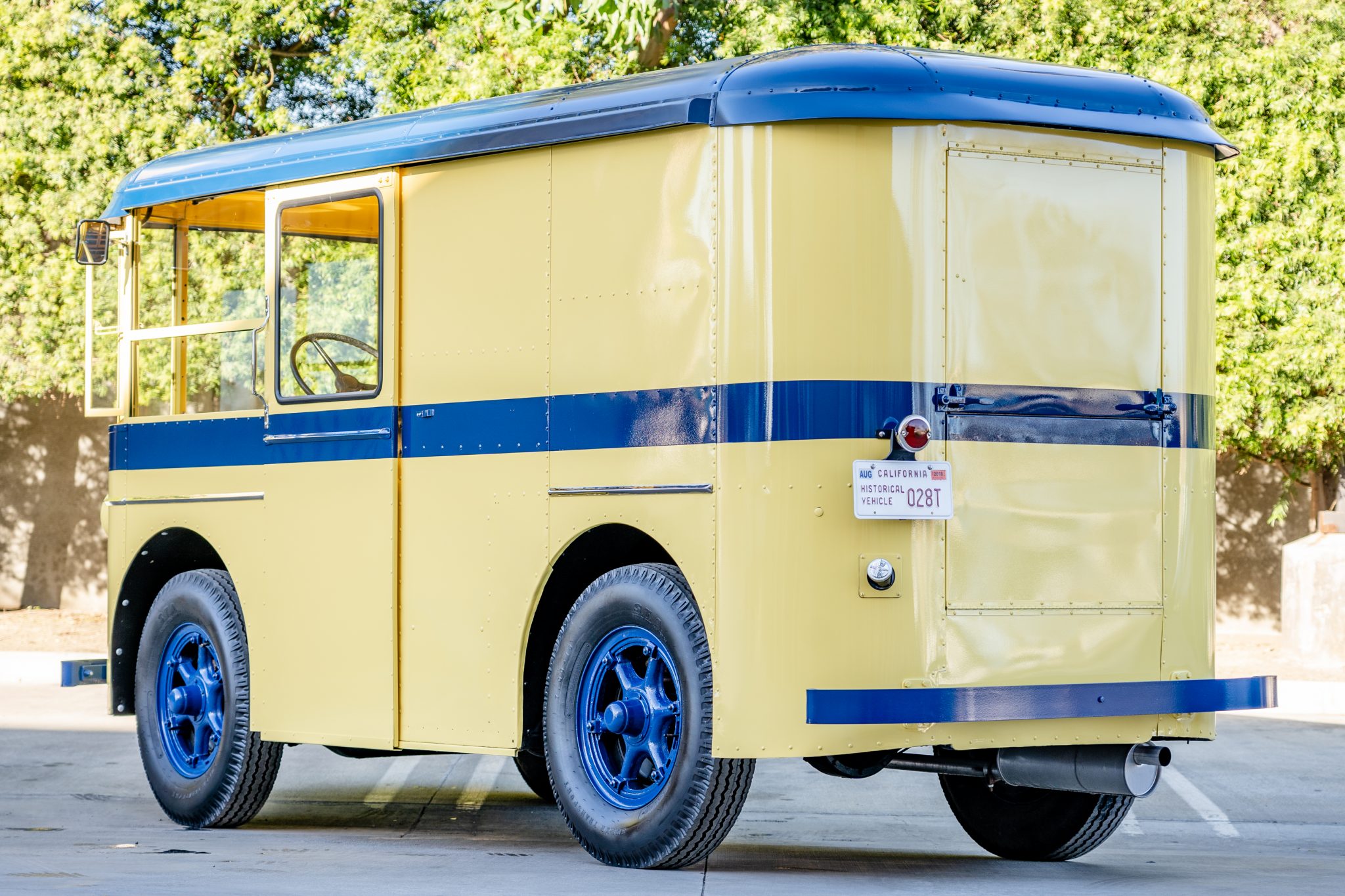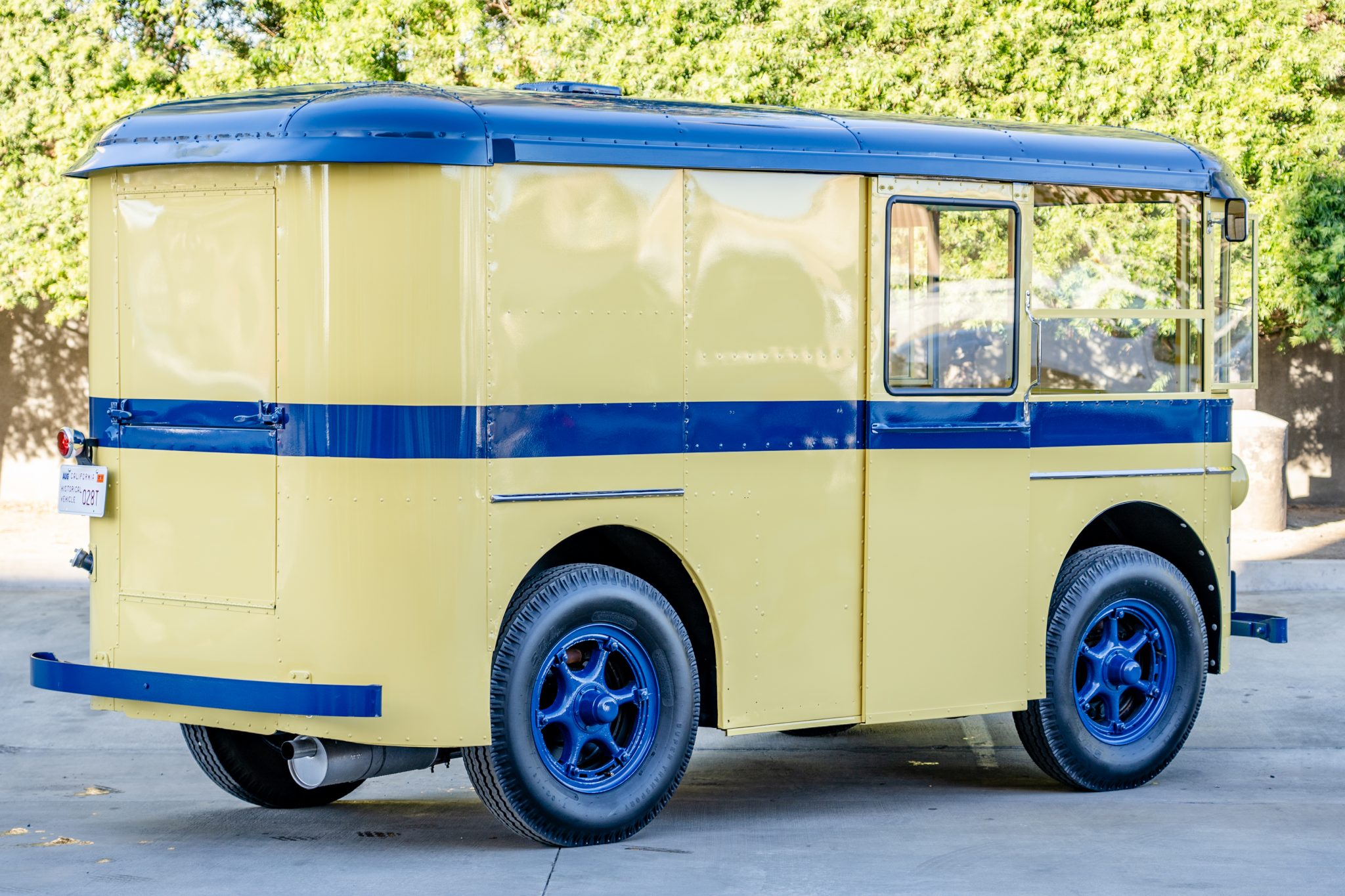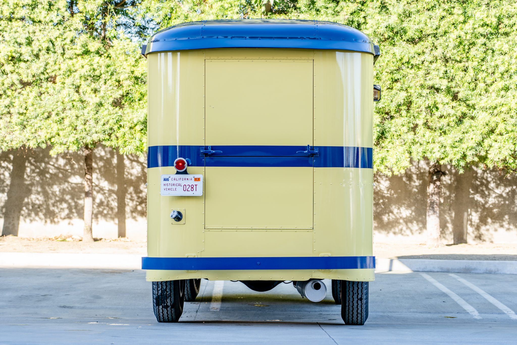 18″ Dayton steel-spoked wheels are wrapped in S.T.A. Super Transport tires. Braking is handled by four-wheel hydraulic drums with exposed shoes and wheel cylinders. The suspension utilizes solid axles and leaf springs at the front and the rear.