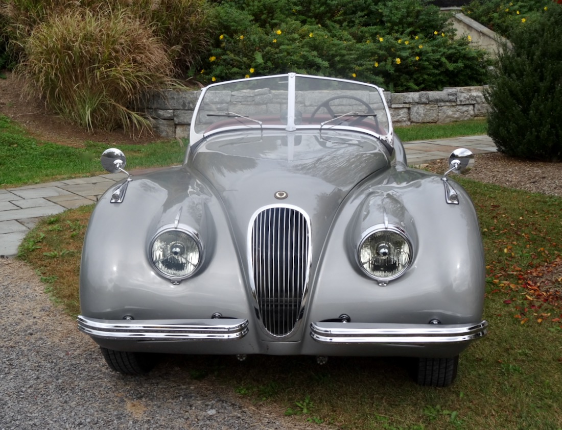 Exterior features include split front bumpers, rear bumperettes, bright trim, a split windshield, fender-mounted mirrors, and rear wheel spats. The seller notes an area of cracked and peeling paint on the cowl, an imperfection at the rear edge of the driver’s door, and a scuff in the soft top, close-up photos of which can be viewed in the gallery. Accompanying black side curtains and a tonneau cover are included in the sale and pictured below.