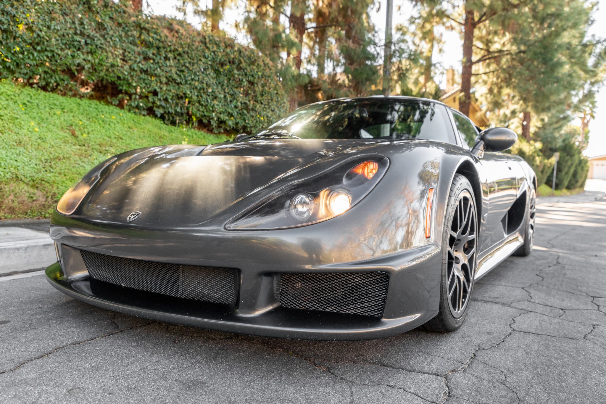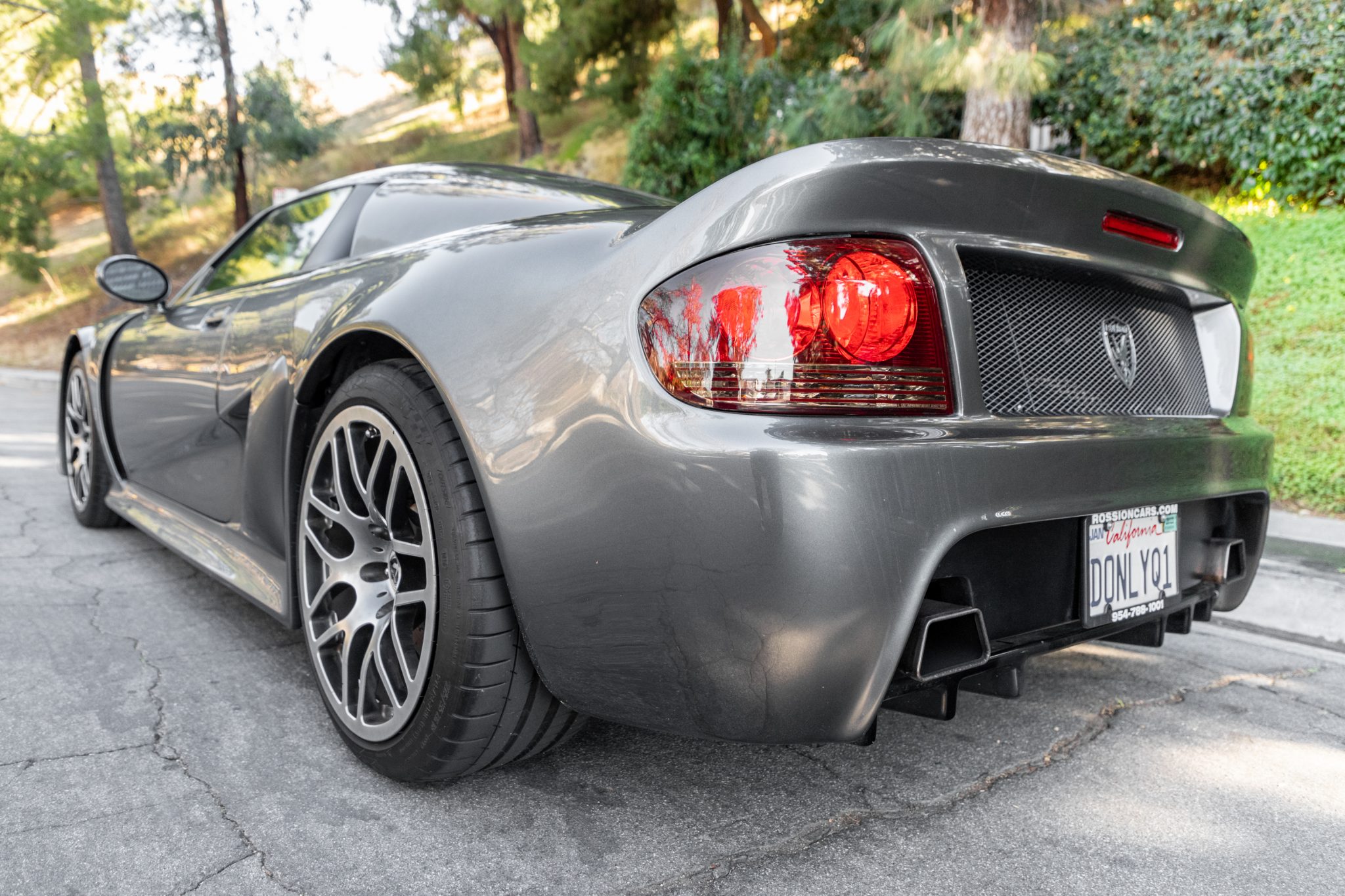 18″ Rossion forged alloy wheels are wrapped in Michelin Pilot Super Sport tires measuring 225/40 up front and 275/35 out back. Braking is handled by cross-drilled and ventilated discs paired with Rossion branded calipers, and the suspension features adjustable coilovers at all four corners.