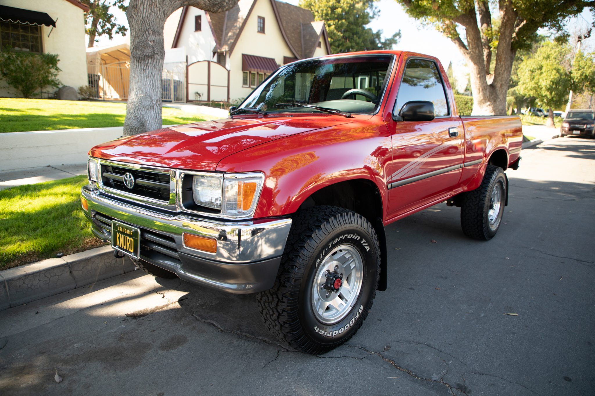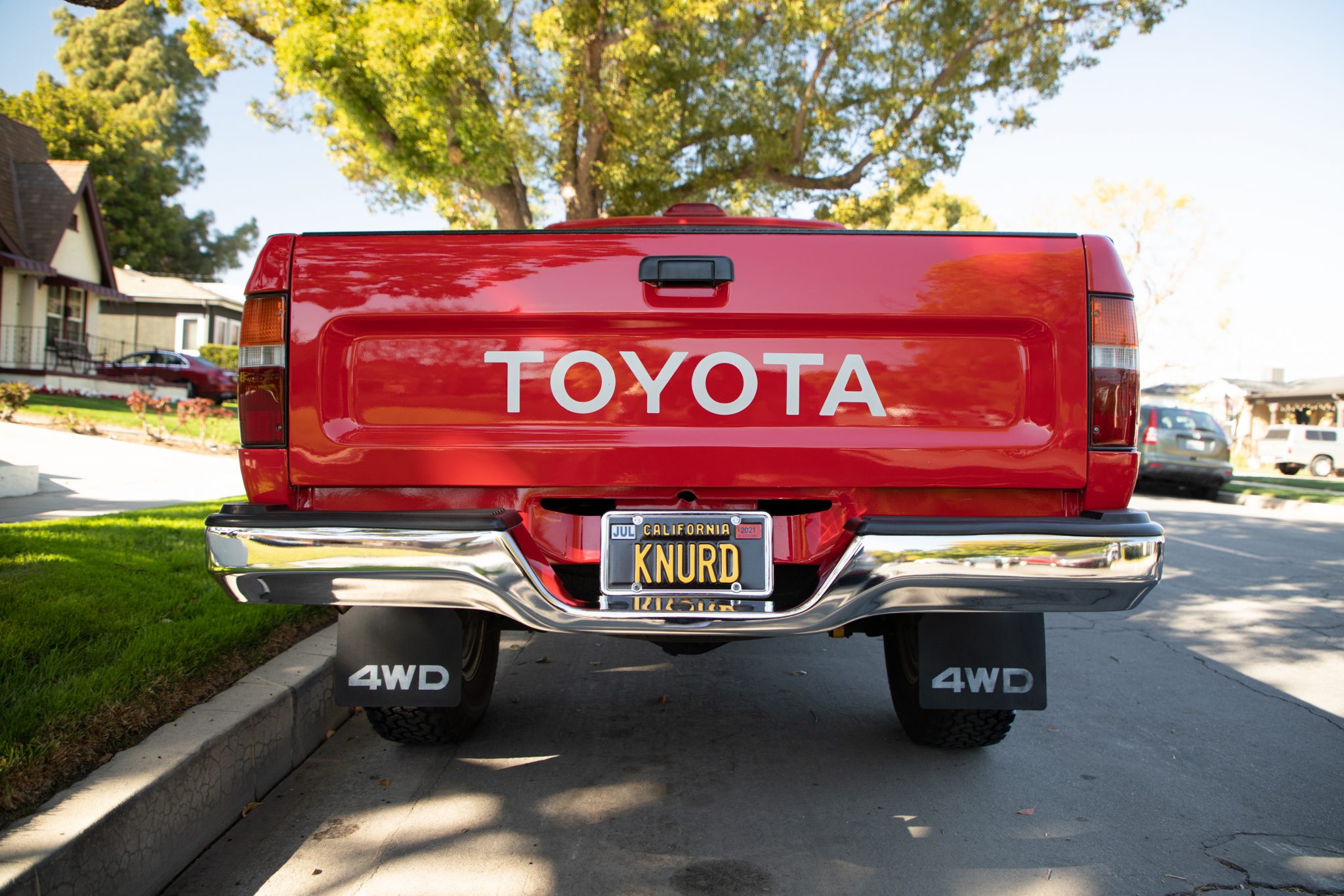 Split four-spoke 15″ wheels are mounted with 31″ BFGoodrich All Terrain T/A KO tires. The front hubs can be locked manually, and braking is handled by ventilated discs up front and drums out back.