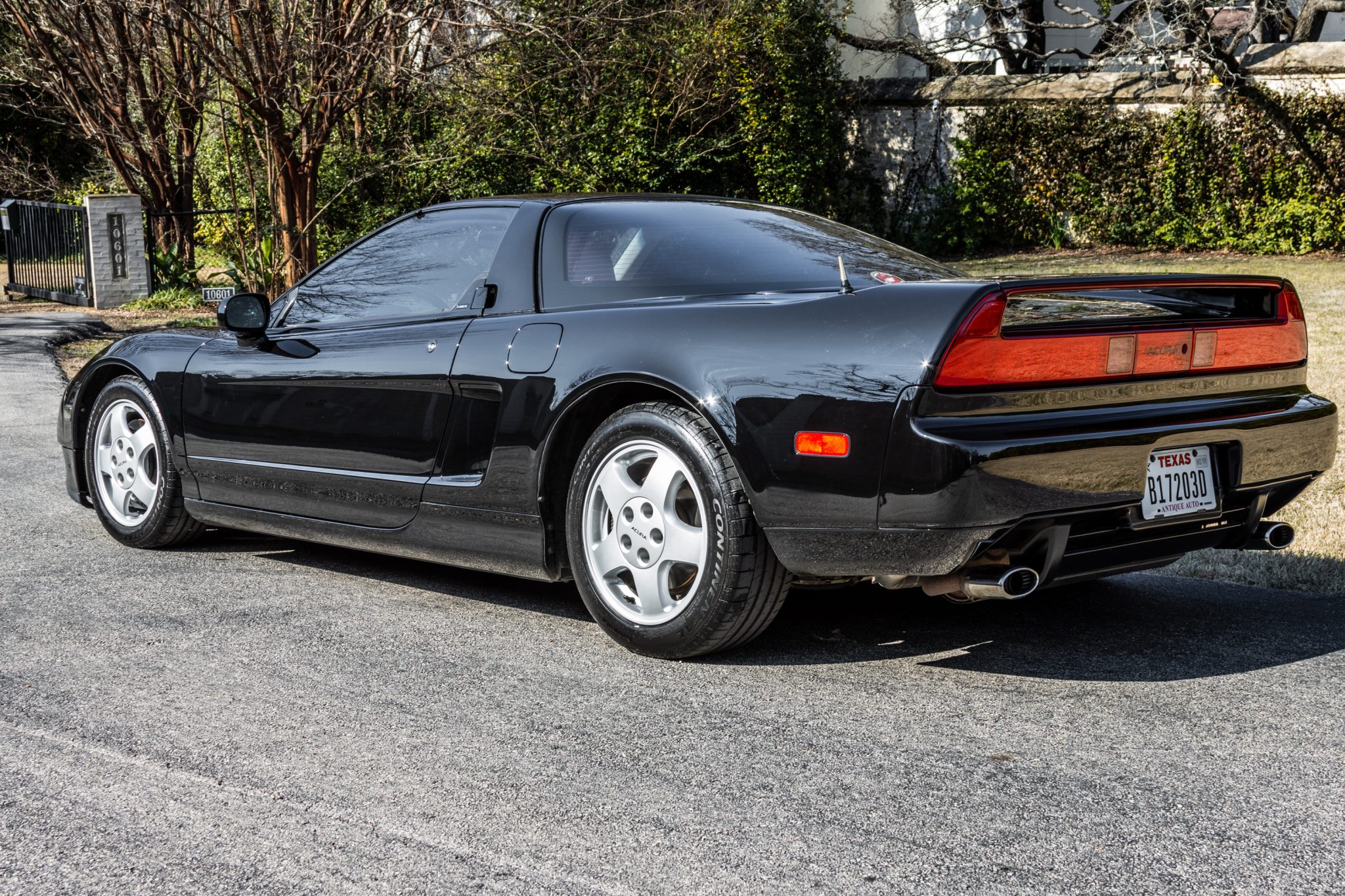 Staggered 16″ and 17″ wheels are fitted with locking lug bolts and wear Continental ExtremeContact Sport tires with 2018 date codes. The ride height is said to be slightly lower than stock, and Bilstein shocks were installed under previous ownership.