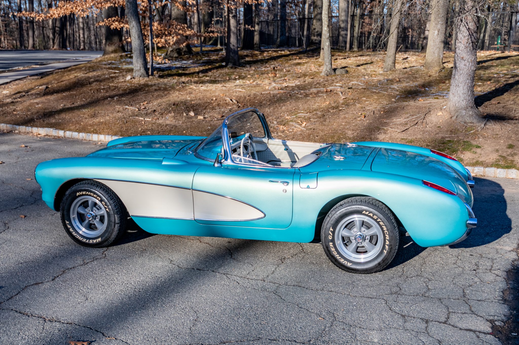 15″ American Racing Torq Thrust D wheels are wrapped in 215/70 Mastercraft Avenger G/T tires with raised white letters. Braking is handled by four-wheel hydraulic drums, and the car rides on coil springs up front along with a solid axle and leaf springs out back. Four previously-installed chrome hubcaps will accompany the car.