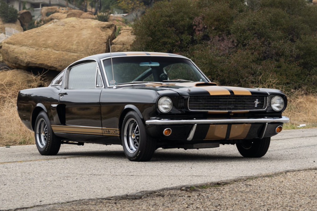 Chrome 14″ Magnum 500-style wheels with black recesses wear Hertz Sports Car Club center decals and Goodyear Blue Streak tires. A matching spare is housed in the trunk. Shelby chassis modifications included revised front suspension geometry, Kelsey-Hayes front disc brakes, and larger rear brake drums when compared to the standard Mustang of the day.