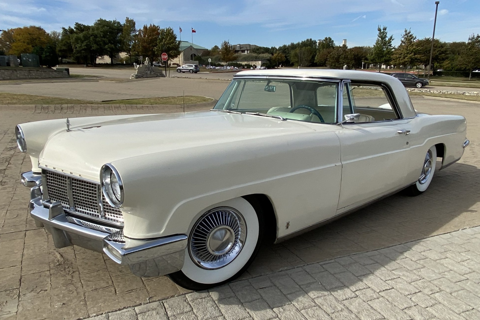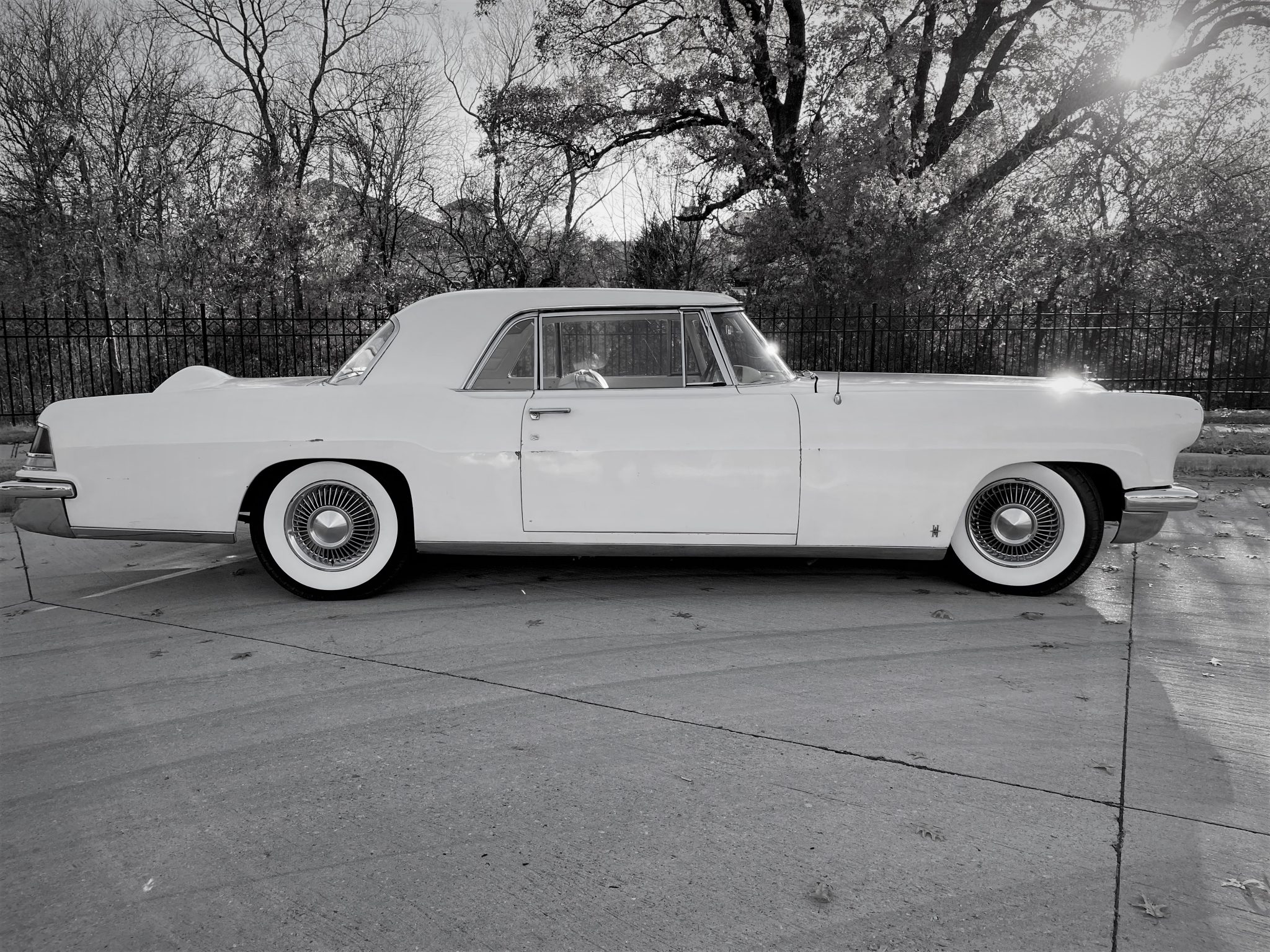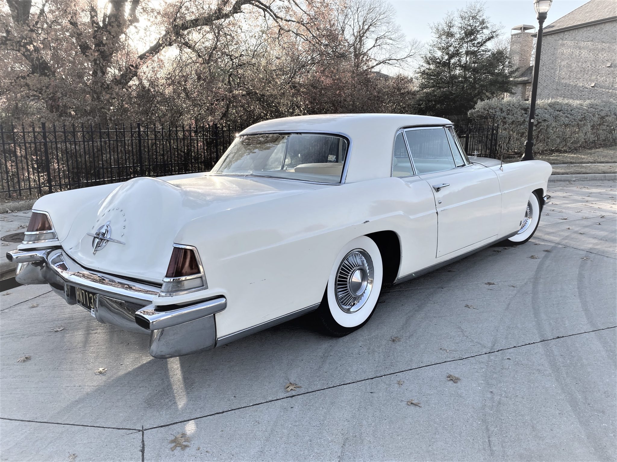 The car rides on a 126” wheelbase, and the 15” steel wheels wear refurbished chrome covers and whitewall radial tires. A full-size spare is found in the trunk, and the seller reports that the steering linkage has been replaced and the brakes are in need of service.