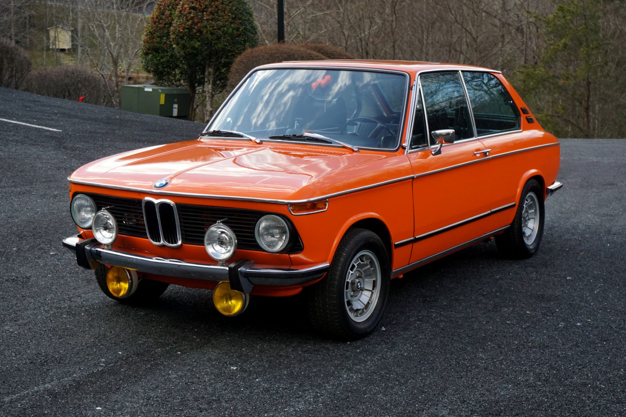 Period aftermarket 13″ alloy wheels from England are mounted with 205/60 Vredestein Sprint Classic tires. The car also comes with a set of factory-style FPS 13″ alloy wheels wearing BMW center caps.