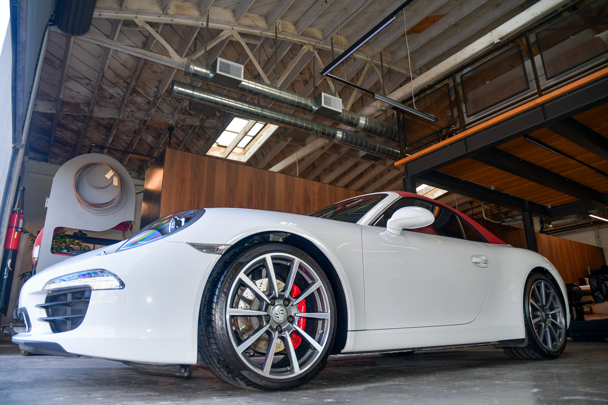 Optional 20″ Carrera Classic wheels wear Pirelli P Zero tires measuring 245/35 up front and 295/30 out back with 2020 and 2019 date codes, respectively. An alignment was most recently performed in July 2020. Braking is handled by cross-drilled rotors with red-finished calipers all around, and a brake fluid flush was performed in September 2019.
