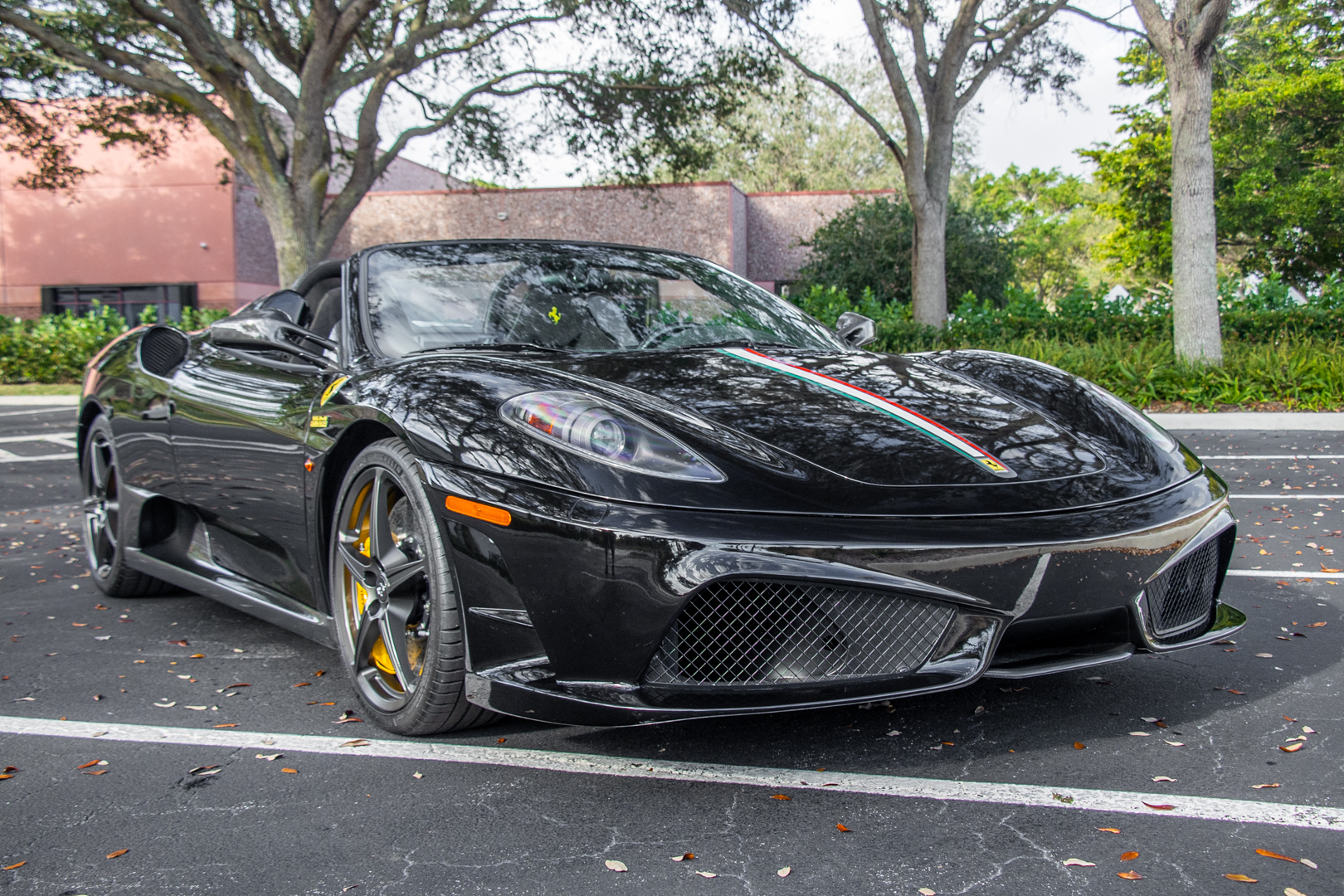 Gunmetal-finished 19″ five-spoke wheels have carbon-fiber center caps and are mounted with staggered-width Michelin Pilot Sport 4S tires that were installed in January 2020. The tire-pressure sensors and control module were replaced and a brake-fluid flush was performed at the same time. The 16M features a stiffened chassis and a retuned suspension with ZF dampers and titanium springs. Braking is from carbon-ceramic discs and yellow-finished calipers.