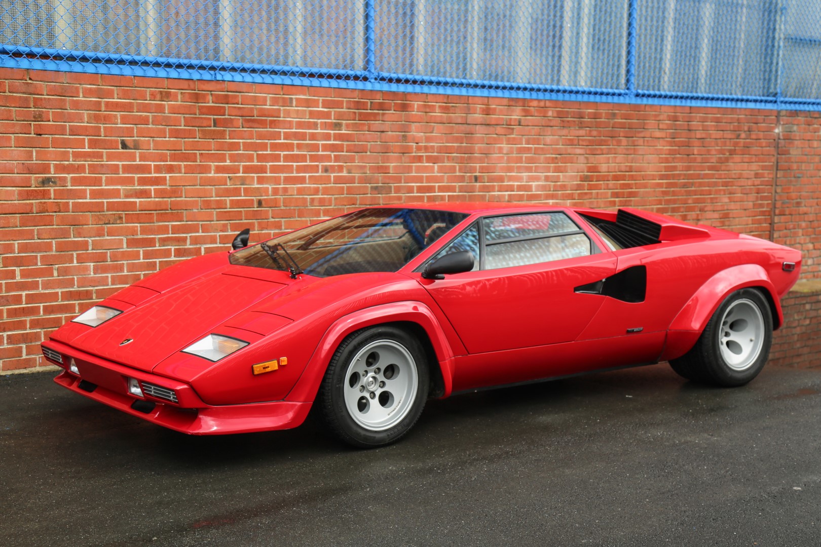 Just 237 LP400 S models were built over a four-year production run, some 105 of which were Series II examples with lowered ride height and smooth-faced 15″ alloy wheels. This example is finished in red and is shown above with its scissor doors and front and rear lids in their raised position. An uninstalled, factory-optional rear wing is included in the sale and is pictured in the gallery below.