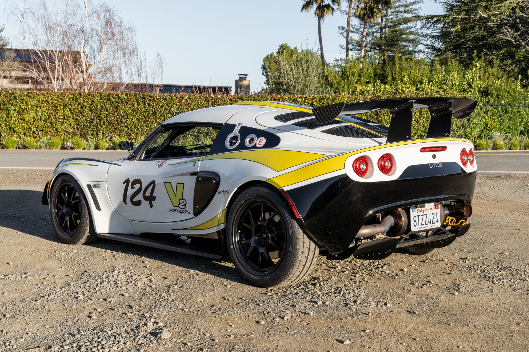 The 16″ front and 17″ rear RS134 Monolite wheels are wrapped in Yokohama Advan A052 tires sized 195/50 and 225/45 respectively. The suspension was reportedly modified by V2 Motorsports of Sterling Heights, Michigan during previous ownership with the following components: