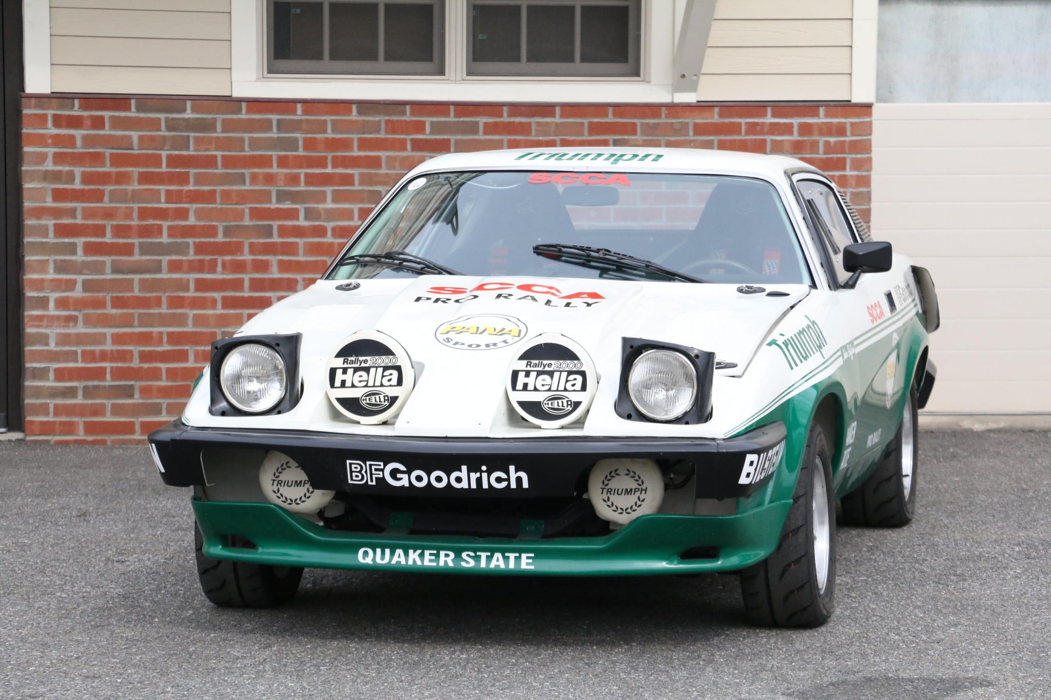 Features include a left quarter panel NACA duct, Lexan side and rear windows, a cowl-mounted electrical cutoff switch, a louvered hood, fog lights wearing Hella and Triumph covers, and pop-up headlights fixed in their raised position. The names of Buffum and co-driver Doug Shepherd are present on the fenders. Refurbishment photos, period rally photos, and shots of the car competing in the 2018 Eifel Rallye in Germany can be seen in the gallery below. Rally footage of John Buffum in 1980 can be viewed here.
