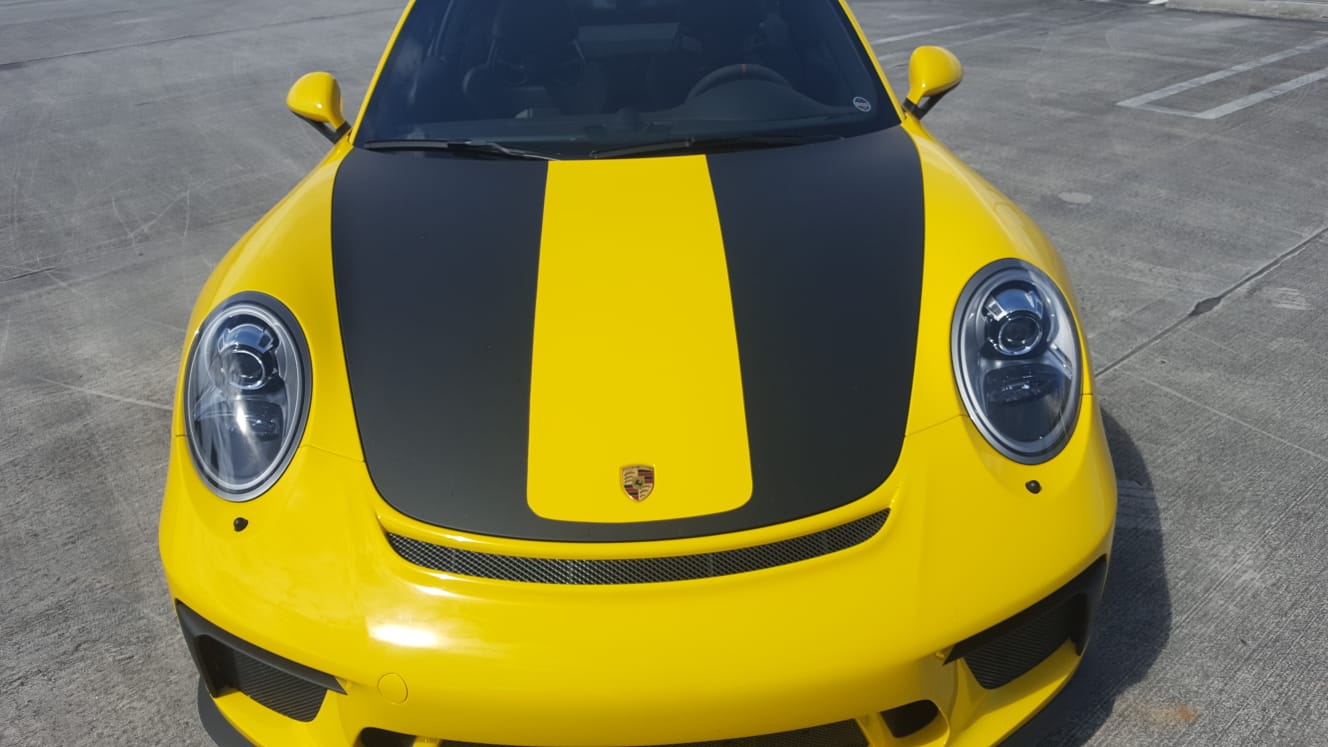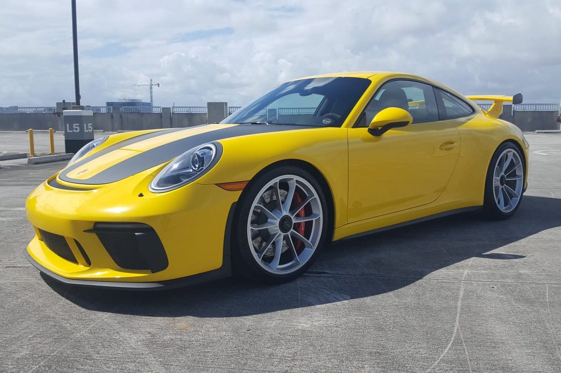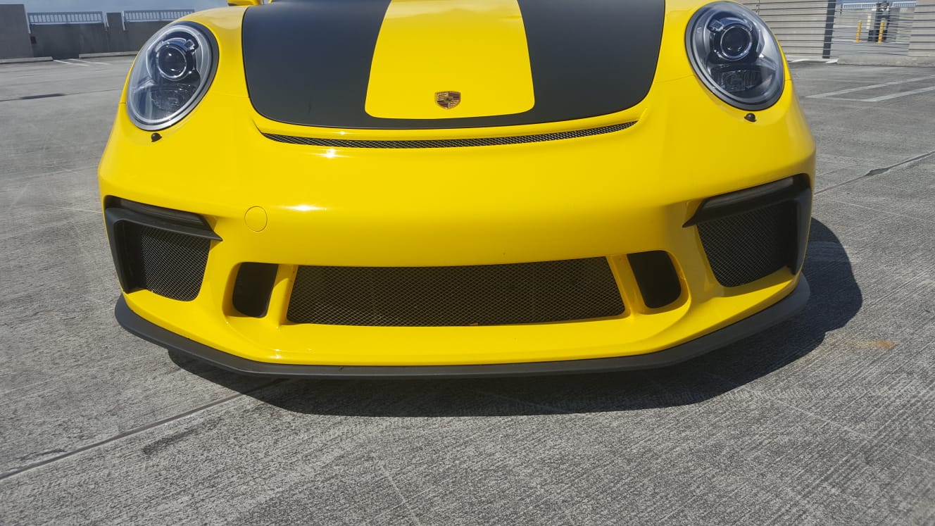 Center-lock 20″ wheels are mounted with Michelin Pilot Sport Cup 2 tires measuring 245/35 up front and 305/30 out back. Braking is handled by red calipers paired with cross-drilled and vented steel rotors all around.