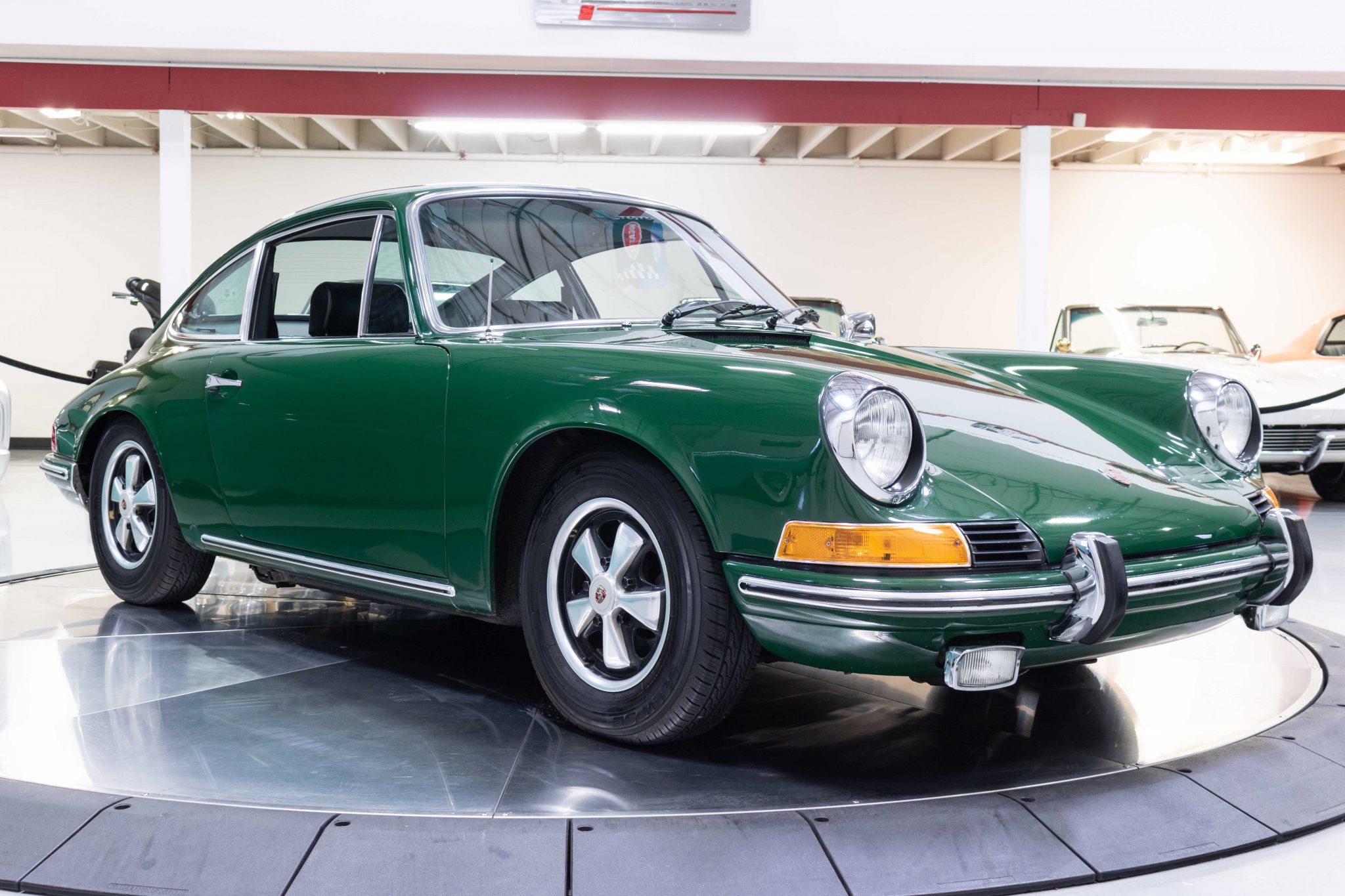 Optional 14″ x 5.5″ Fuchs alloy wheels are wrapped in Toyo Eclipse tires. Braking is provided by four-wheel discs, and the car was factory-optioned with Koni shocks.