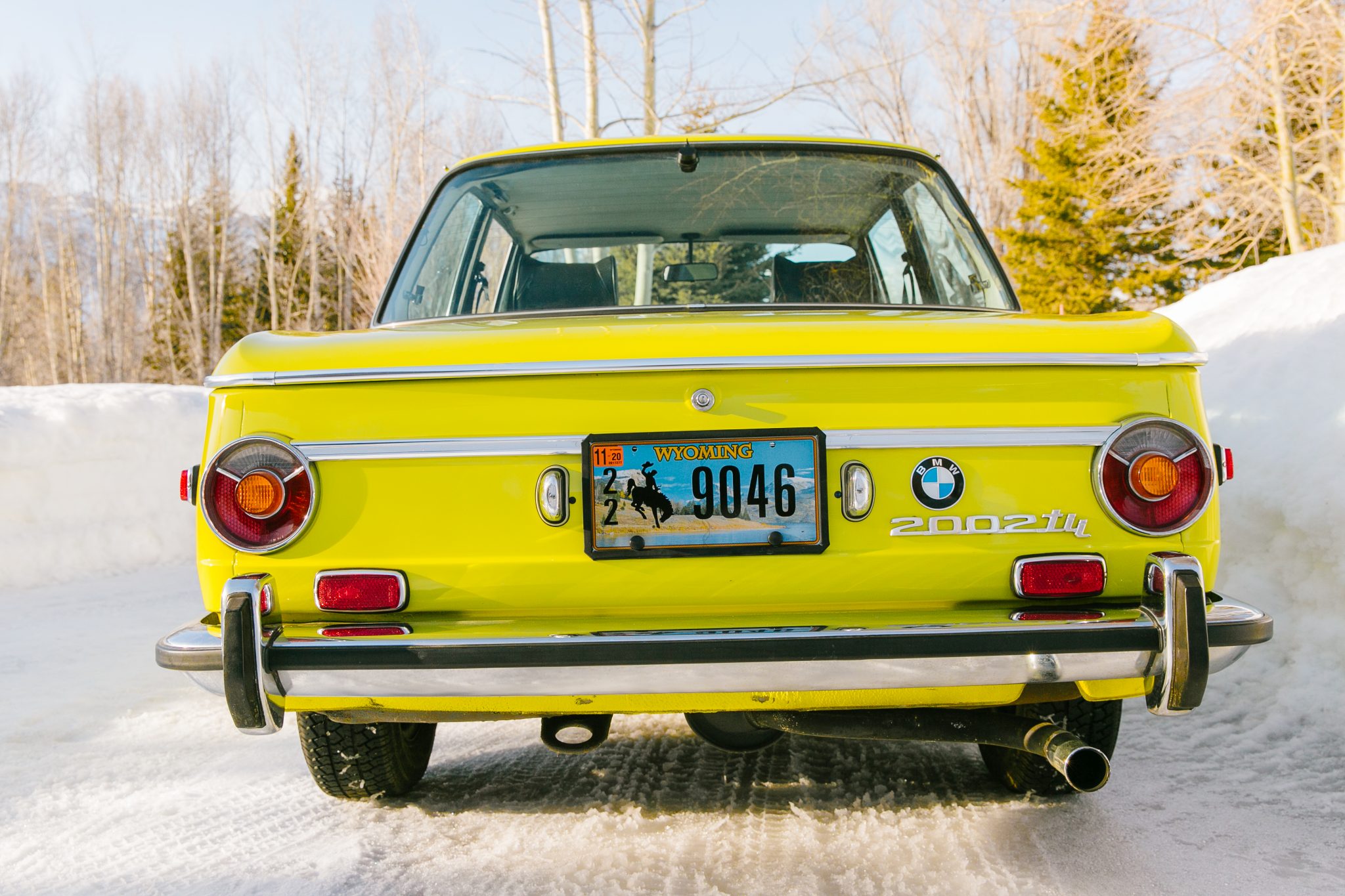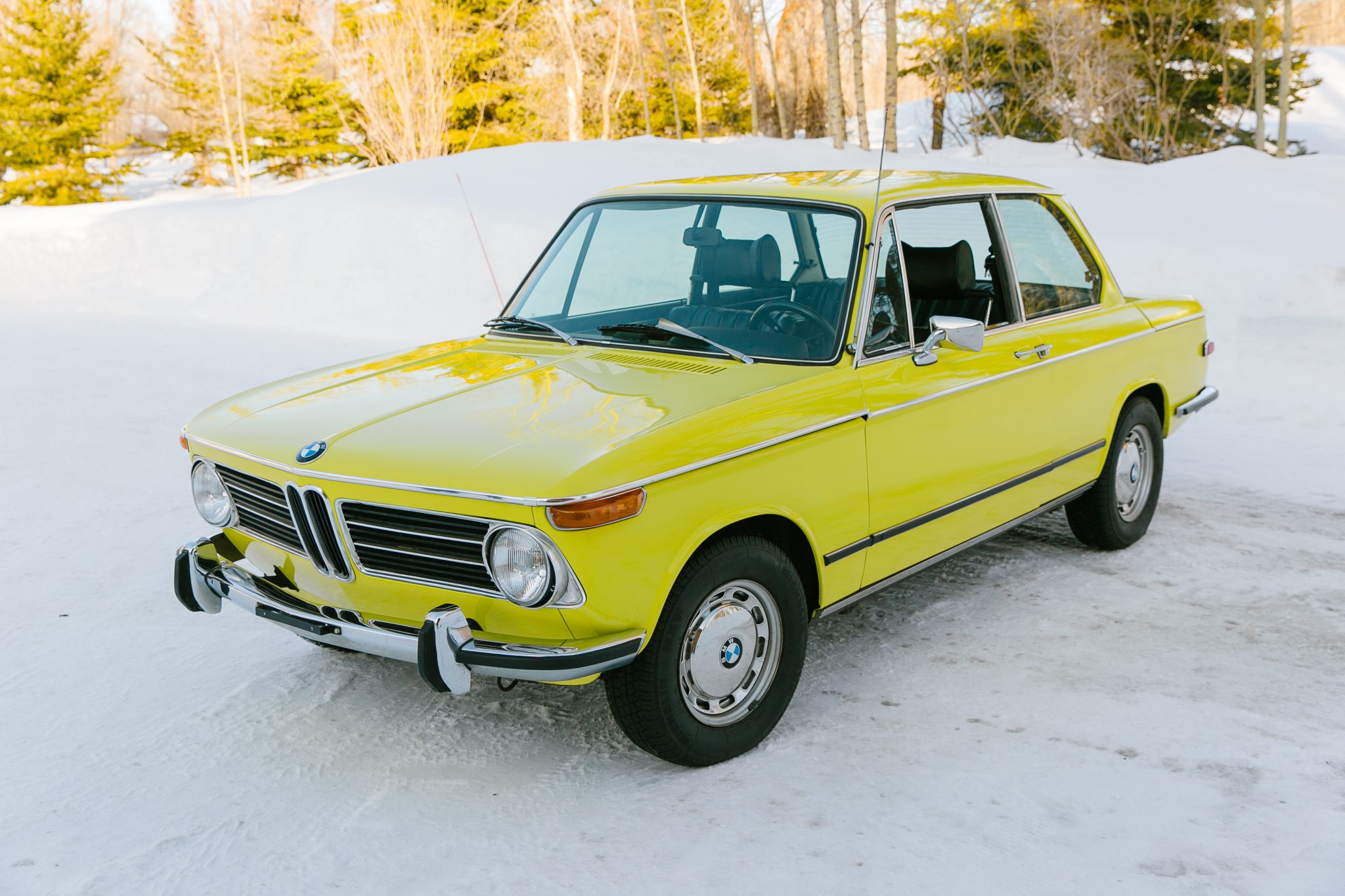 Silver-painted 13″ steel wheels wear chrome covers and 185/70 Michelin MXV tires, and a spare is located beneath the trunk floor. The suspension was modified with Koni struts up front and Bilstein shocks out back during prior ownership.