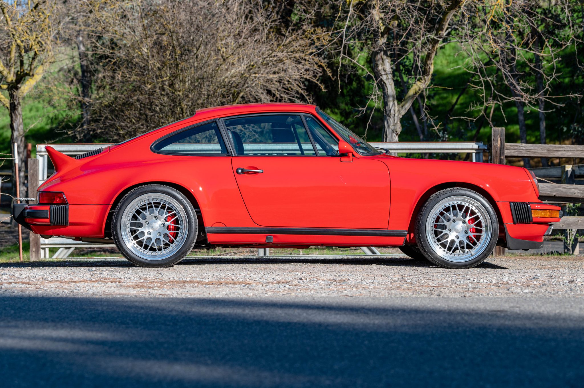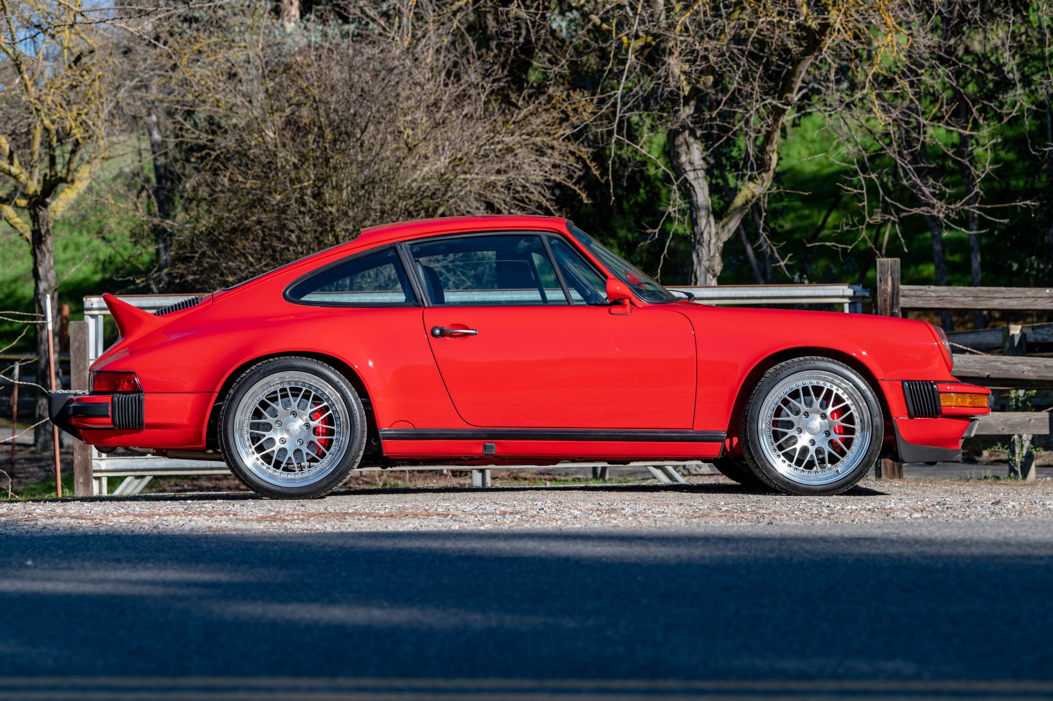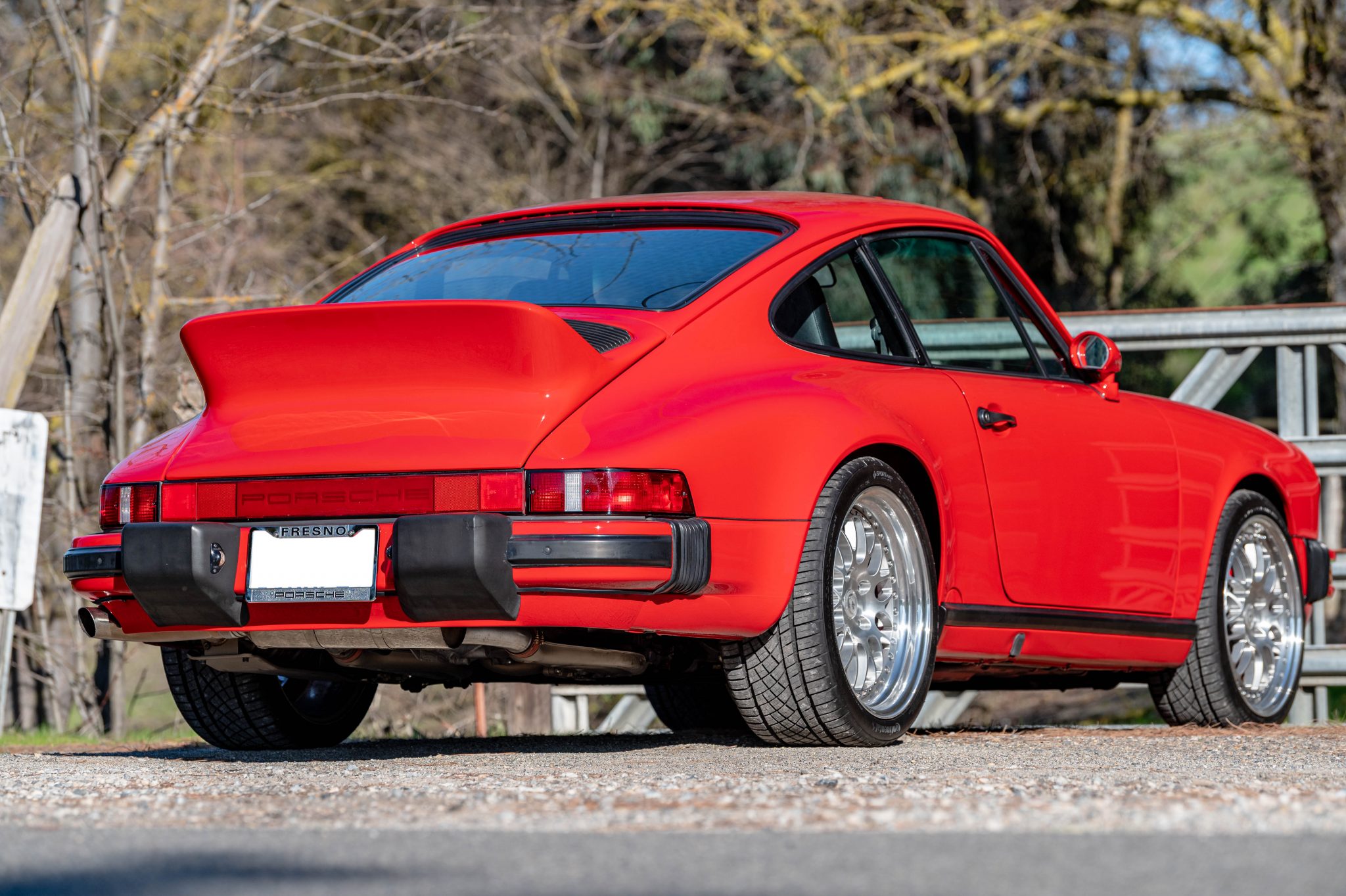 The 18×8″ front and 18×10″ rear HRE wheels are mounted with Continental ExtremeContact tires showing 2019 and 2020 date codes. New rear shocks were installed in 2020 along with front ball joints. Rebuilt calipers were sourced from a Boxster wear a red powder-coated finish and are fitted over cross-drilled and ventilated rotors, while stainless steel brake lines replaced rubber units.