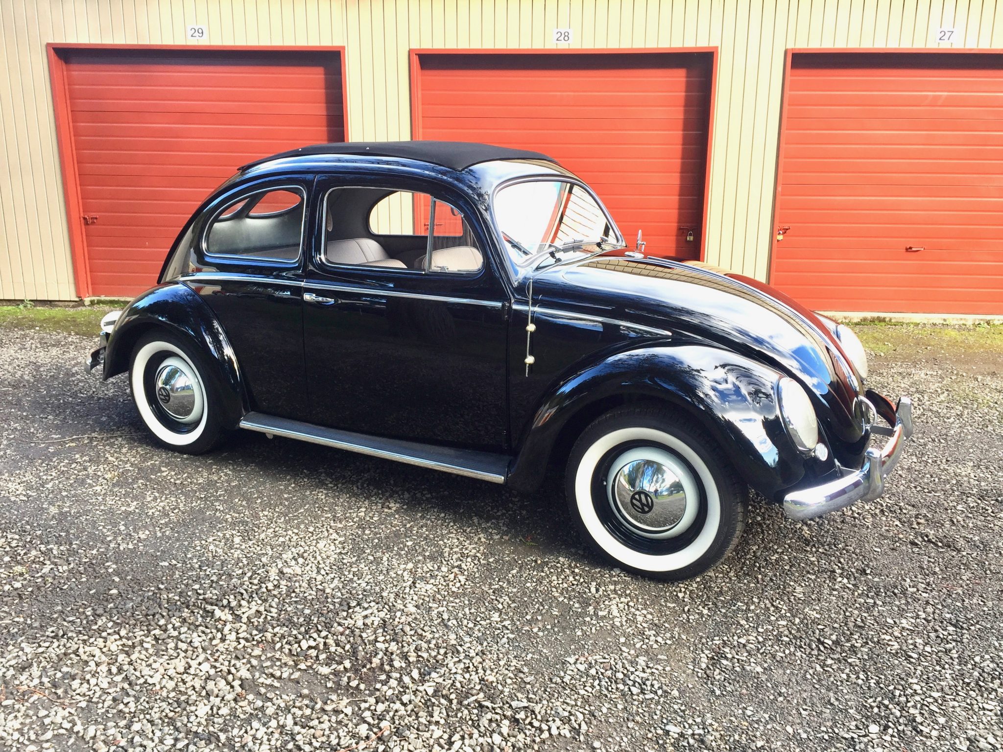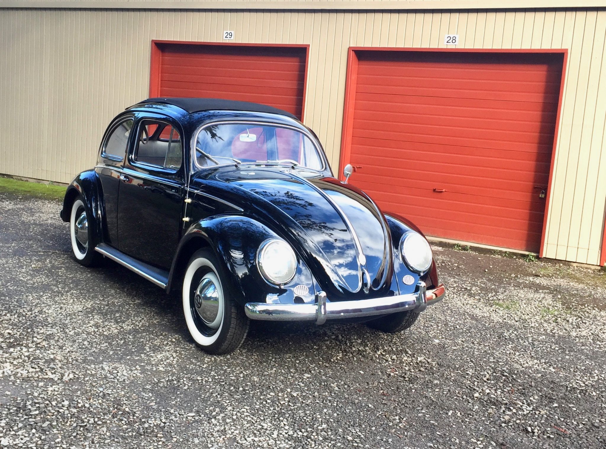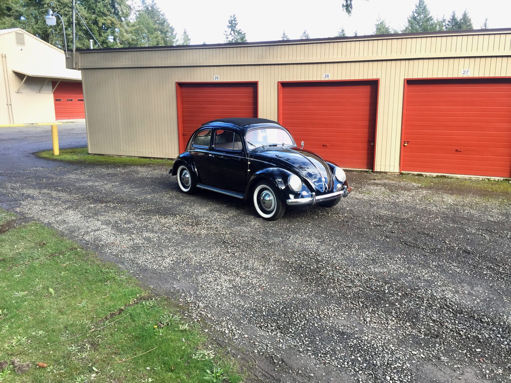 Black-finished 15″ steel wheels wear VW-stamped hubcaps and are mounted with Coker whitewall tires. Each corner has been fitted with hydraulic disc brakes, and service in 2017 included performing an alignment as well as replacing the tires, shocks, steering box, and a steering coupling.