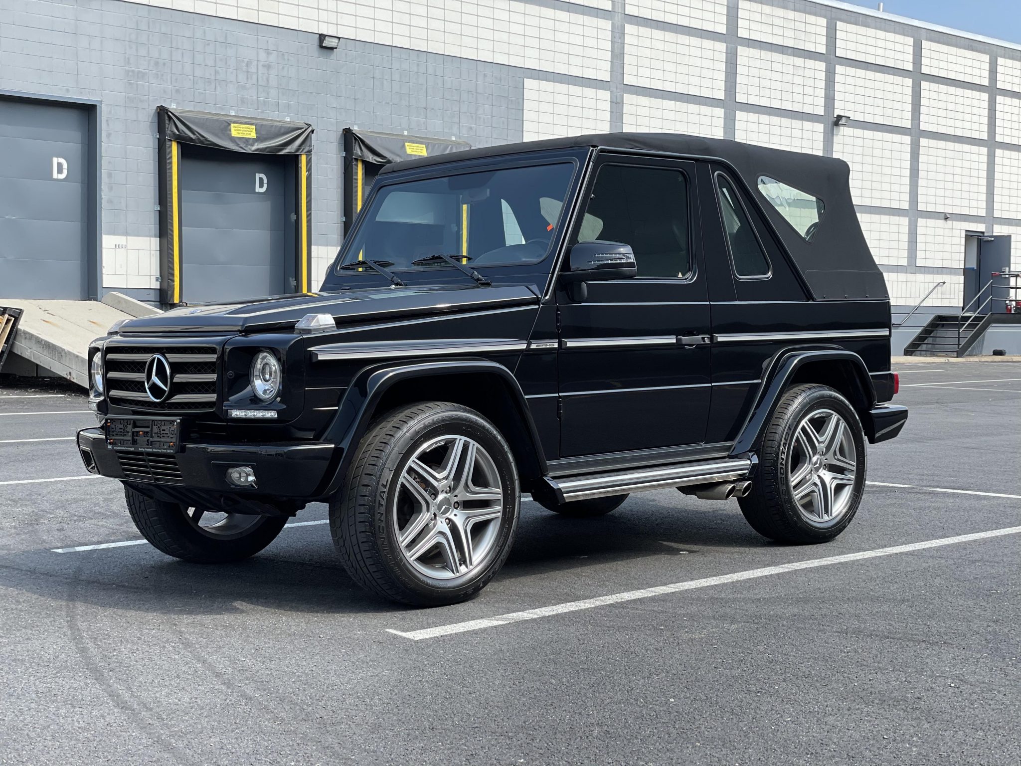 20″ AMG wheels wear Continental CrossContact tires showing 2012 date codes, and a swing-away tire carrier is mounted at the rear. The brake fluid was changed in January 2021.