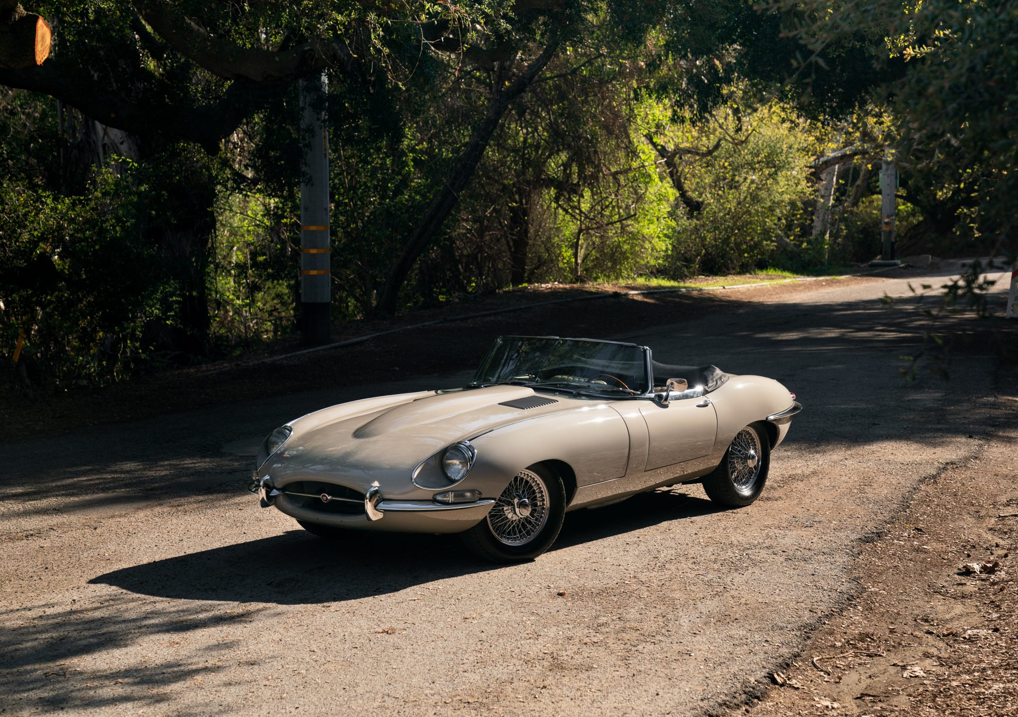 Chrome 15″ wire wheels are secured by winged knock-offs and are mounted with 205/65 BF Goodrich Advantage T/A tires. A matching spare wheel is mounted under the trunk floor along with a tool kit and jack. Koni shocks are fitted at all four corners, and maintenance performed in June 2017 by Steve’s Jaguar Service of Canoga Park, California, included replacing the front ball joints and tie rod ends as well as the brake booster, master cylinder, vacuum lines, and a clutch hose. A brake fluid flush was reportedly performed in 2020.