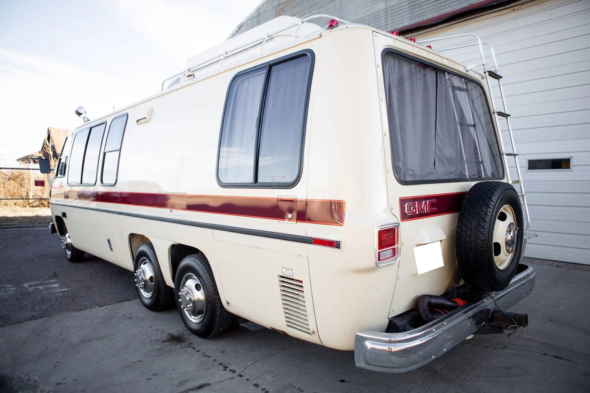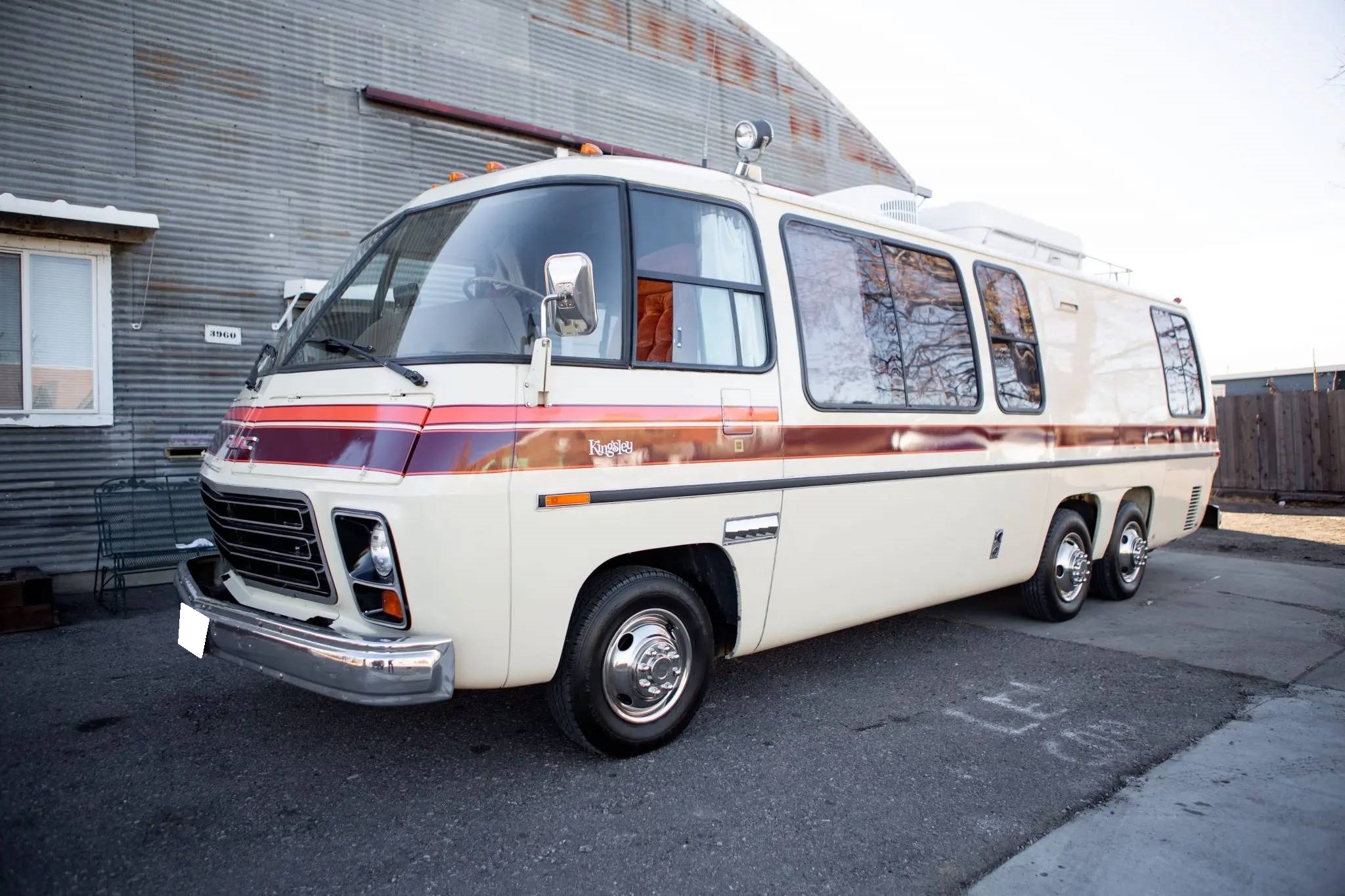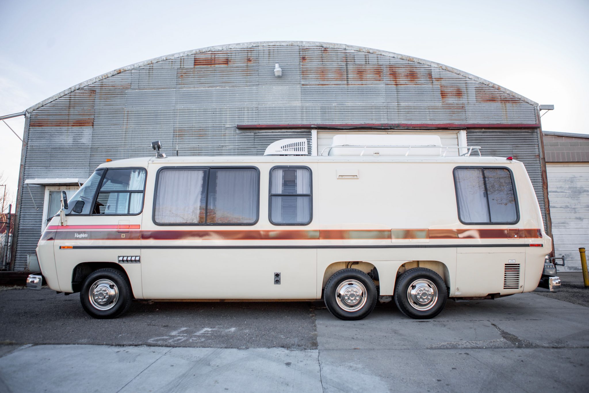 The polished eight-lug steel wheels are wrapped in Firestone tires with a full-size spare affixed to the rear. The RV features adjustable air suspension for the back four wheels, and stopping power is provided by front discs and rear drums.