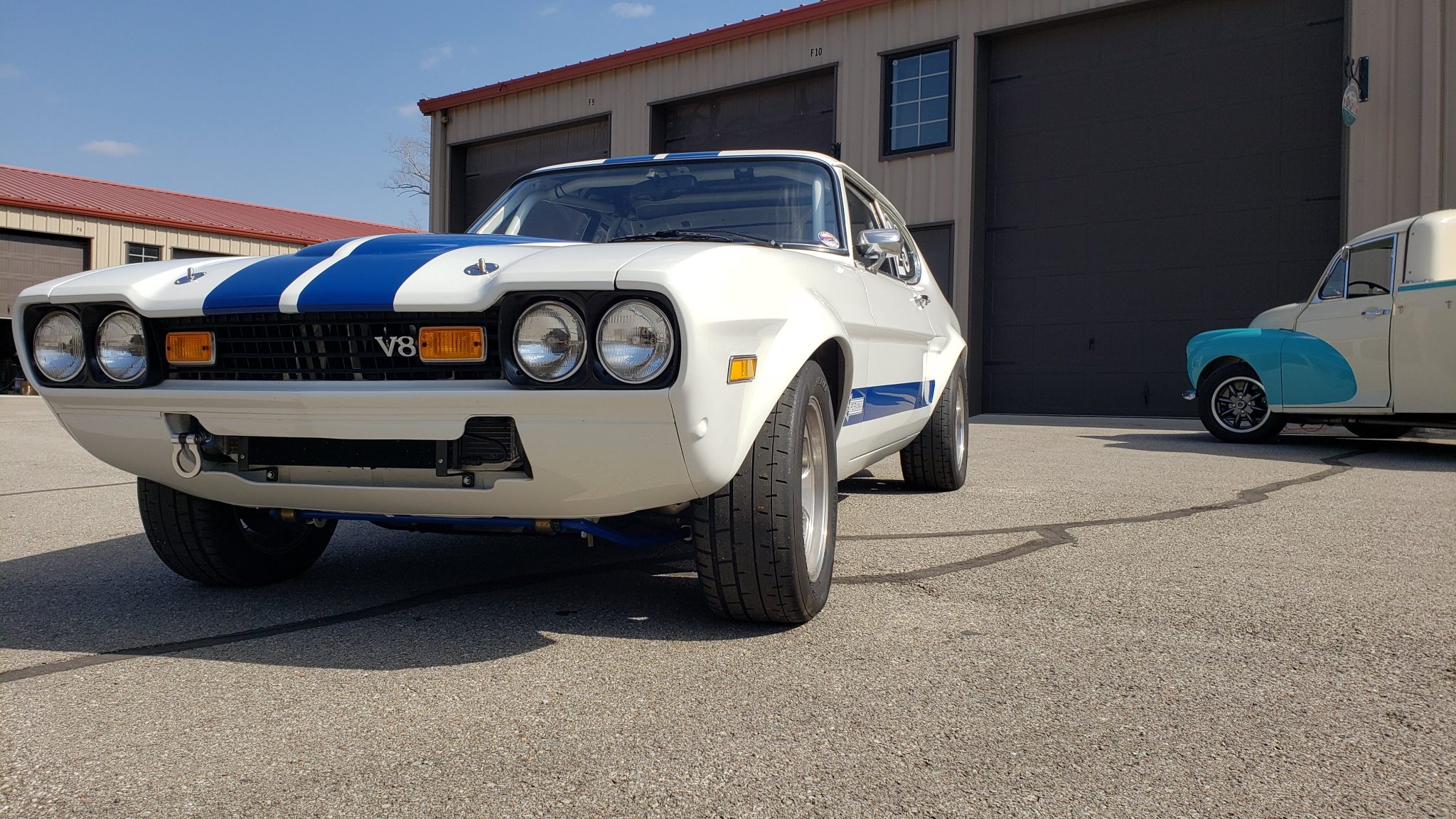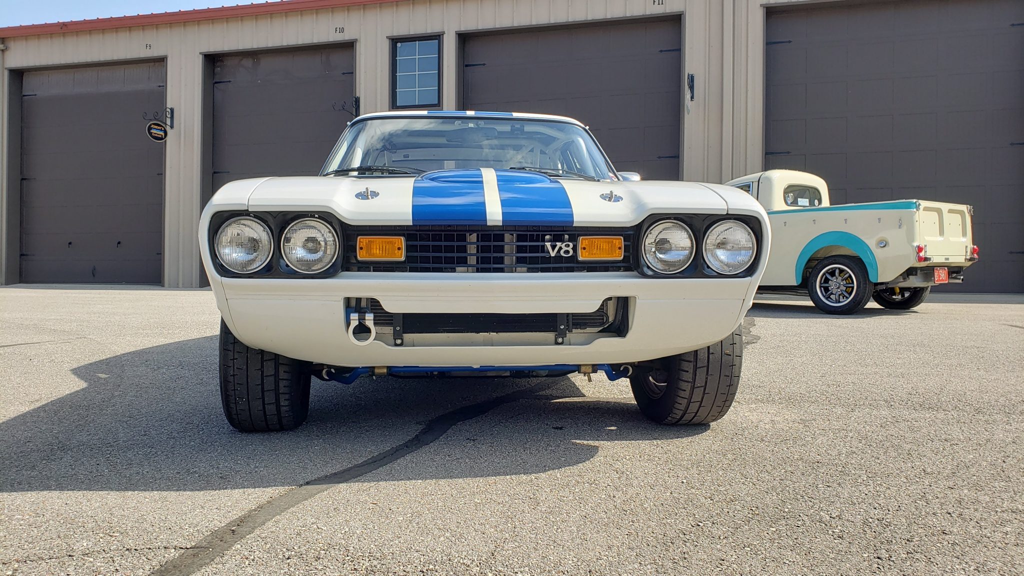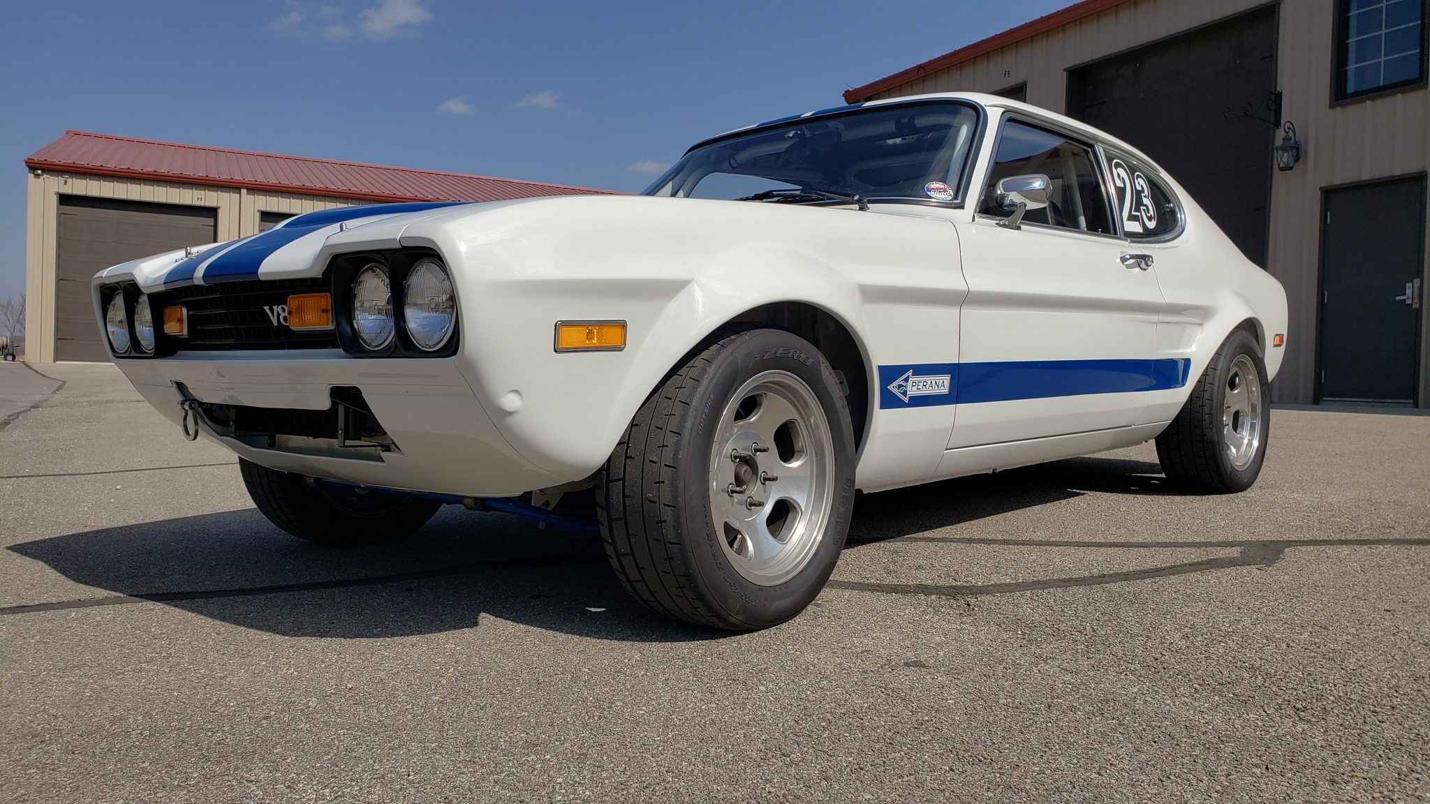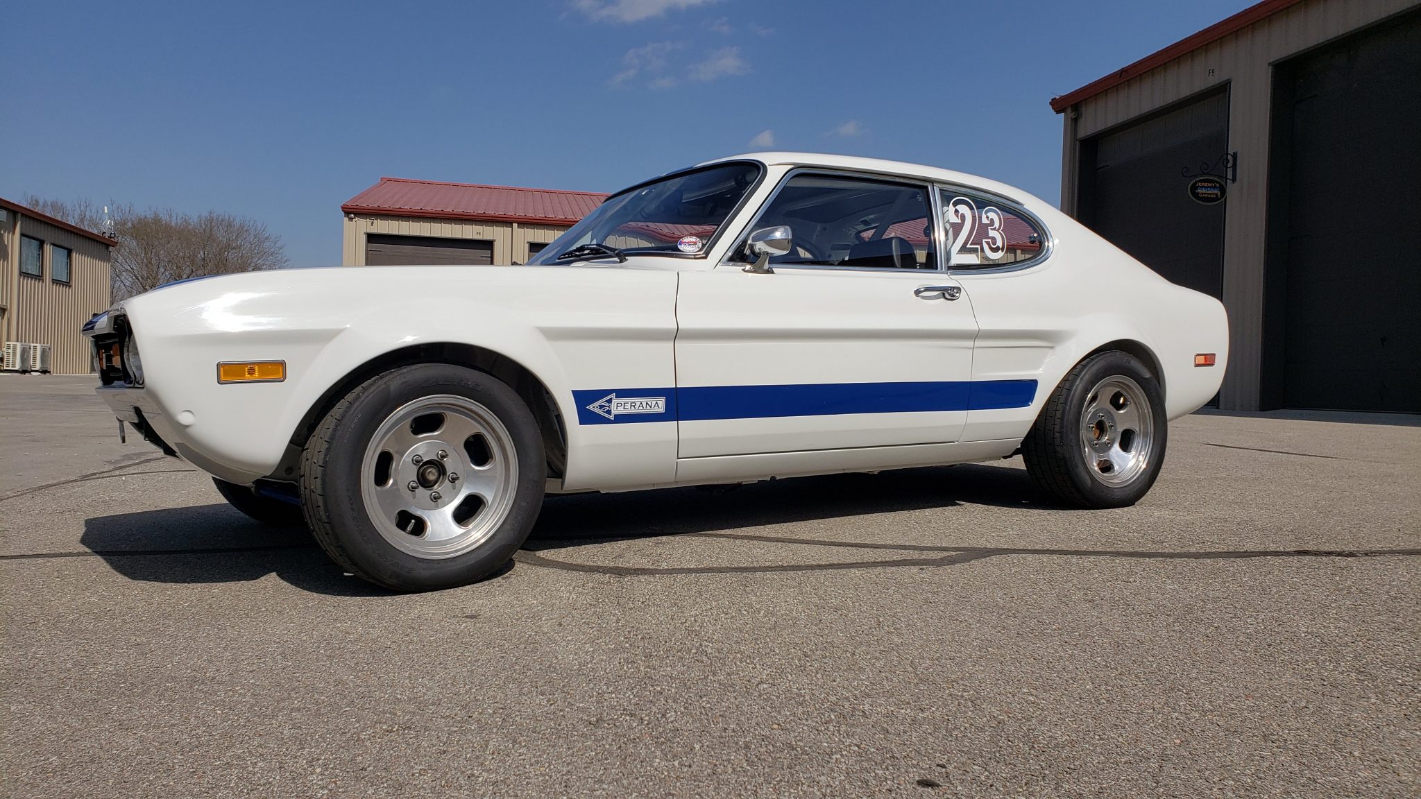 The wheel hubs have been converted to utilize a 5×4.5″ bolt pattern, and 15″ American Racing Ansen Sprint wheels are mounted with Pirelli P Zero Trofeo R tires. The seller states that a shimmy is present from 45 to 65 mph.