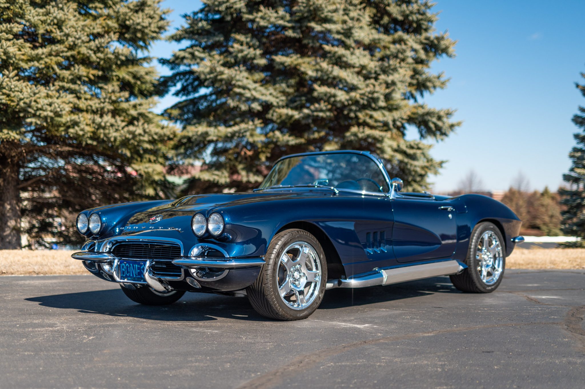 The car rides on C5-style polished-aluminum wheels measuring 17″ up front and 18″ out back, which are mounted with Goodyear Eagle F1 tires measuring 245/45 and 275/40, respectively. Stopping power is provided by C4-specification disc brakes with slotted rotors and silver-finished calipers all around, and the car is equipped with power-assisted steering.
