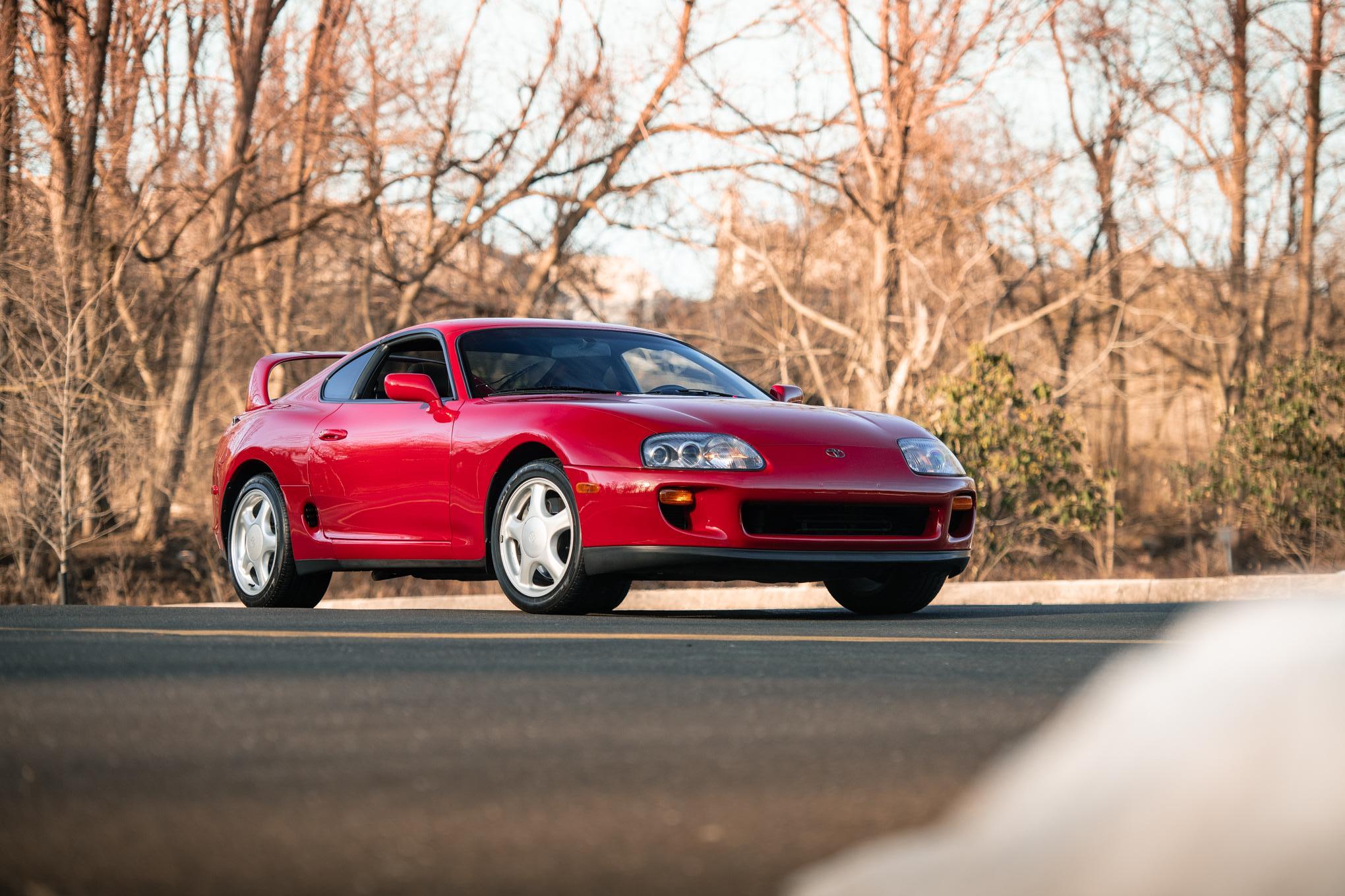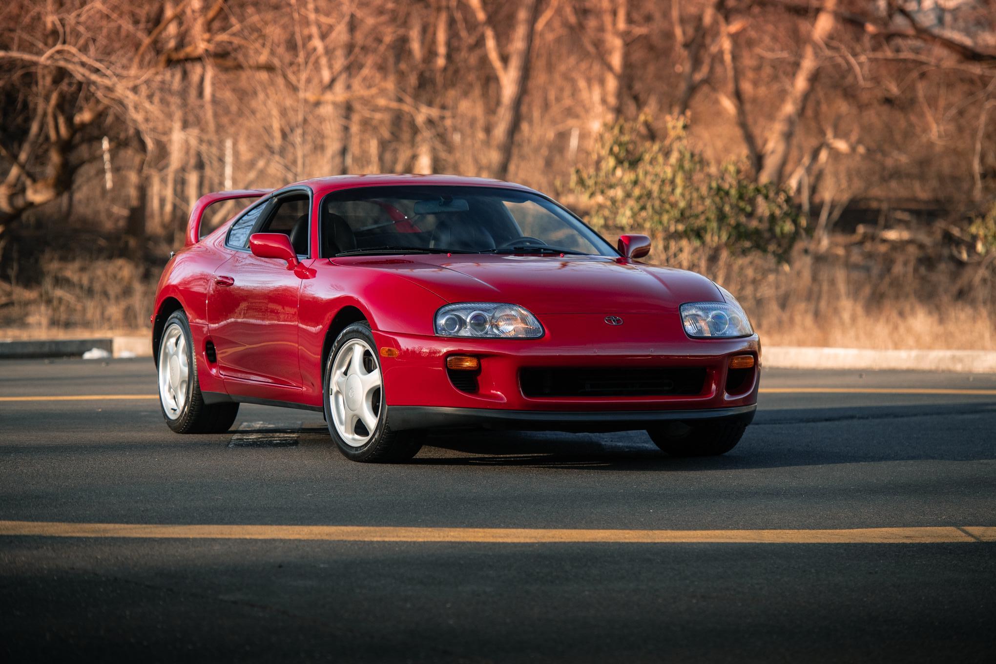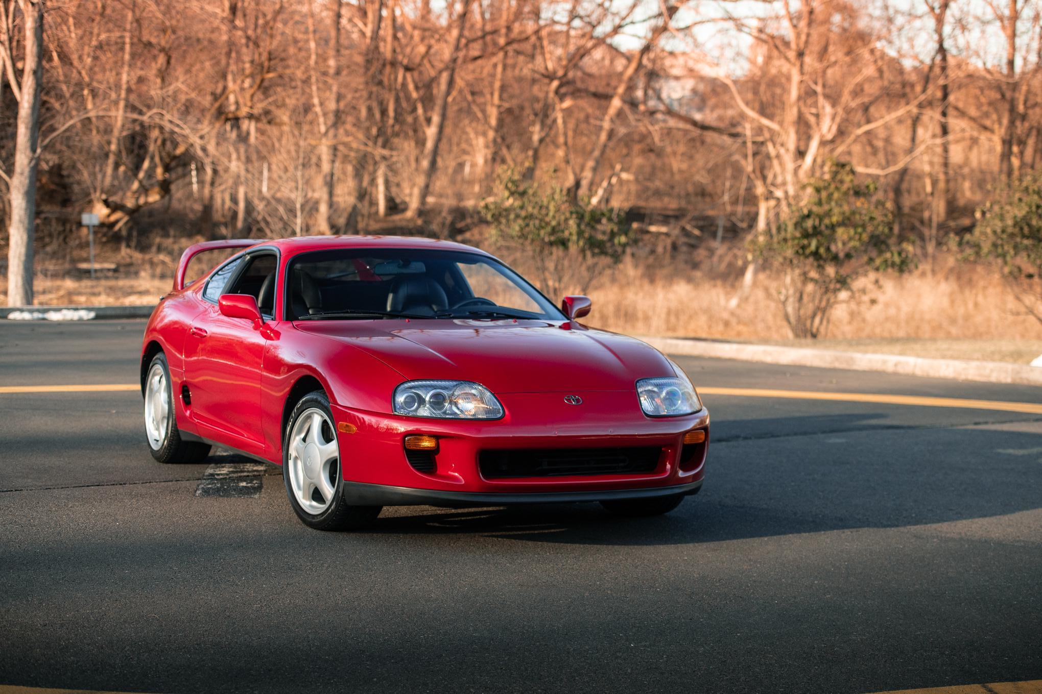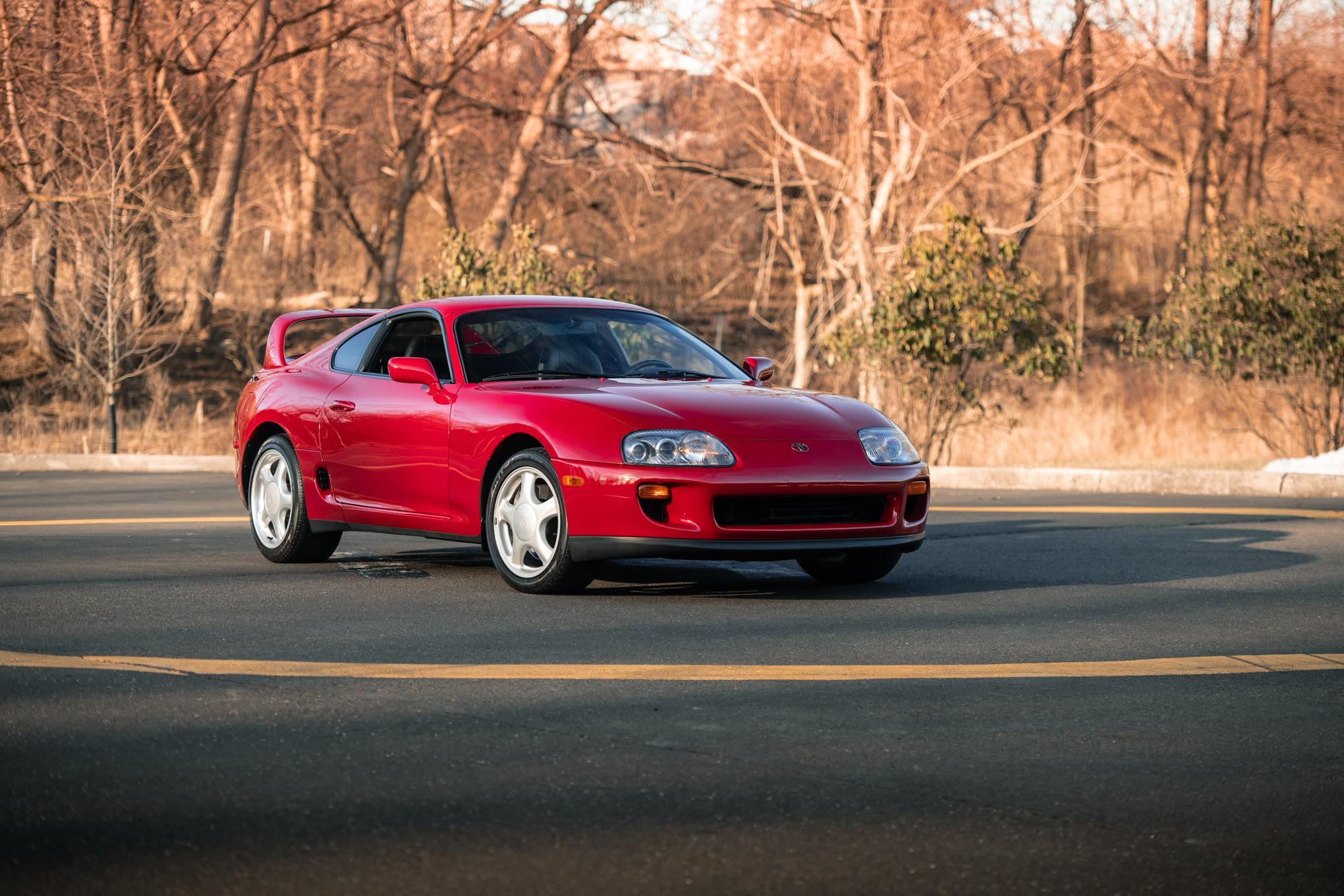 Factory 17″ wheels are wrapped in Michelin Pilot SX tires measuring 235/35 up front and 255/40 out back. The braking system features vented rotors and Supra-branded calipers at all four corners.
