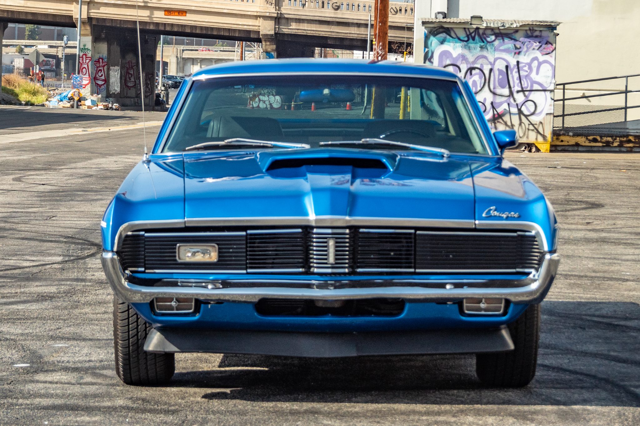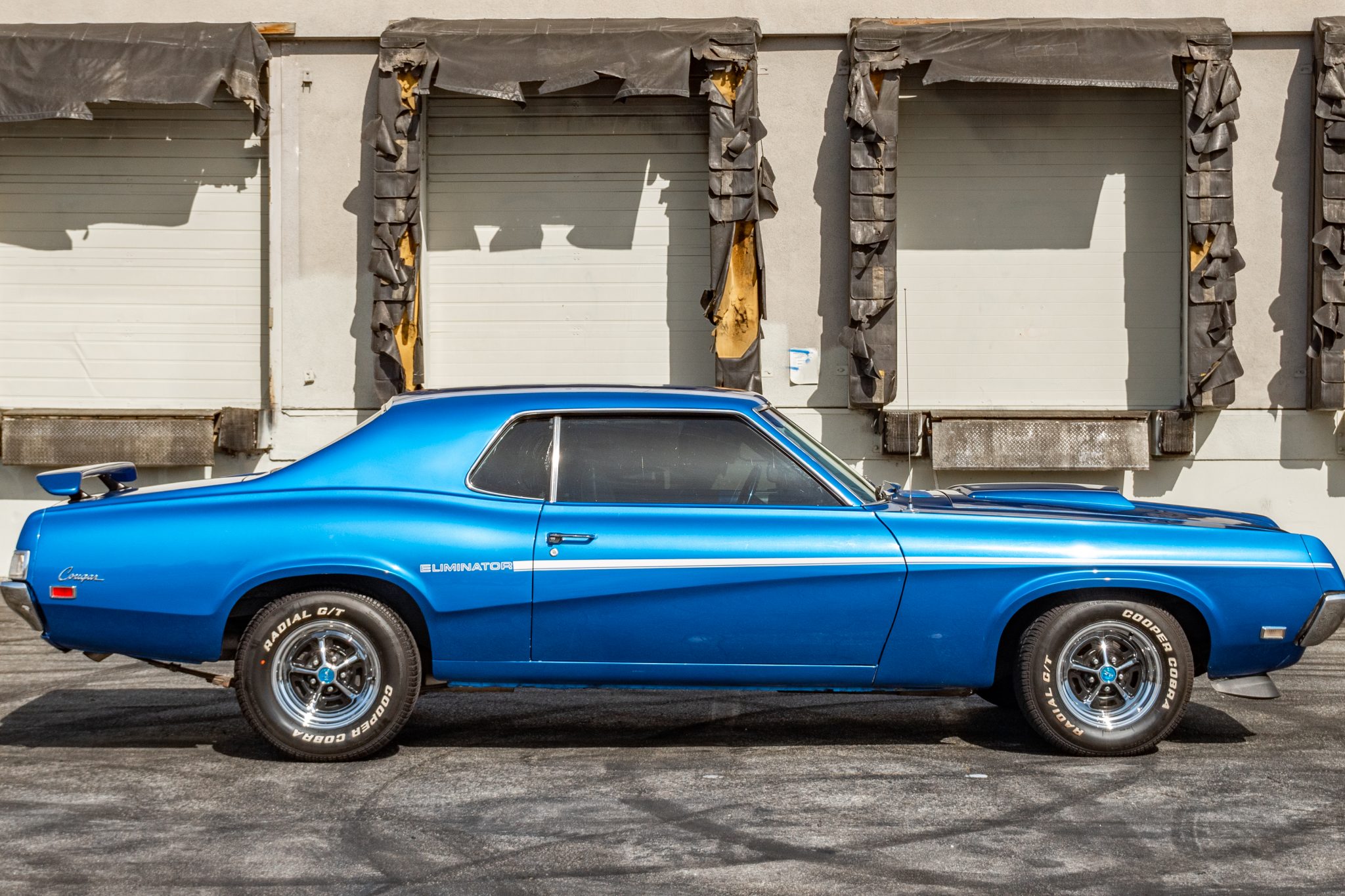 Magnum 500–style 14″ wheels are wrapped in 215/70 front and 225/70 rear Cooper Cobra Radial G/T tires. The suspension features stiffened springs that were part of the Eliminator package, and additional options include power front disc brakes and power steering.