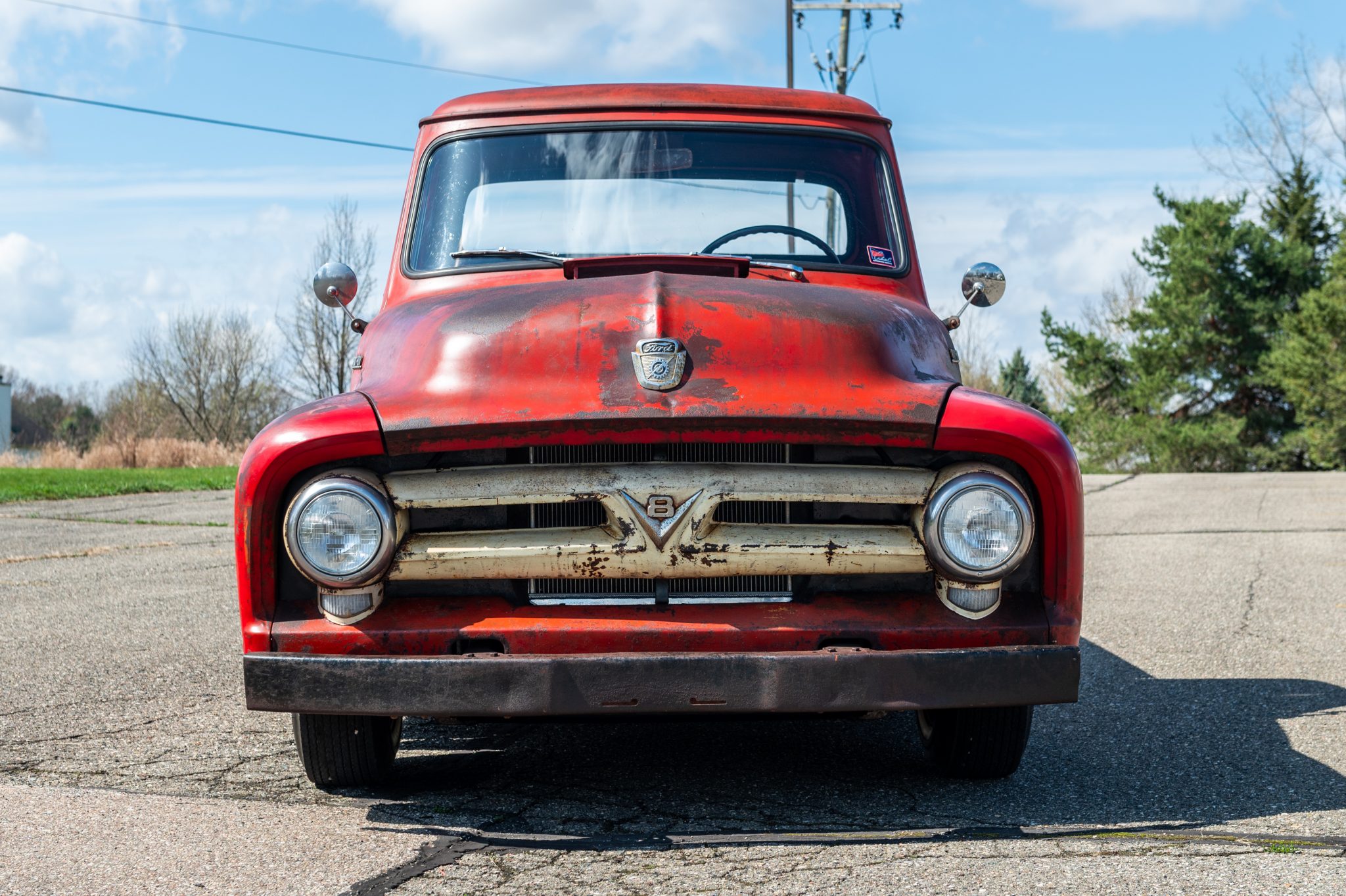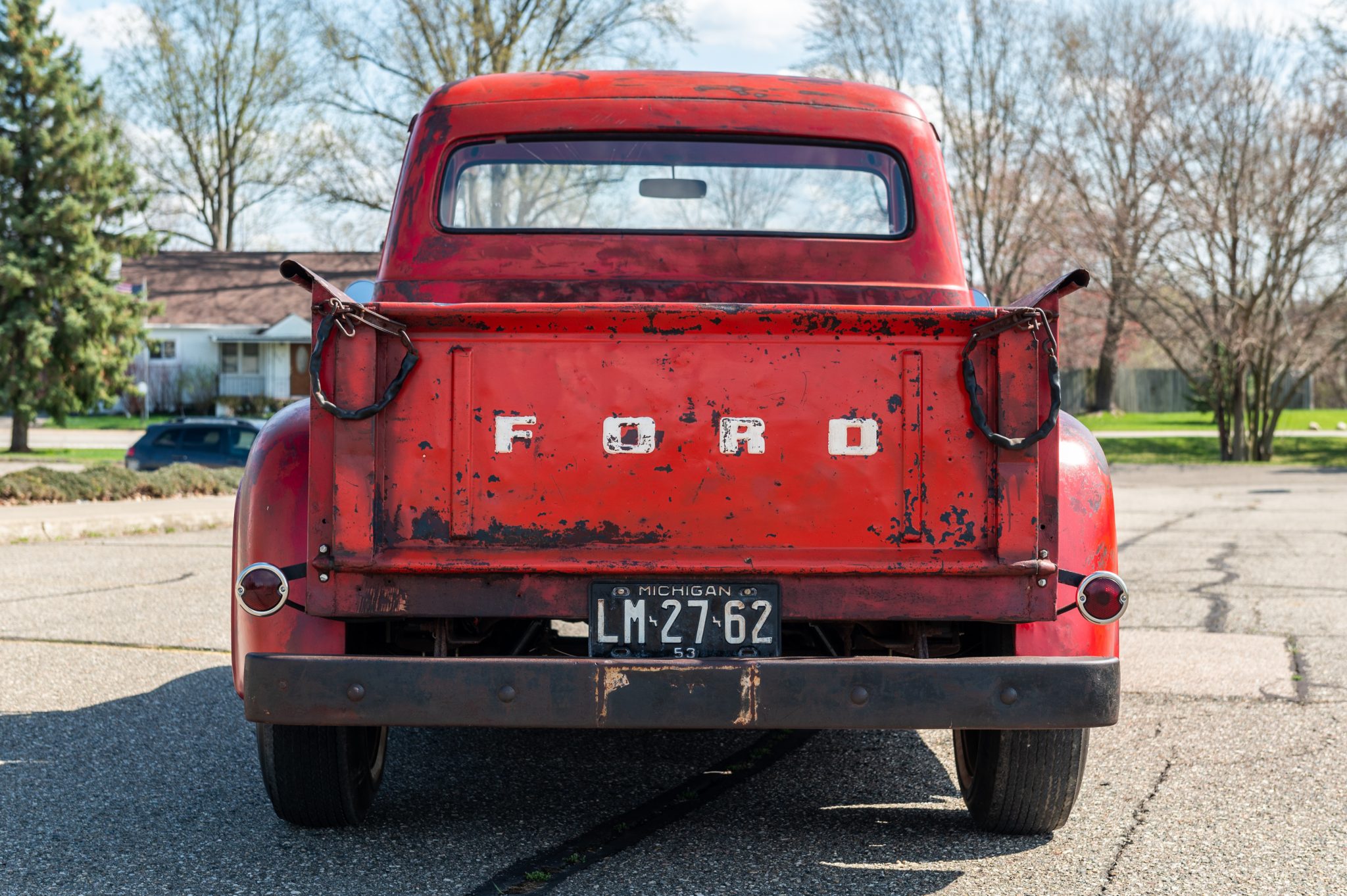 Black-painted 15″ steel wheels wear chrome hubcaps and BFGoodrich Silvertown tires. Equipment reportedly includes a PMT forged front drop axle along with replacement shocks, rear leaf springs, bushings, kingpins, bearings, and steering components. The braking system consists of power-assisted drums at all four corners and is said to include a replacement master cylinder, brake drum cylinders, lines, fittings, and hoses.