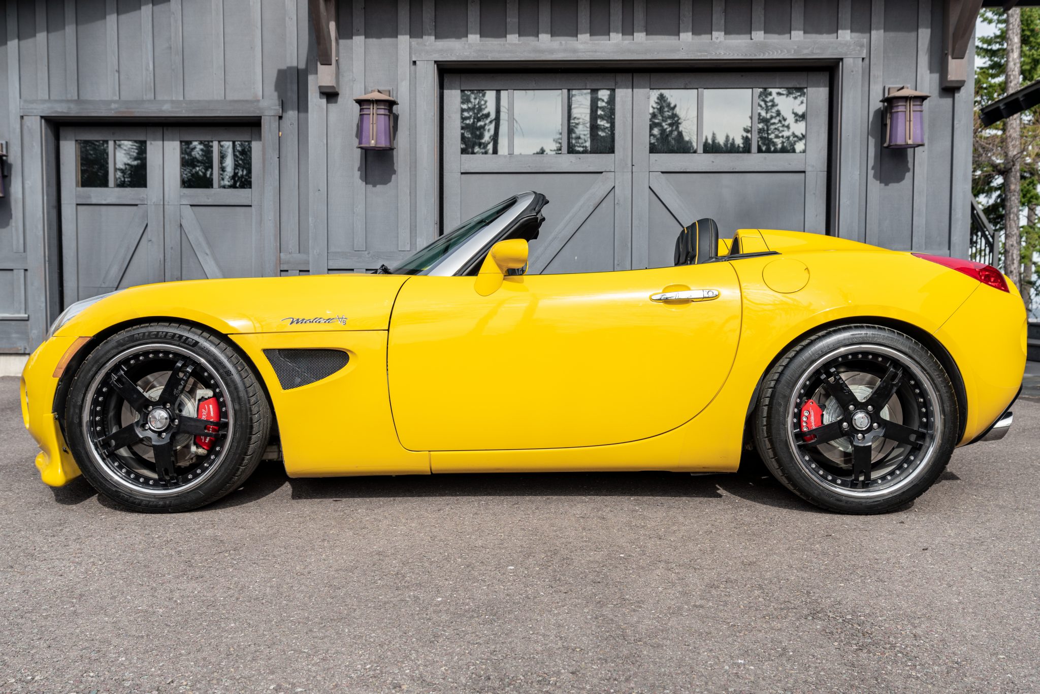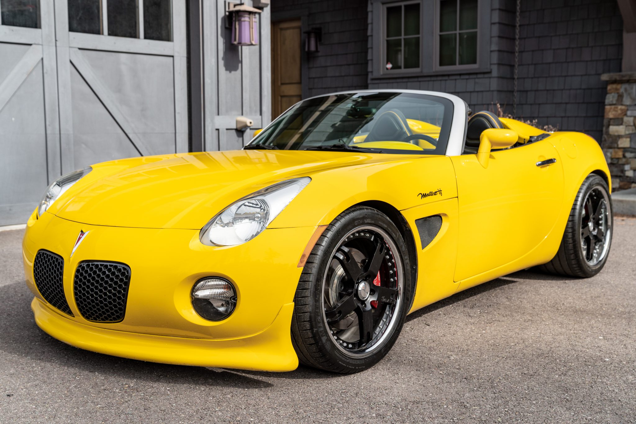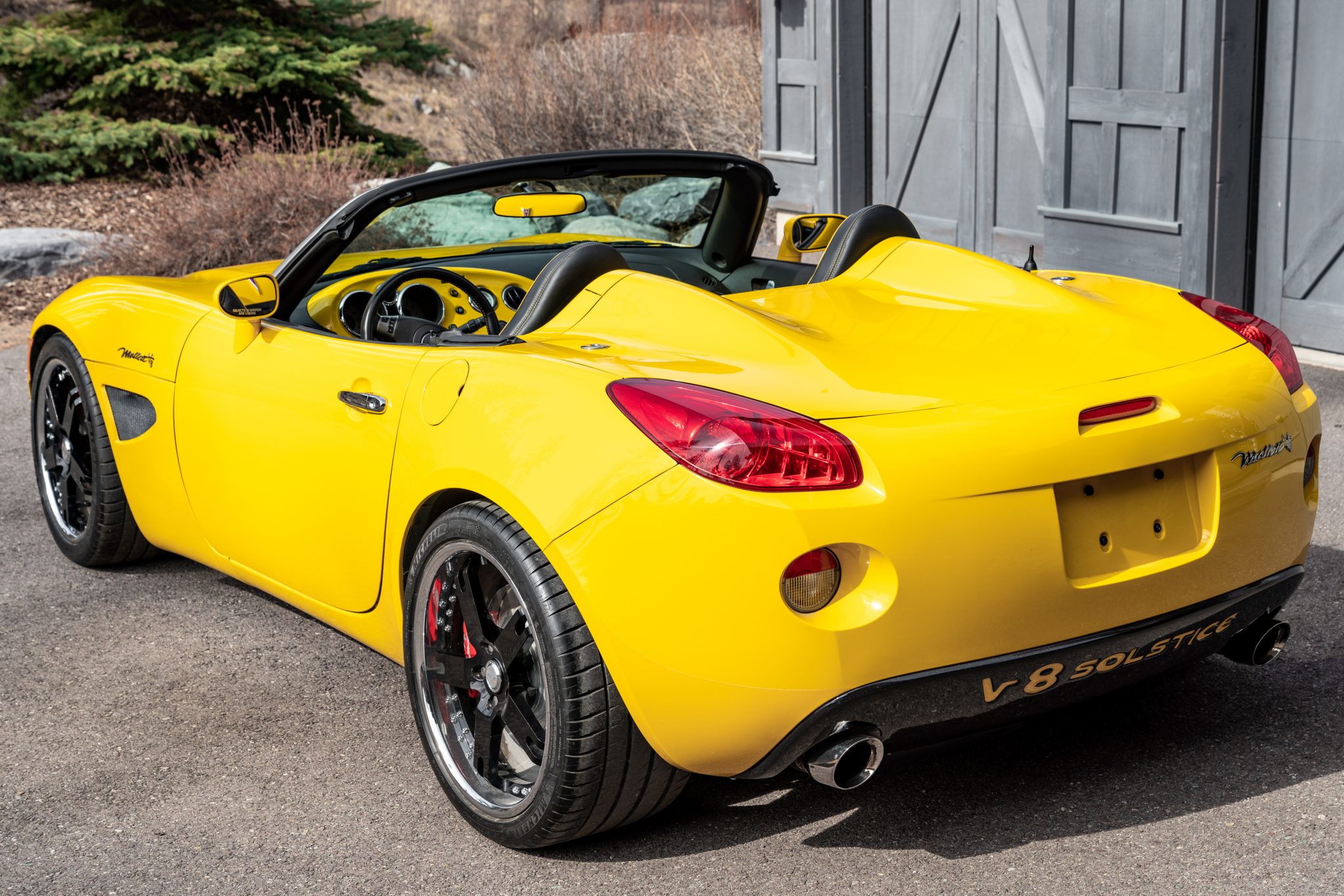 Black 19″ Avus five-spoke wheels are mounted with 275/35 front and 305/30 rear Michelin Pilot Sport 4 S tires that show 2020 date codes. A SSBC Tri-Power brake kit has been added, which features slotted titanium rotors and red Mallett-script calipers. Additional modifications include a power steering cooler, Mallett/Penske coilovers, aftermarket sway bars, and polyurethane rear control arm bushings. The brake fluid was flushed and an alignment was performed in August 2020 per the seller.