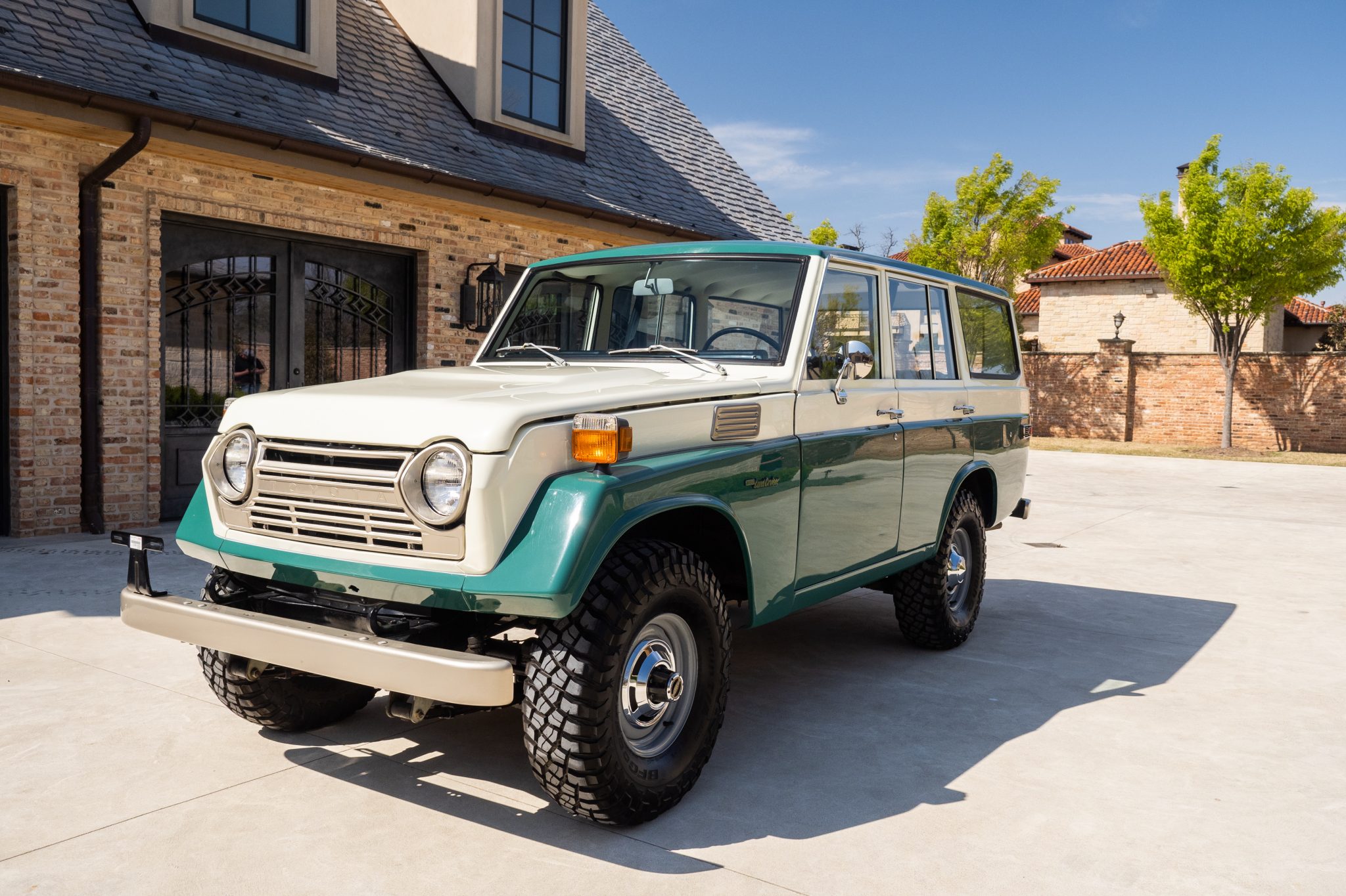 Factory-style 15″ steel wheels wear chrome hubcaps, and 33×10.5″ BFGoodrich Mud-Terrain T/A KM3 tires were mounted in 2020. Manually locking Warn hubs are fitted up front and shown further in the gallery below.