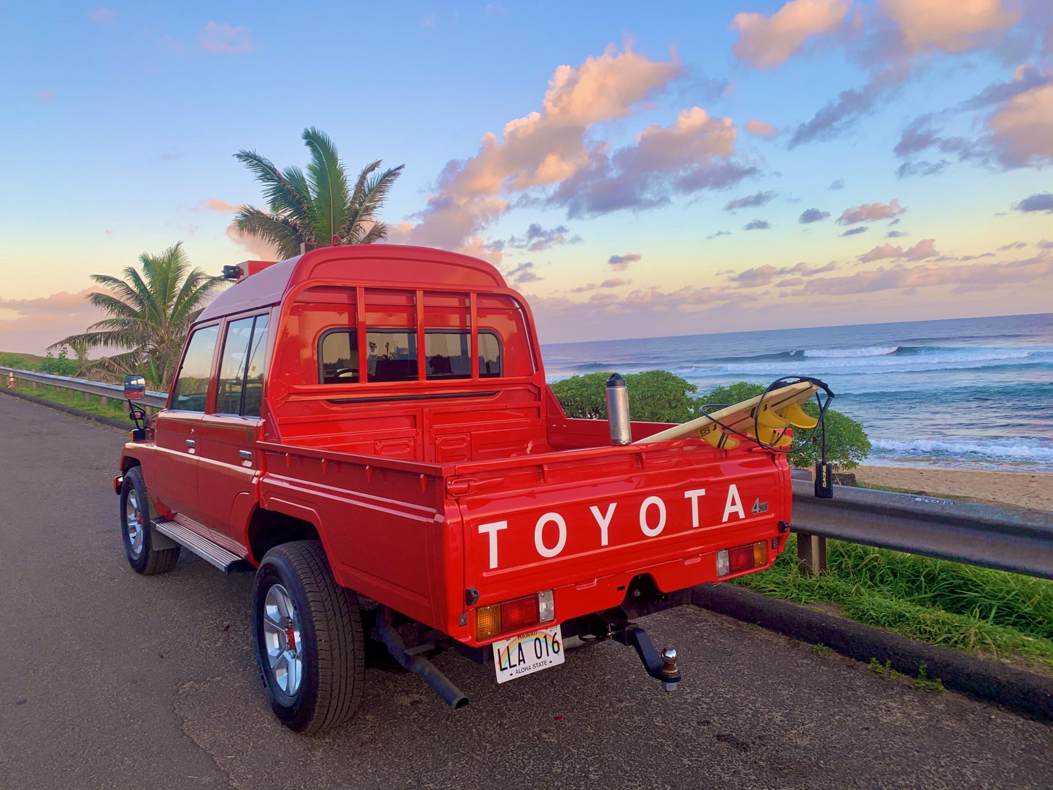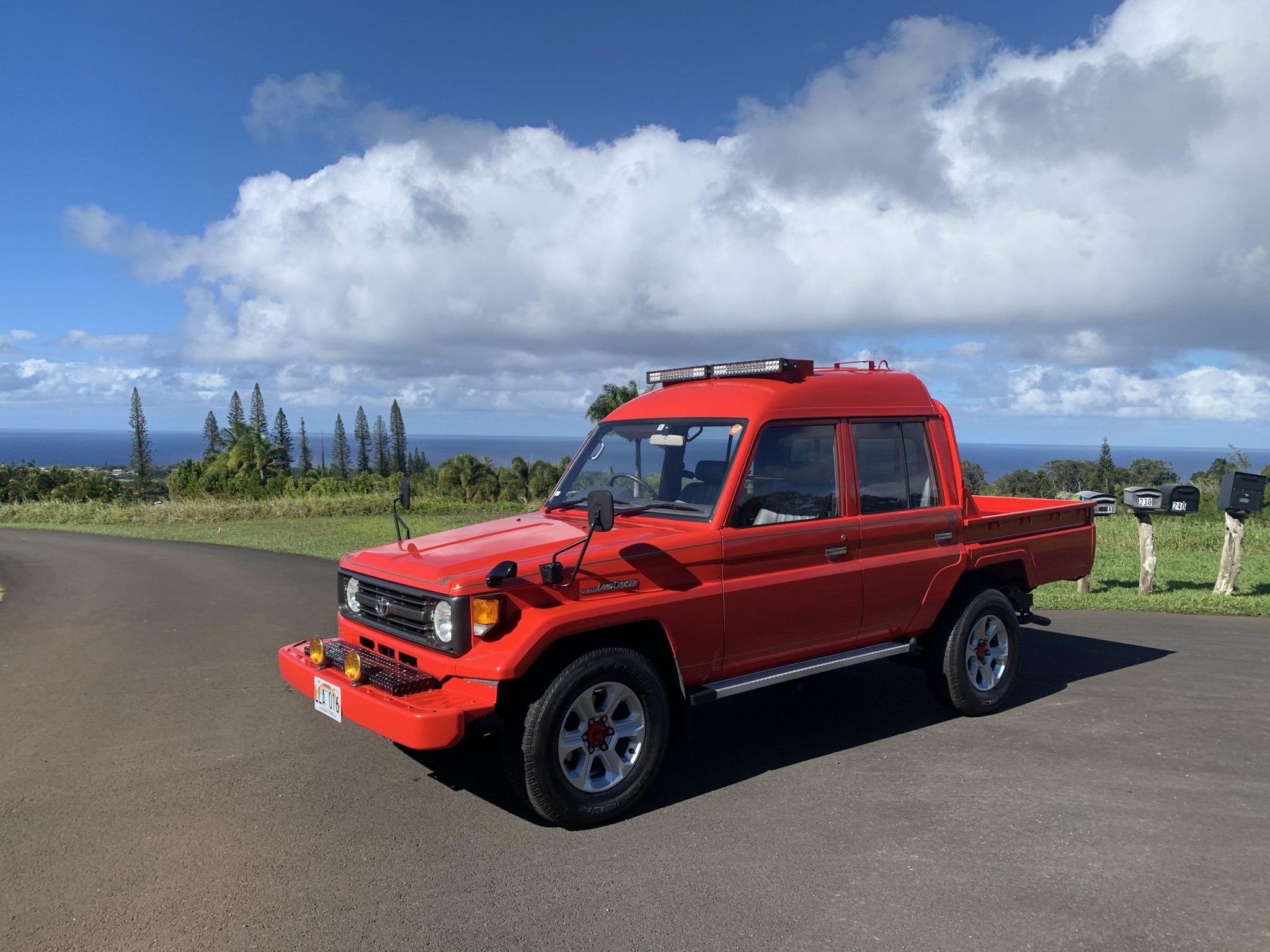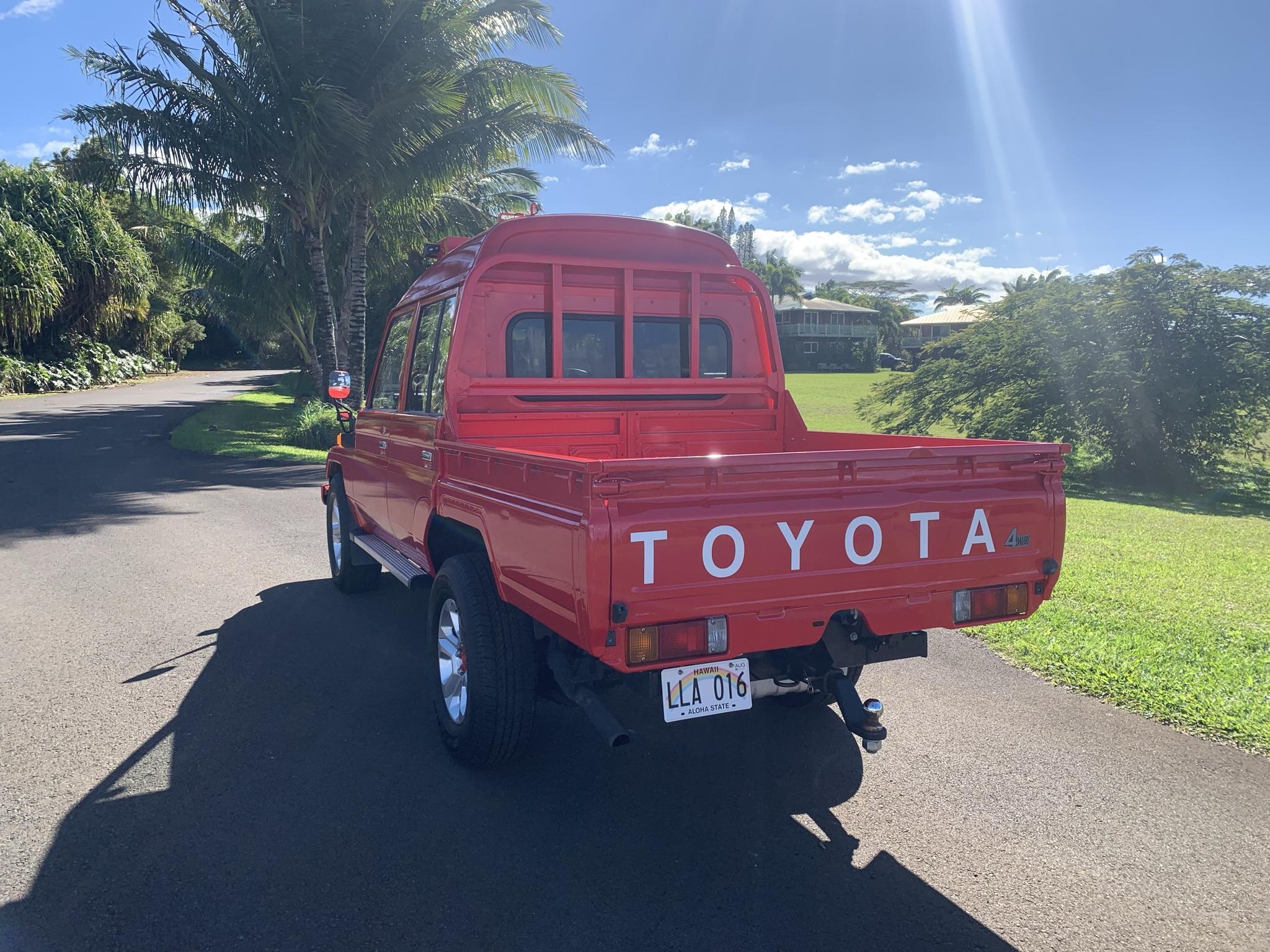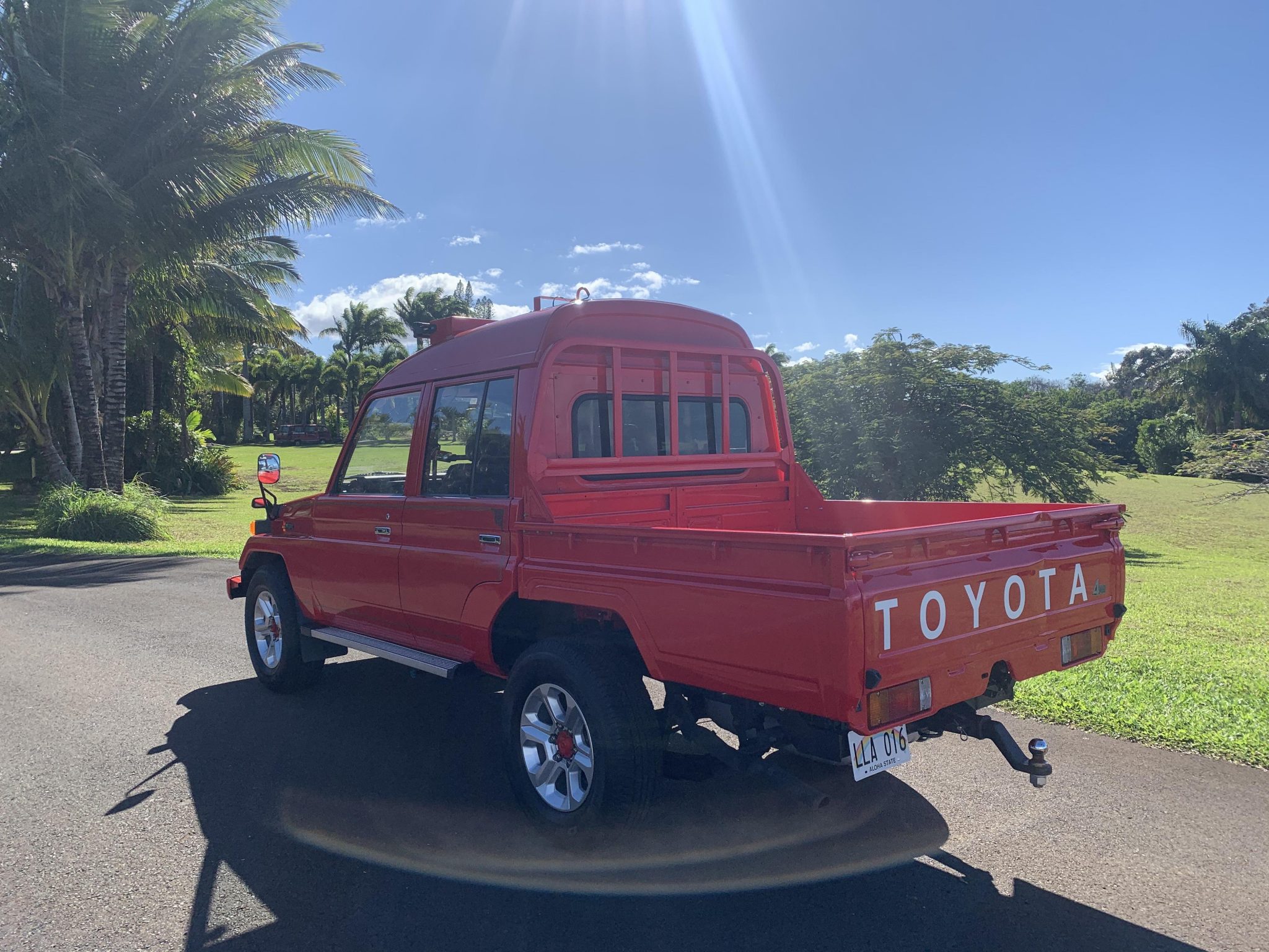 Silver 17″ wheels were sourced from a later Toyota truck and wear 265/70 Bridgestone Dueler H/T tires. Braking is handled by power-assisted front discs and rear drums. A spare set of wheels and tires is included in the sale.