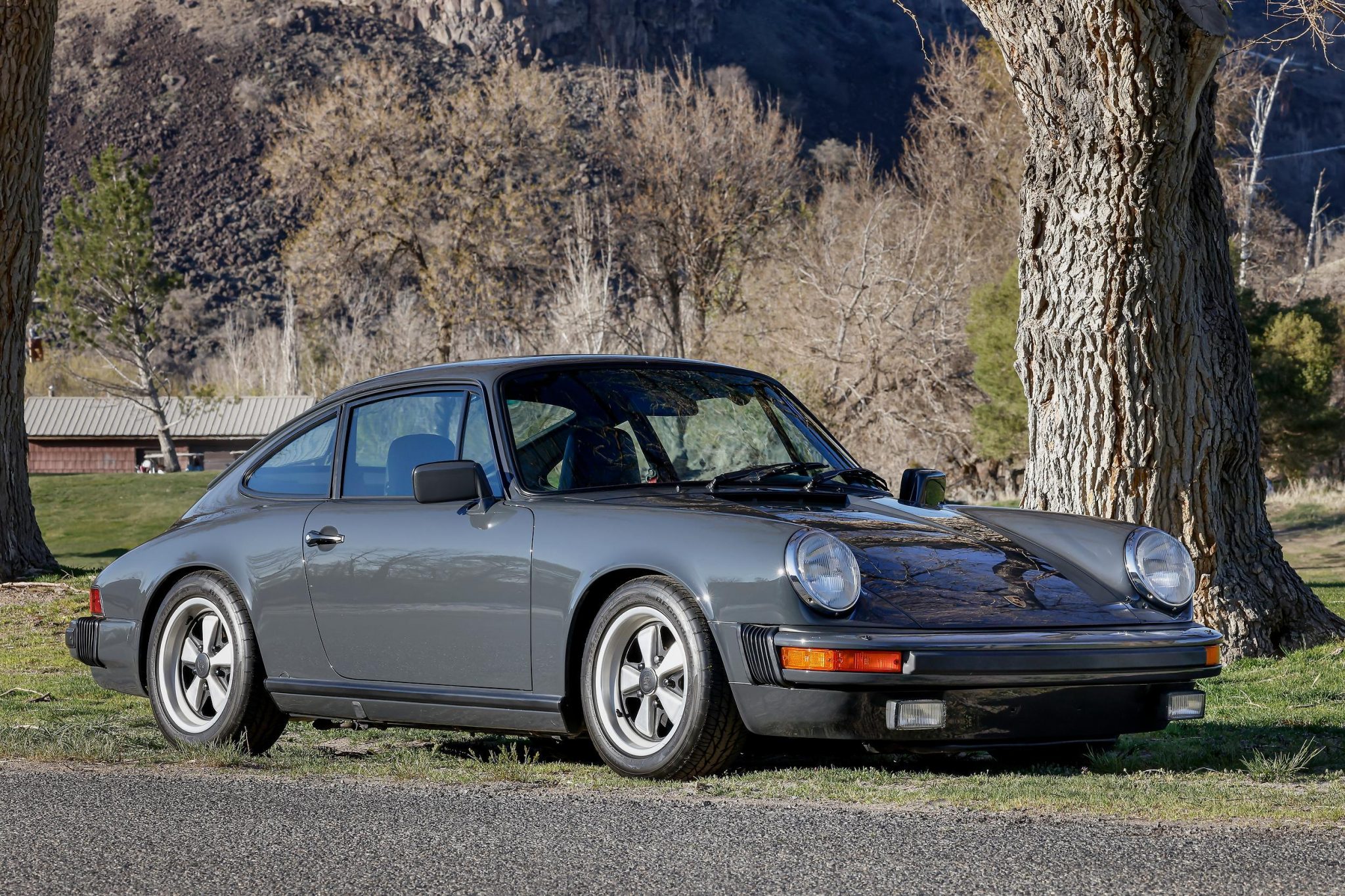 Fuchs 15×7″ alloy wheels wear 205/50 BFGoodrich g-Force Super Sport tires, and a space-saver spare is housed in the front compartment. The braking system was sourced from a 1977 911 Turbo according to the 1996 paperwork, while the suspension features Bilstein shock absorbers all around as well as 911 Carrera sway bars. The rear sway bar bushings were replaced in 2018.
