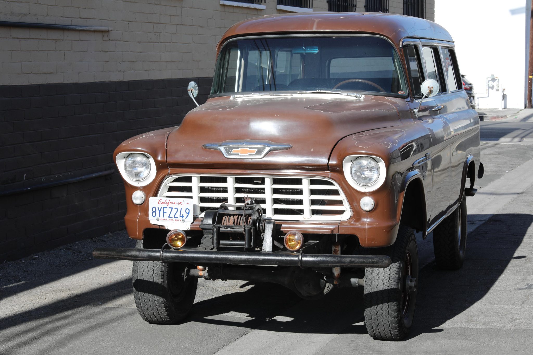 Brown-finished 16″ steel wheels are wrapped in front 265/70 Goodyear Wrangler RT/S and rear 235/85 BFGoodrich Mud-Terrain tires, which the seller notes are due for replacement. The truck is equipped with Warn manually locking front hubs. Work under current ownership is said to have included servicing the brakes and replacing the brake master cylinder.