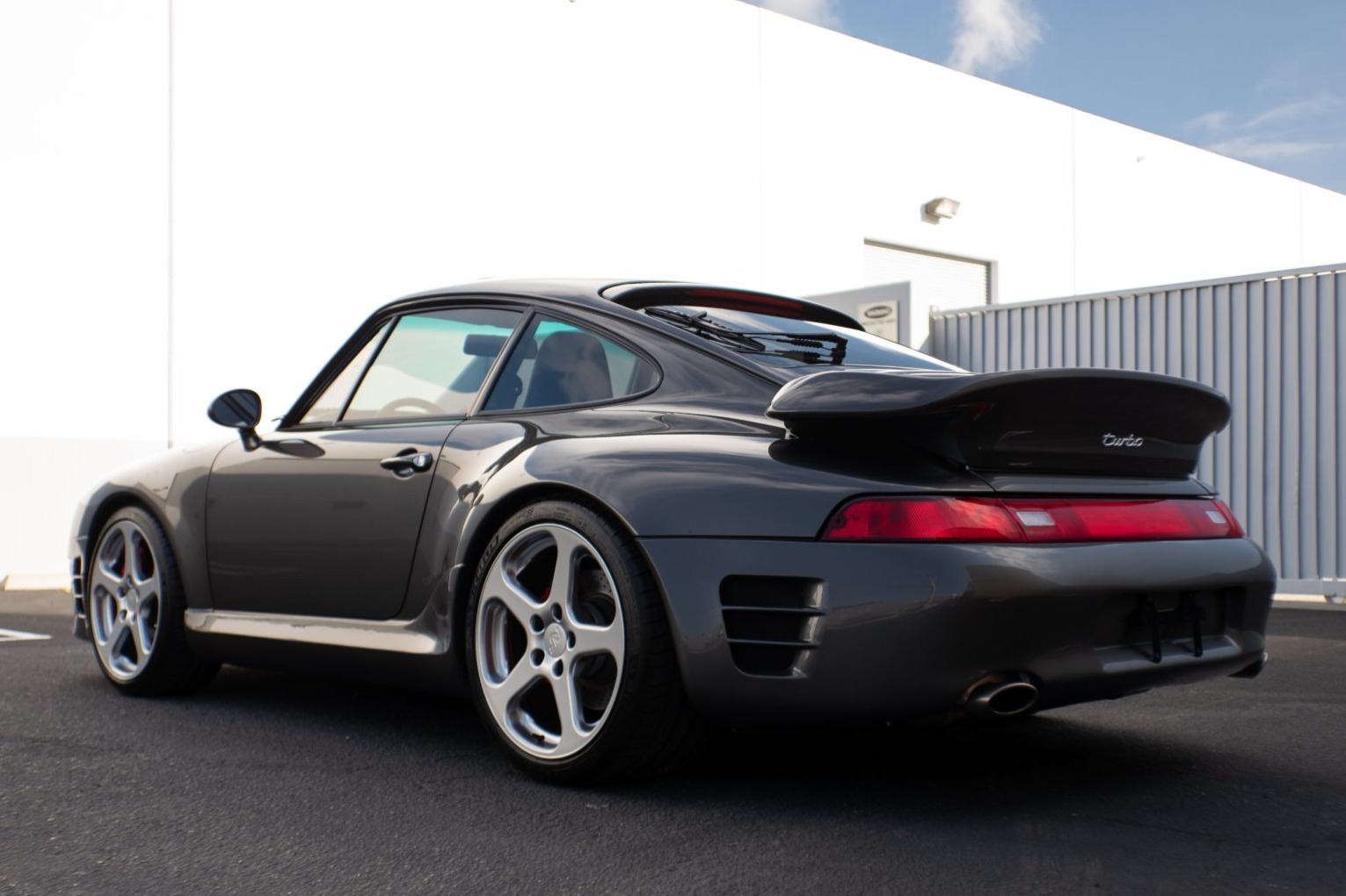 Five-spoke 19″ RUF wheels are wrapped in Michelin Pilot Sport 4 S tires that show 2018 date codes. Braking is handled by red four-piston calipers and cross-drilled rotors all around.