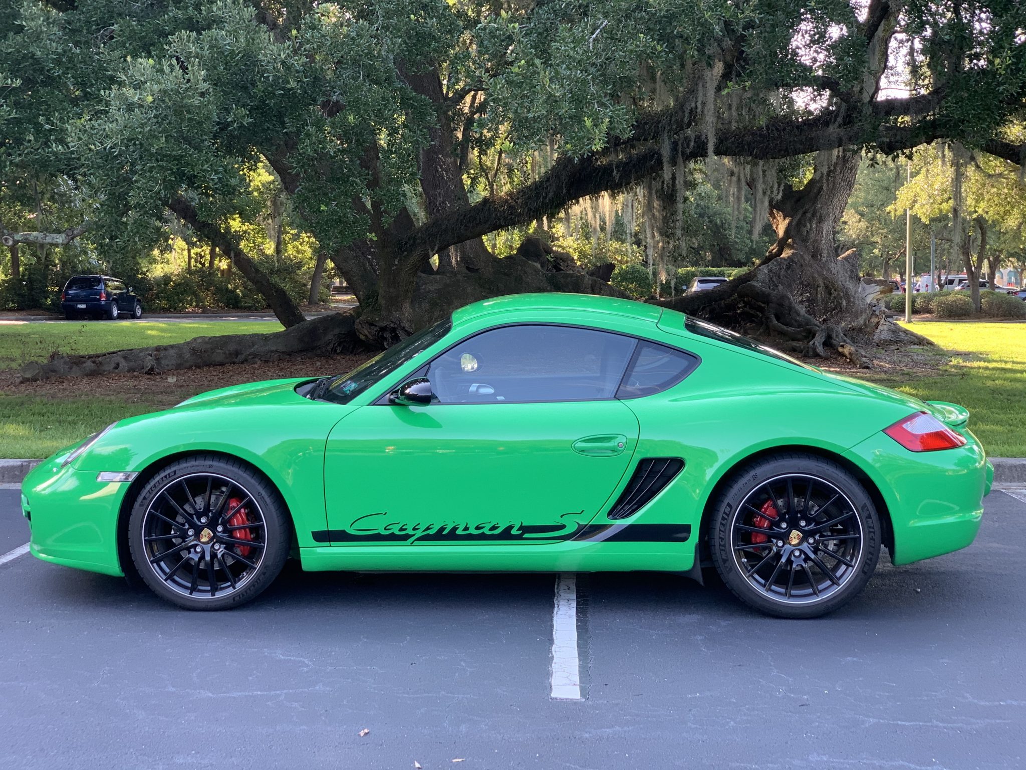 Gloss black 19″ Sport Design wheels wear colored Porsche-crest center caps and Michelin Pilot Sport 4S tires measuring 245/35 up front and 275/35 at the rear. Braking is via cross-drilled vented discs with red four-piston calipers at each corner and aftermarket stainless steel brake lines. The car is equipped with Porsche Active Suspension Management (PASM).