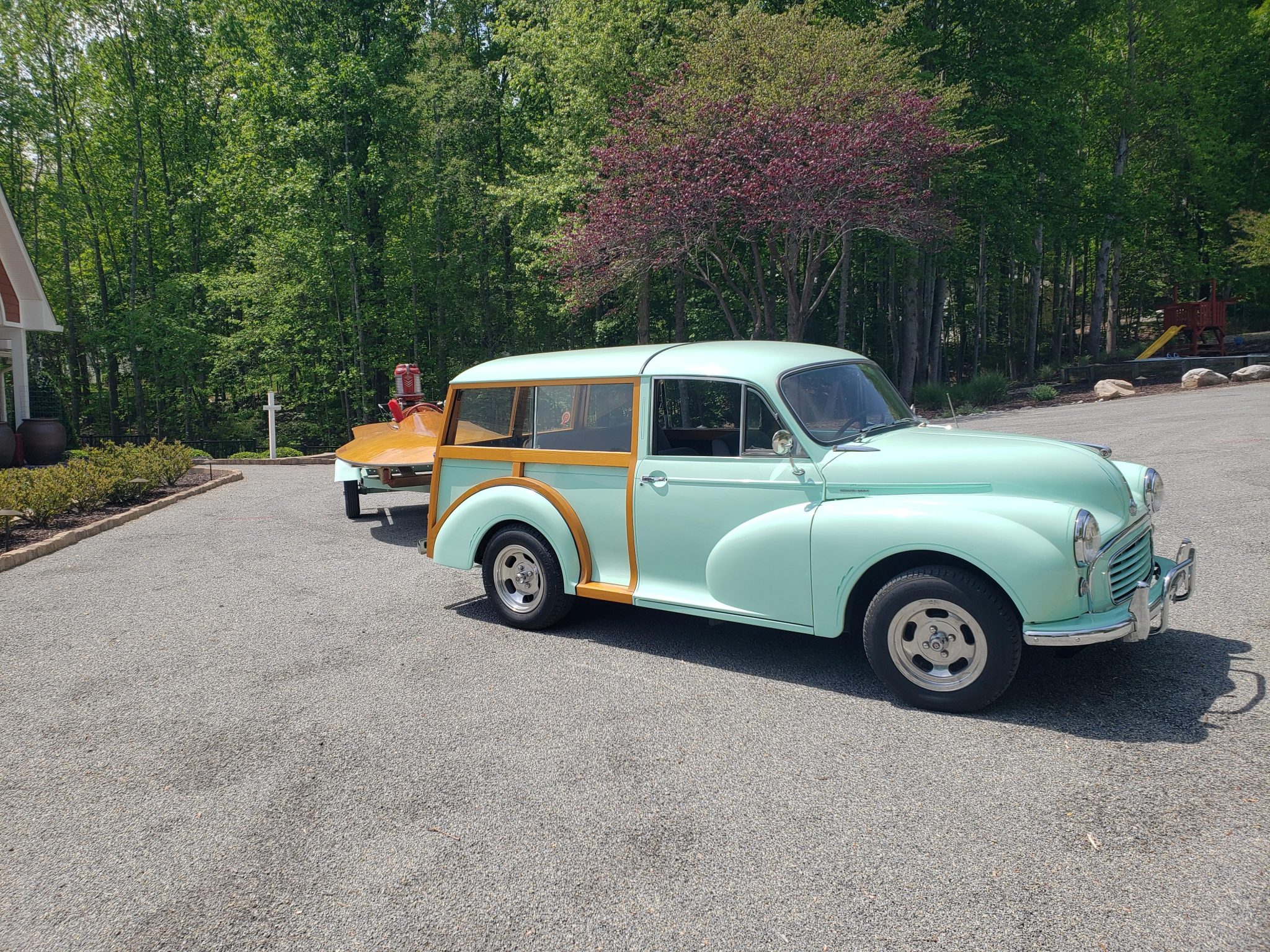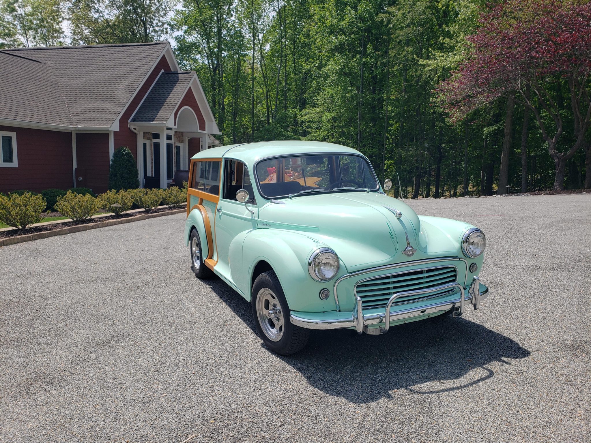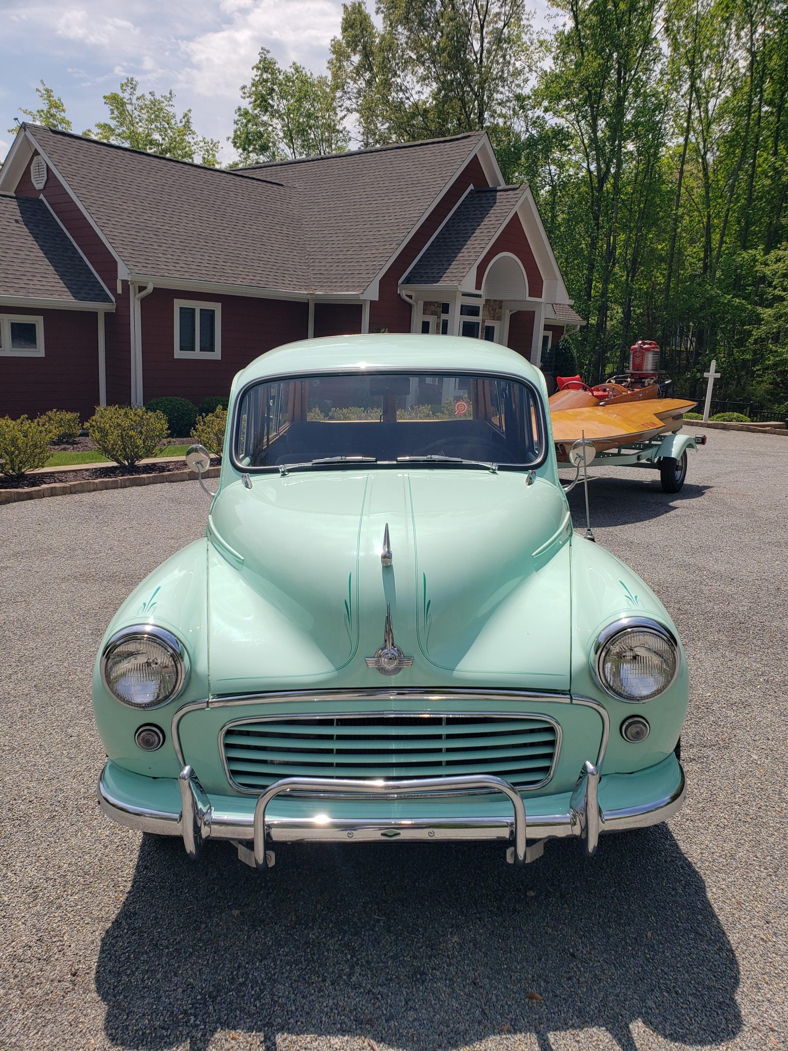 Slotted 13″ alloy wheels feature Morris center caps and are wrapped in Michelin all-season tires. The car features rack-and-pinion steering, a front torsion bar suspension, and rear semi-elliptical leaf springs. Braking is from drums at all four corners, and the fronts were overhauled in 2011.
