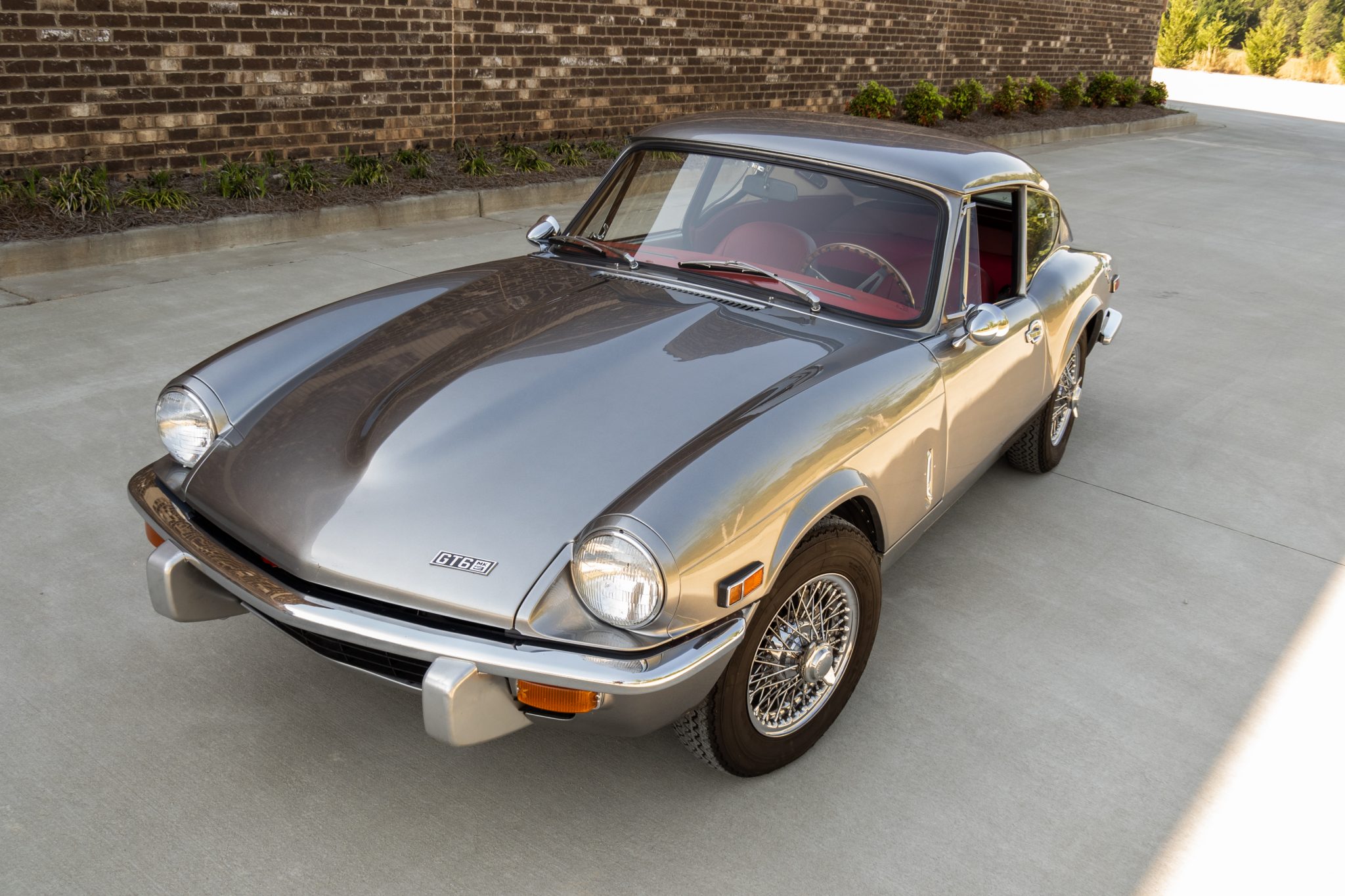 Chrome 13″ wire wheels with two-eared knock-offs are wrapped in 155-series Michelin XAS FF tires. The suspension, front disc brakes, and rear drums were overhauled during the refurbishment.
