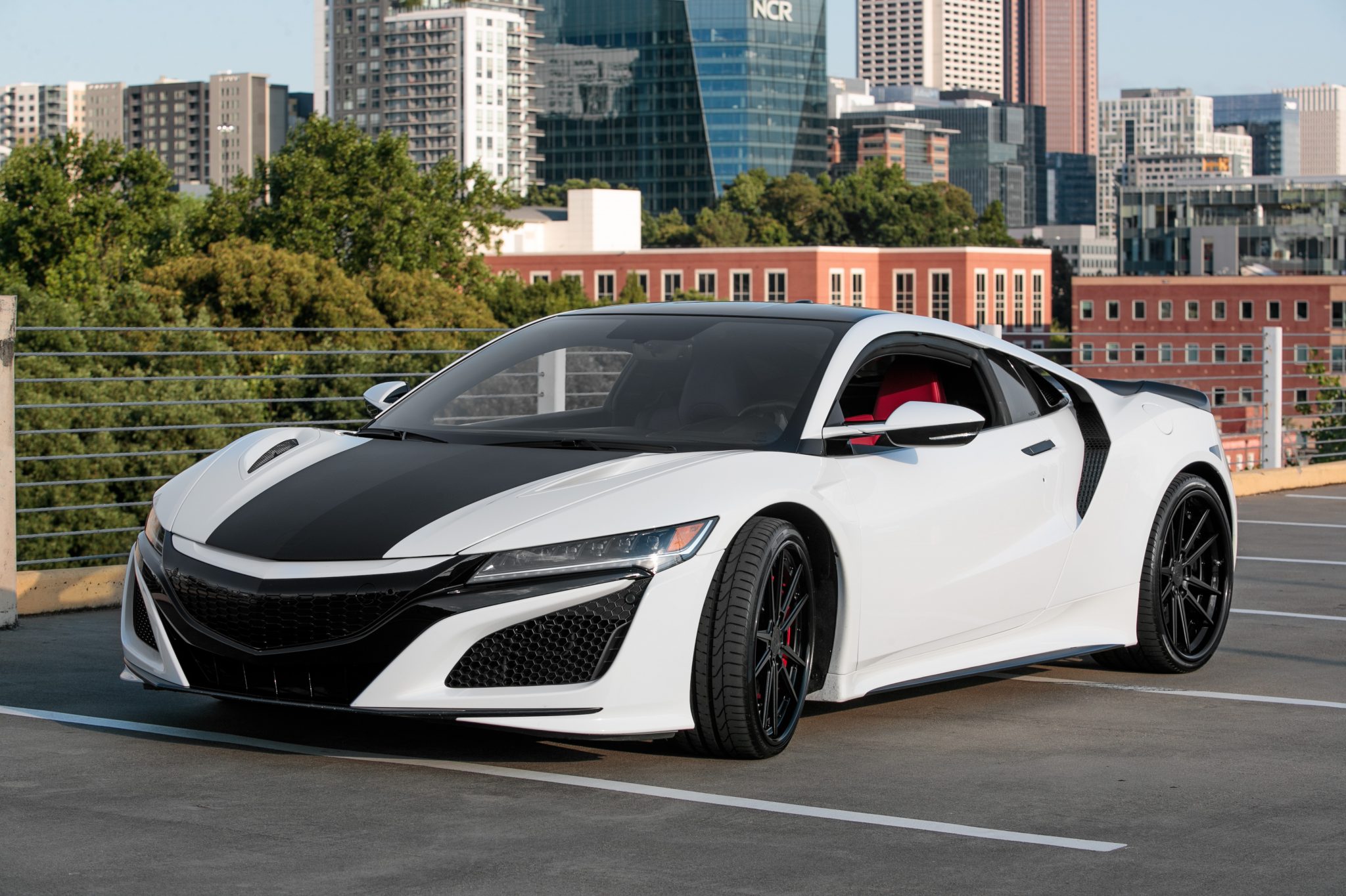 Black-finish Strasse SV1 FS-series wheels measure 20″ in diameter up front and 21″ out back and wear Pirelli P Zero tires. The car features double-wishbone front and multi-link rear suspension with magnetorheological dampers at each corner. Braking is provided by optional carbon-ceramic brake rotors and red-finish calipers.