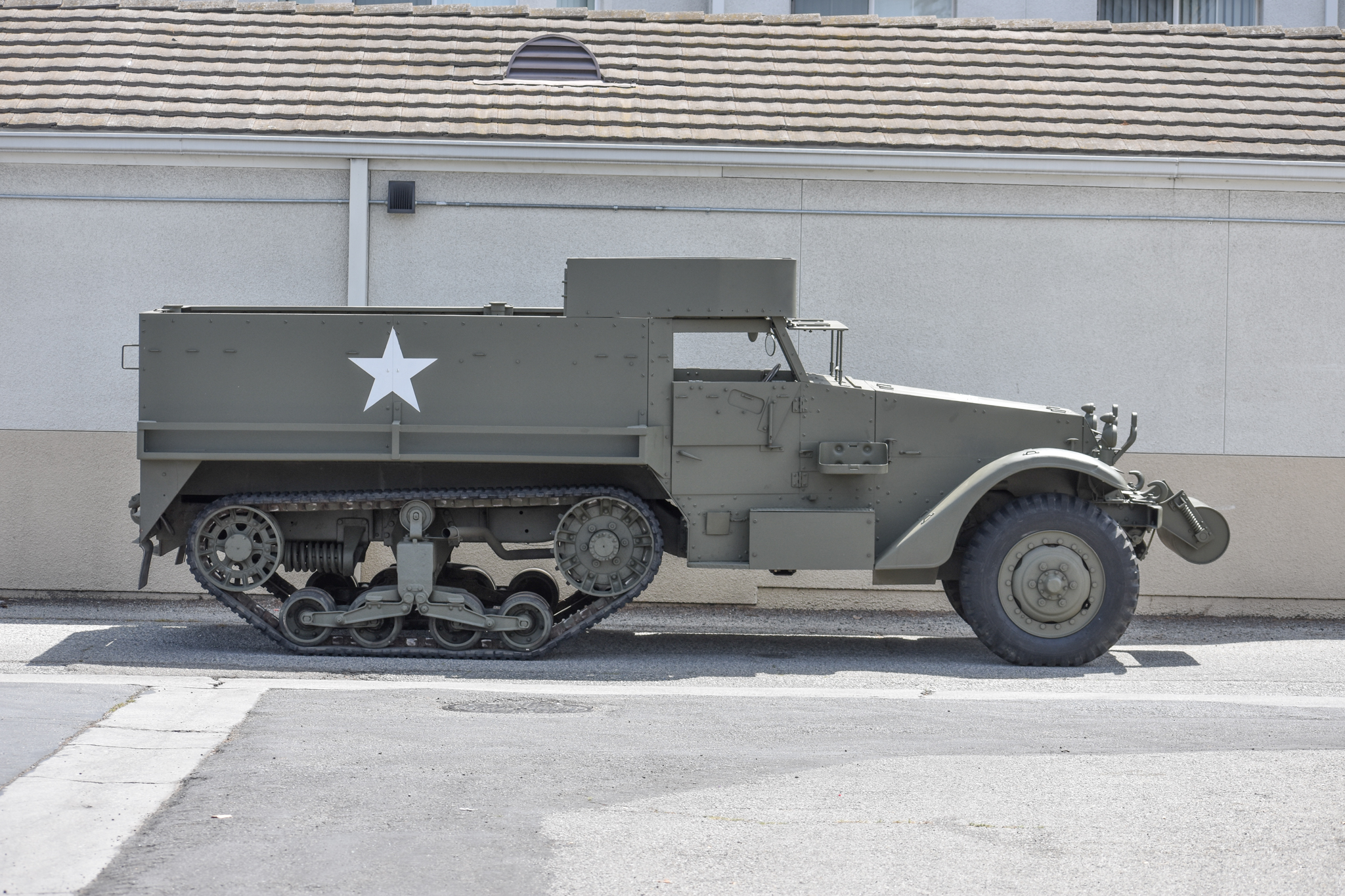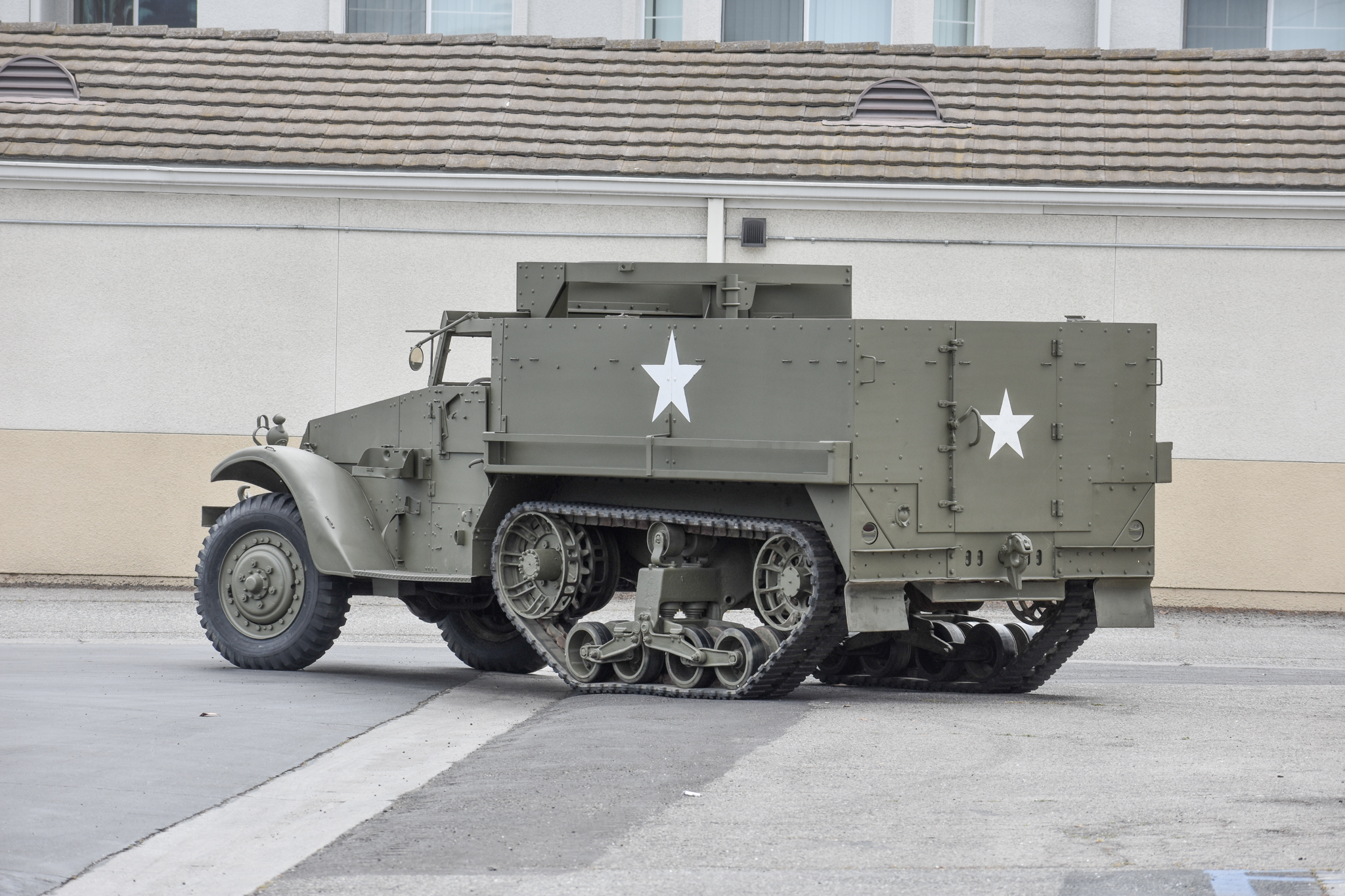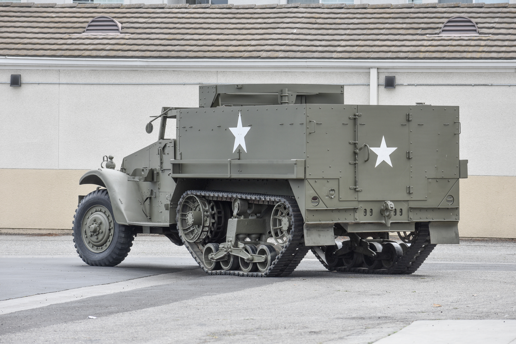 The front multi-piece steel wheels are mounted with 8.25-20 Specialty Tires of America military-style tires, while the rear features rubber-coated steel treads. The suspension features elliptical springs up front and vertical volute springs out back. Braking is handled by hydraulically assisted drums.