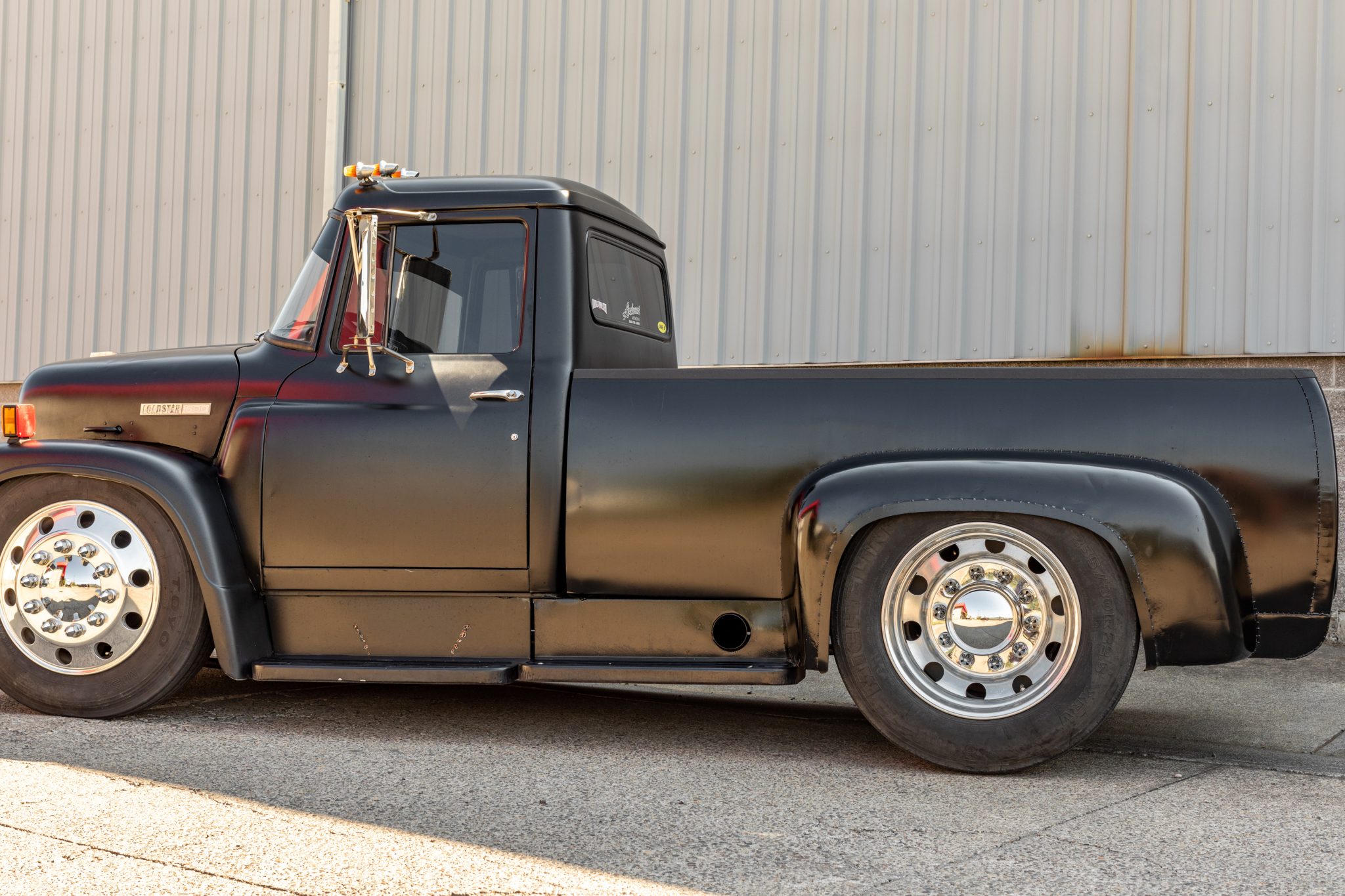 The 22.5″ polished Alcoa wheels wear 245/75 Toyo M154 tires up front and 235/80 Michelin X tires out back. Braking is handled by power-assisted four-wheel discs. The truck features a custom air suspension with Firestone airbags and a Viair compressor integrated into the front and rear axles which are said to be from a 2000 International truck. An air leak in the suspension was repaired within the last six months.