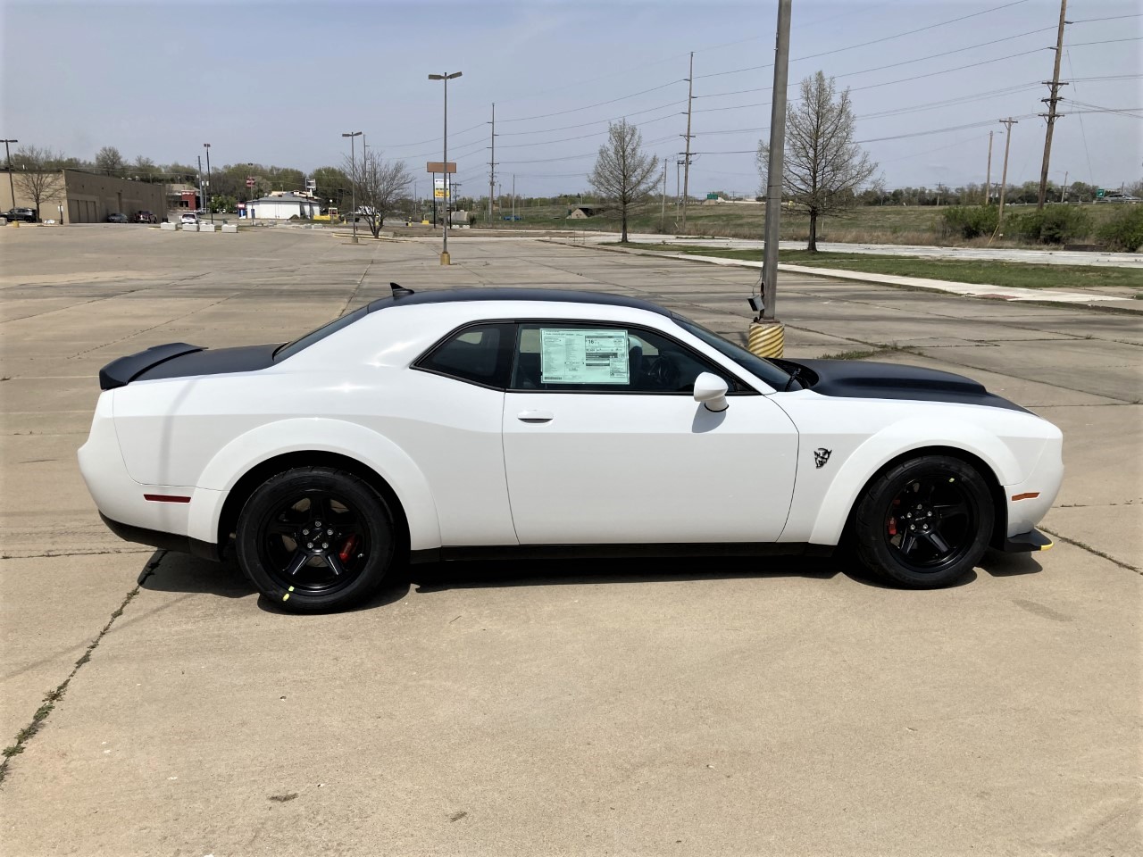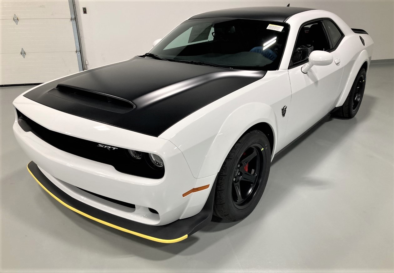 Black 18″ alloy wheels are wrapped in 315/40 Nitto NT05R drag radial tires that feature Demon emblems. Marking stickers remain affixed to the wheels and tires. The car is equipped with electronic body stability and traction control systems as well as Brembo brake calipers and slotted rotors at all four corners. A set of front-runner drag wheels is included in the Demon Crate.