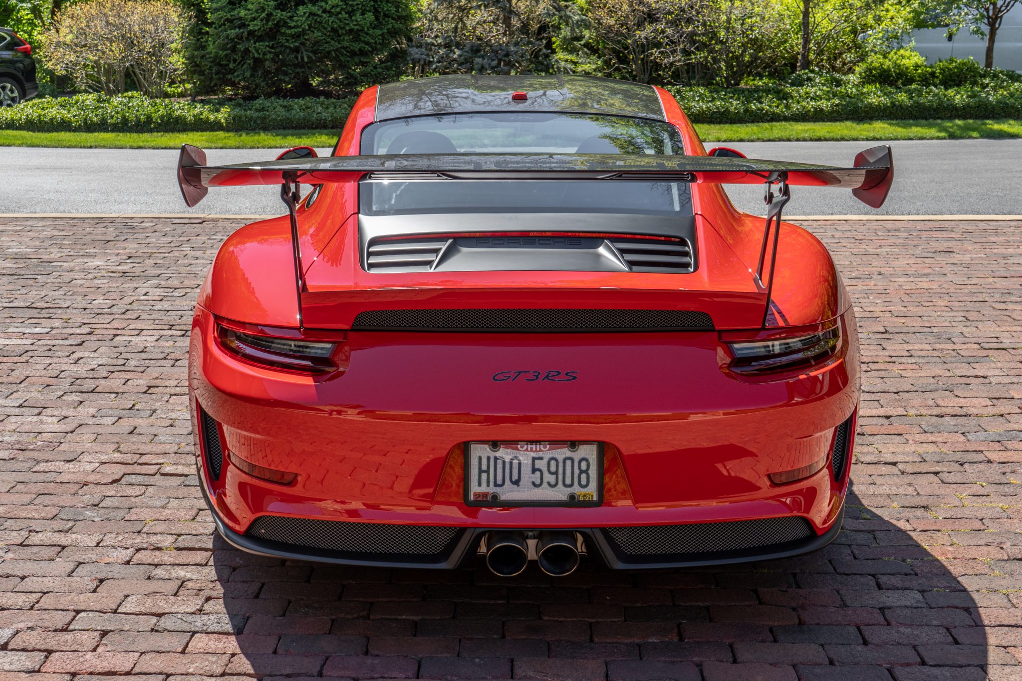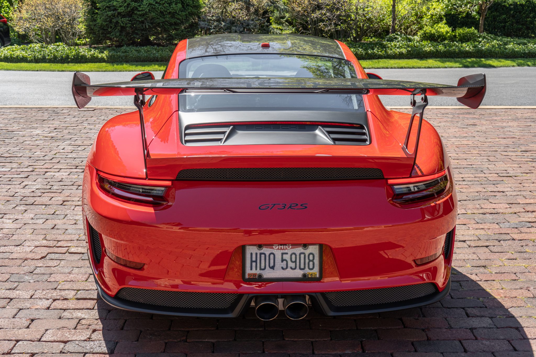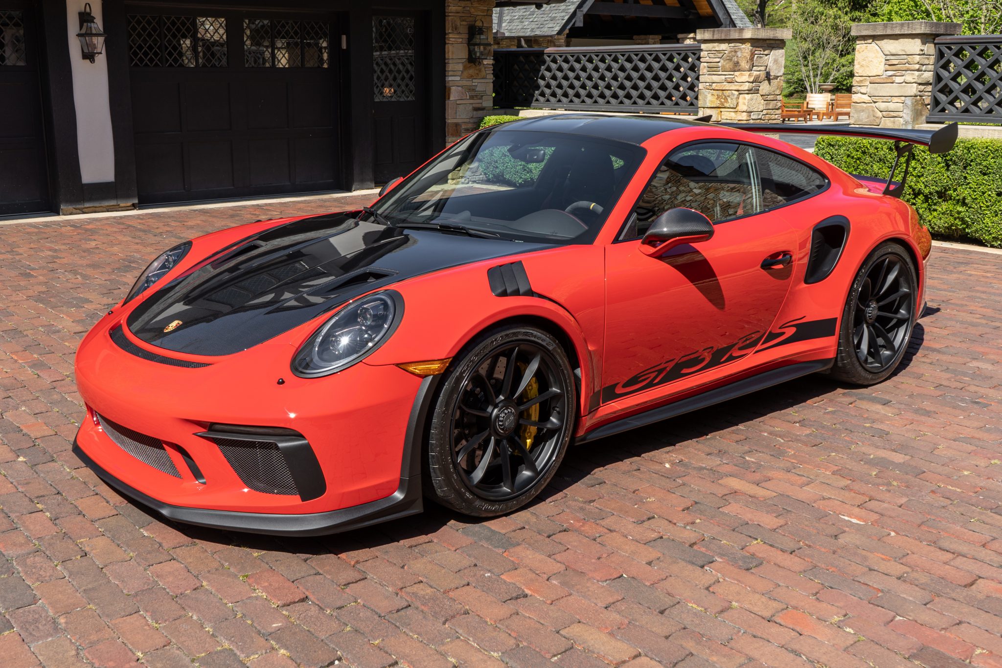 Factory center-lock wheels measuring 20″ up front and 21″ out back are finished in black and mounted with Dunlop Sport Maxx Race 2 tires measuring 265/35 and 325/30, respectively. The Weissach Package includes stiffer carbon-composite anti-roll bars, and this example is optioned with Porsche Ceramic Composite Brakes with yellow-finished calipers as well as the front-axle lift system.