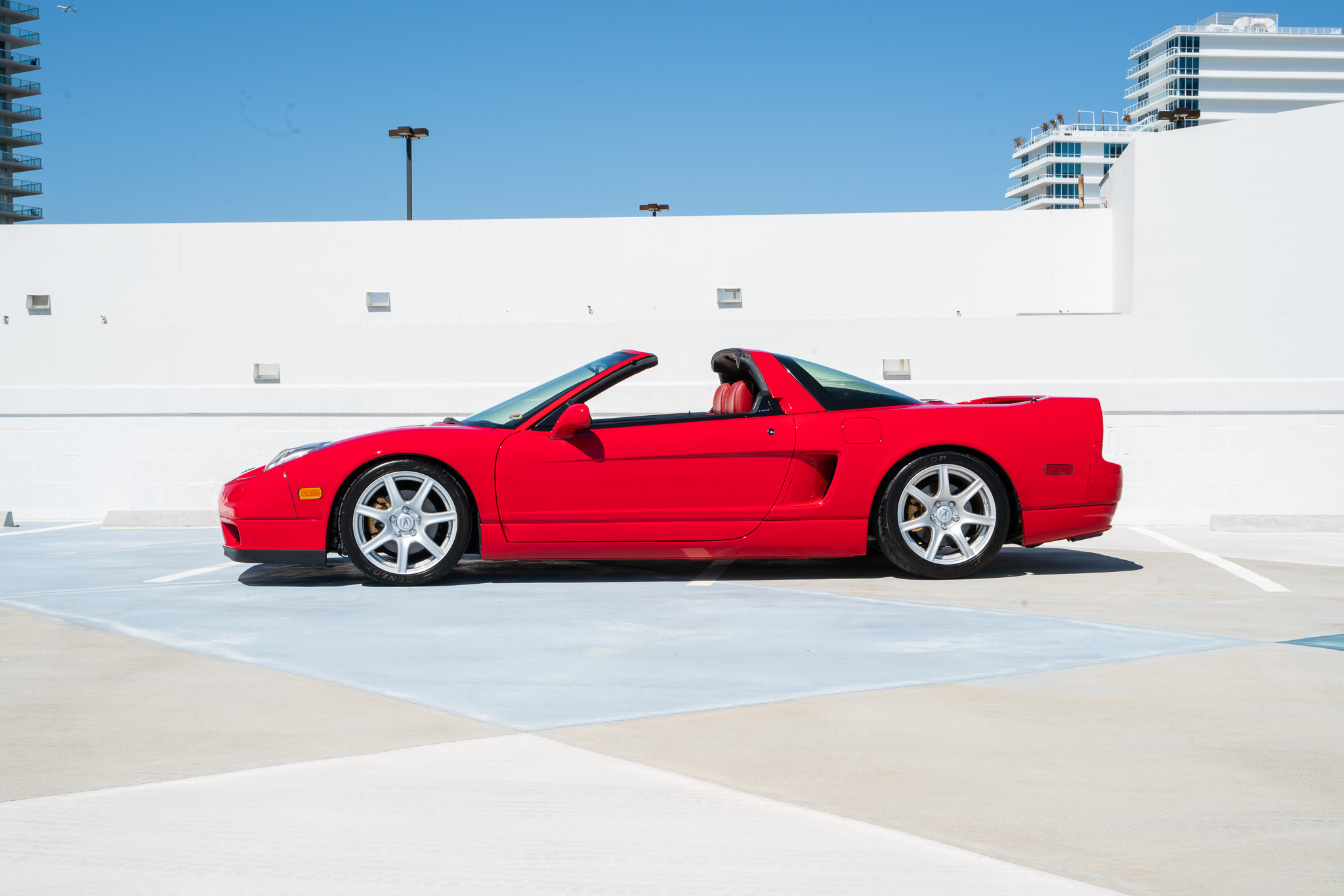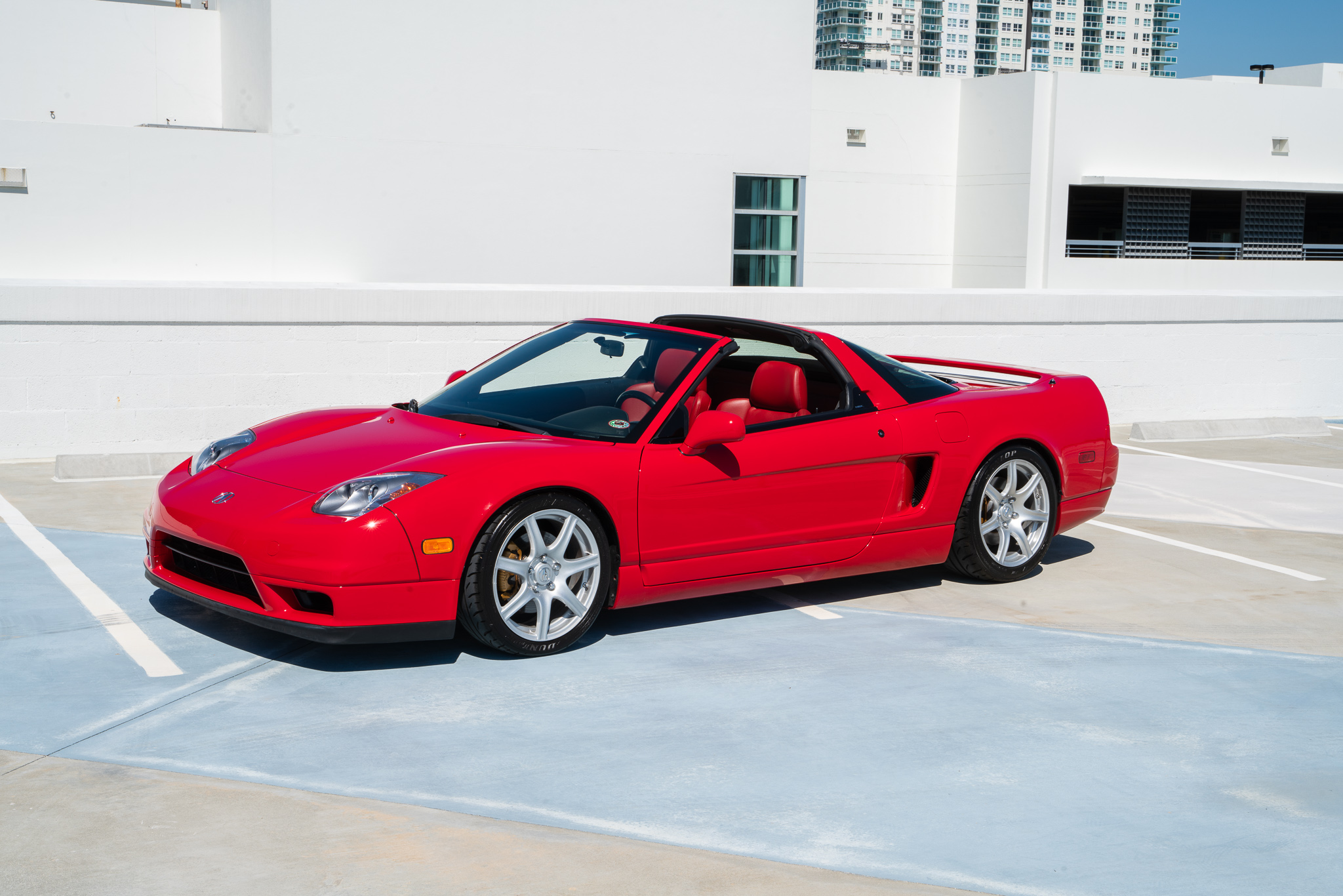 Silver-finished 17″ forged wheels wear Acura center caps and are mounted with Dunlop Direzza ZII tires. The disc-brake system features gold-finished calipers at each corner, and the ride height has been lowered.