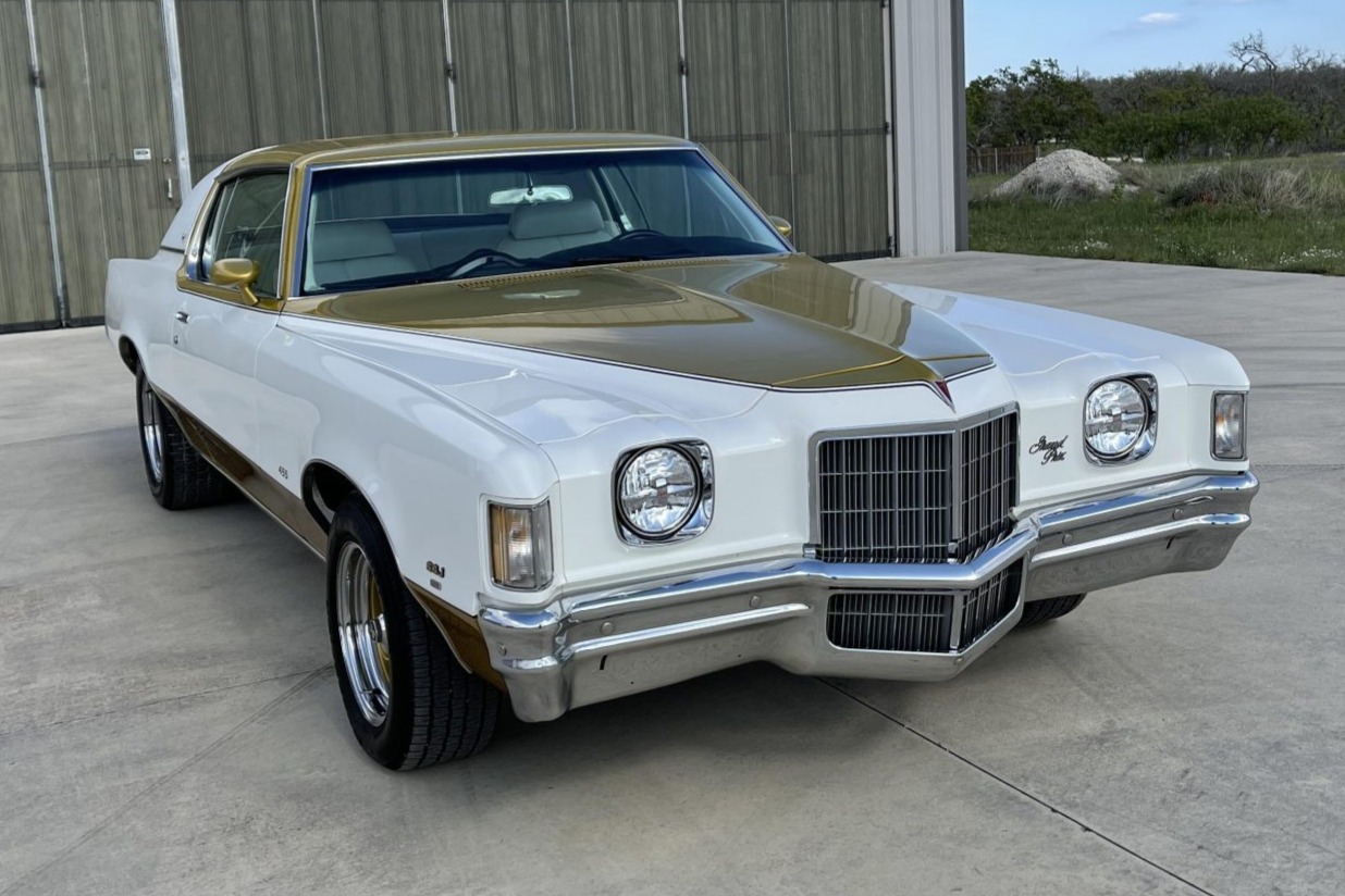 Five-spoke 15″ wheels feature chrome lips, gold centers, and Hurst center caps and are wrapped in 225/60 front and 235/60 rear BFGoodrich Radial T/A tires. Braking is provided by power-assisted front discs and rear drums.