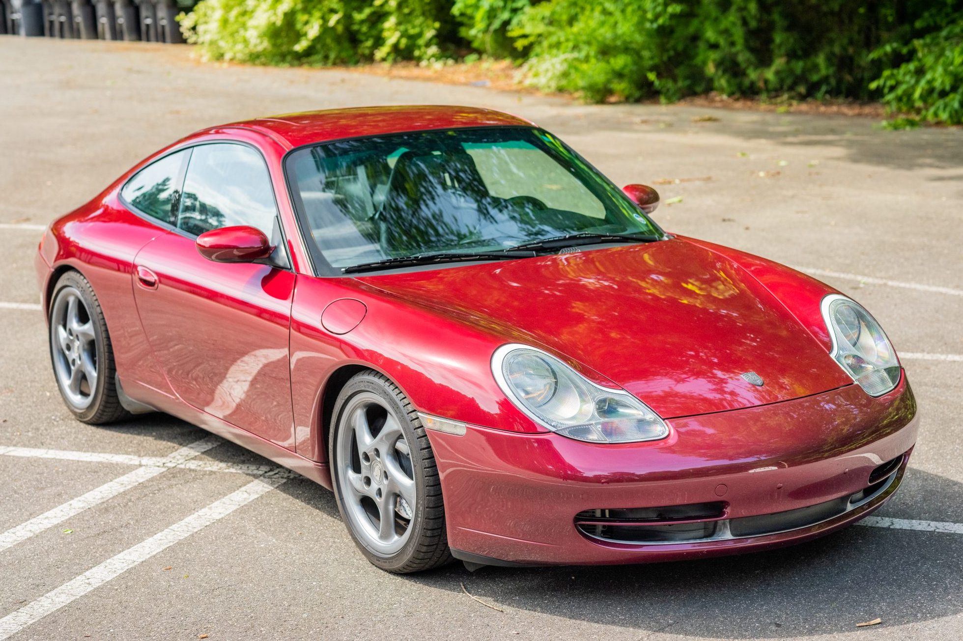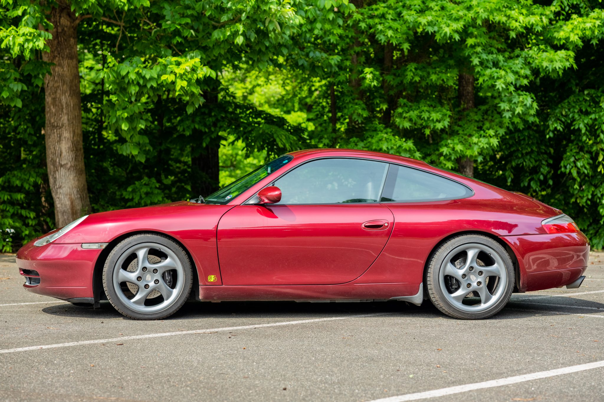Staggered-width 18″ Turbo-look wheels have been refinished in grey and are mounted with Michelin Pilot Sport A/S 3+ tires that show 2019 date codes. Bilstein B8 sports shocks and H&R springs were installed in 2013, and the braking system features four-piston calipers paired with vented and cross-drilled rotors.