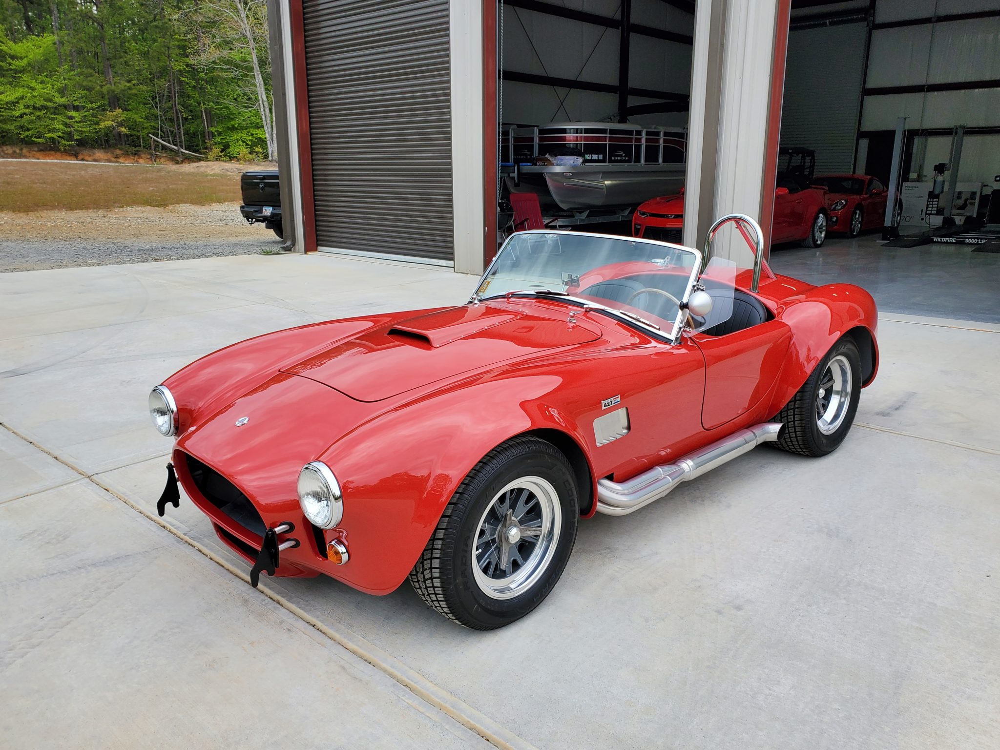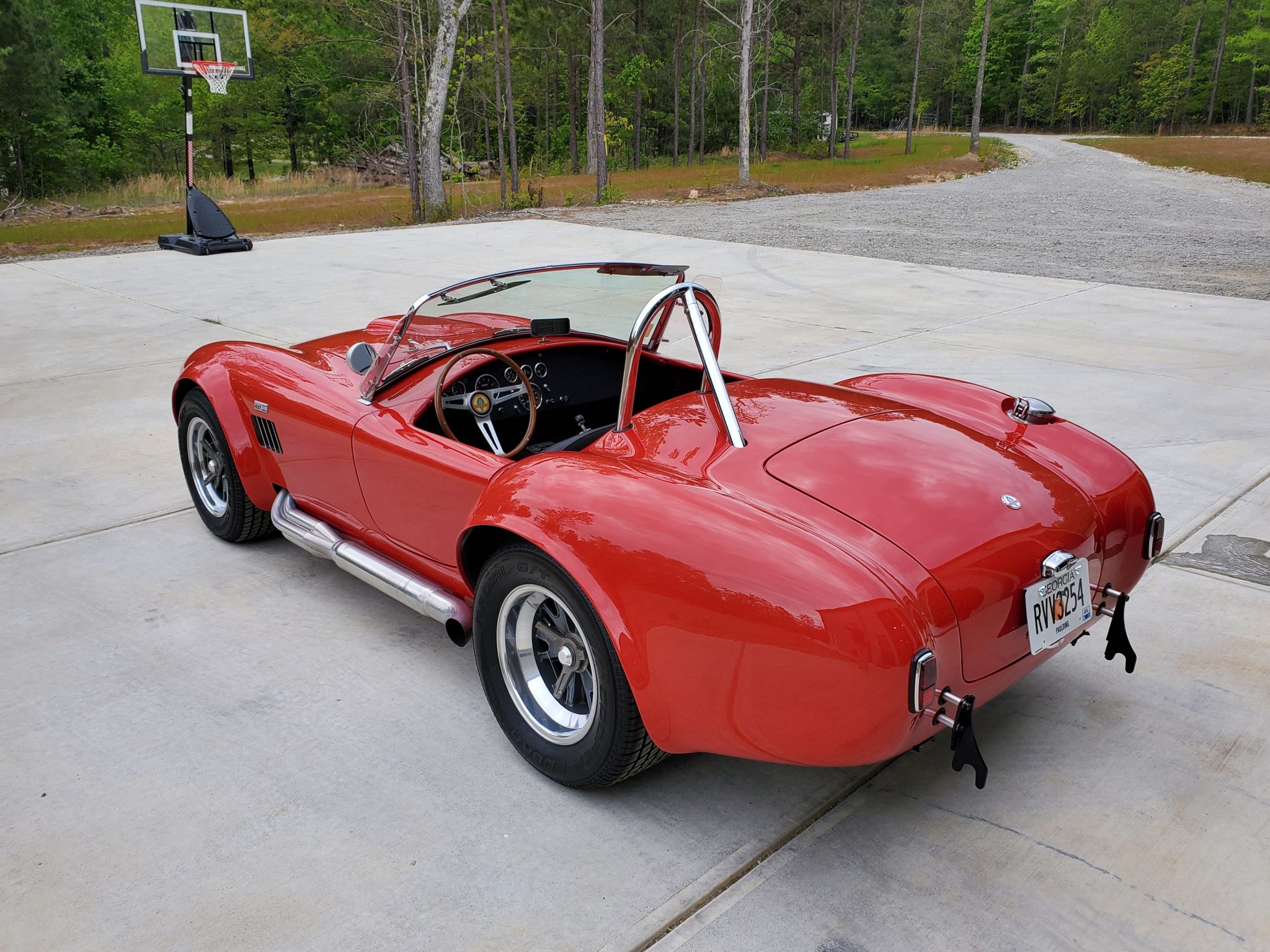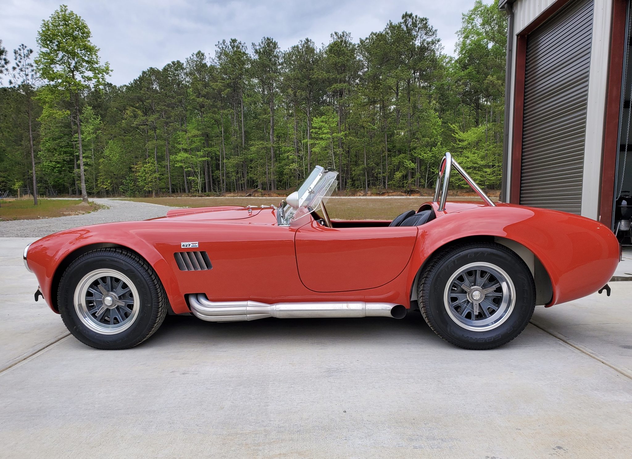 Halibrand-style 15″ wheels secured with three-eared knock-offs are wrapped in staggered-width Cooper Cobra tires that were fitted during current ownership. Adjustable coilover suspension and Shelby-branded Baer calipers mounted over disc brakes are fitted at all four corners, the latter of which were serviced during current ownership with replacement of the brake master cylinders and front pads.