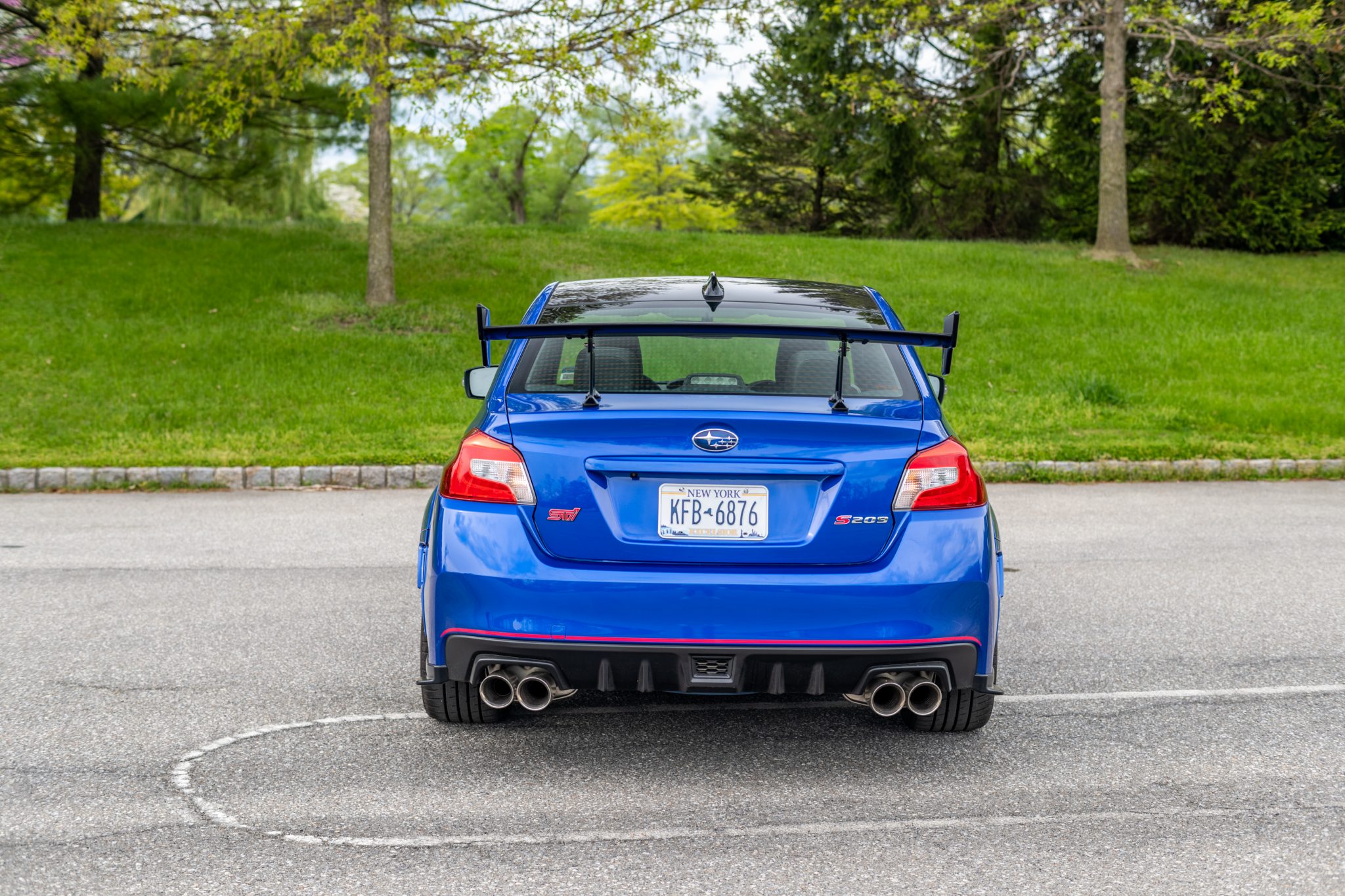 Factory 19″ forged wheels feature a satin-gray finish and are wrapped in Dunlop SP Sport Maxx GT 600A tires that measure 265/35 at each corner and were designed for the S209 in conjunction with engineers at STi. Braking is handled by silver-finished Brembo brake calipers paired with cross-drilled rotors at all four corners. Suspension upgrades on the S209 include STi-tuned Bilstein dampers, STi-designed front and rear draw stiffeners, an STi strut tower brace, and pillow-ball suspension bushings.