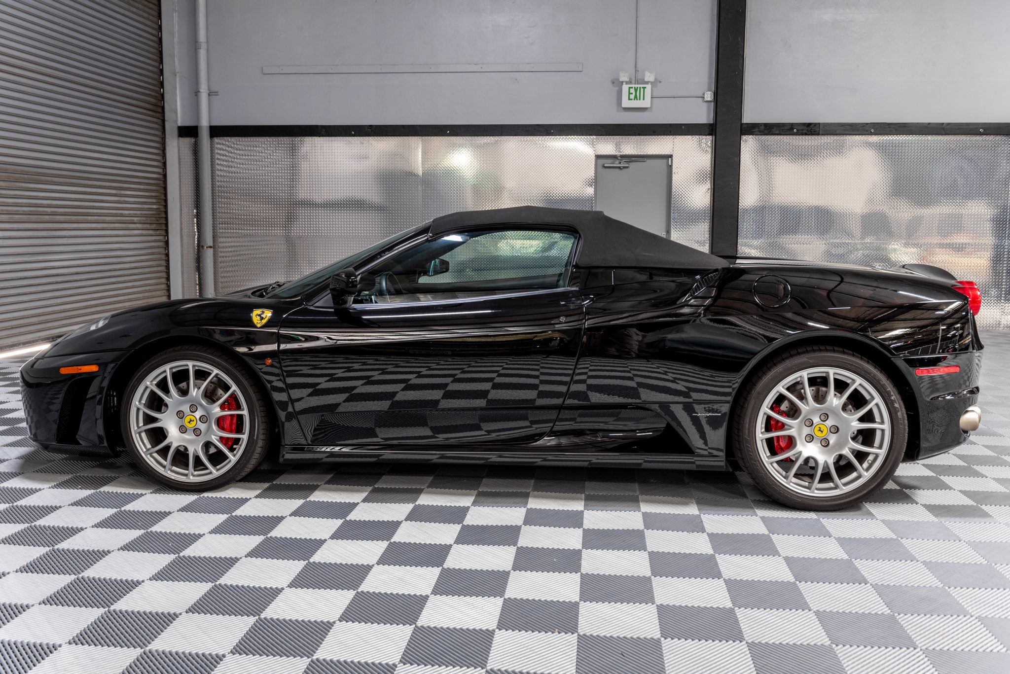 Optional Challenge-style 19″ alloy wheels are wrapped in Bridgestone Potenza RE050A tires measuring 225/35 at the front and 285/35 out back and showing date codes from 2005. Braking is handled by drilled and ventilated rotors with optional red-finished calipers.