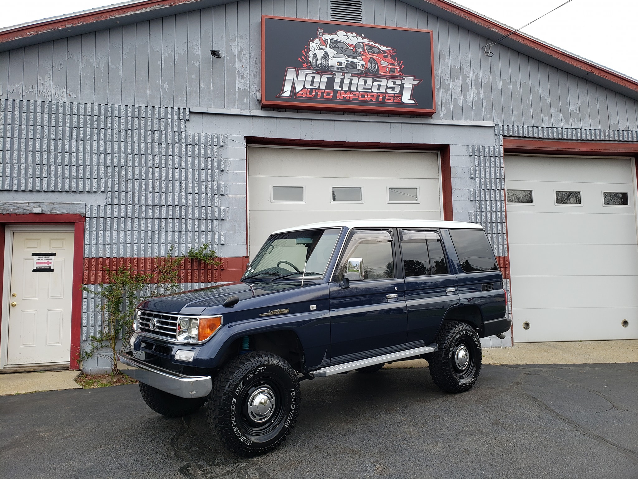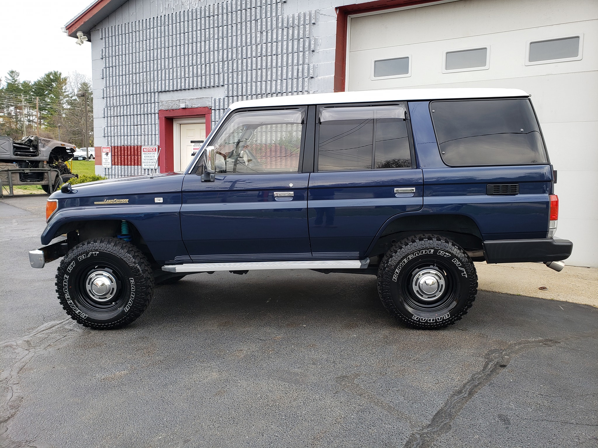 Originally finished in a two-tone scheme of Dark Blue Mica Metallic and Flaxen Mica Metallic (27Z), the body was repainted its current shade of blue with a white roof during prior ownership in Japan. A mirror has been added to the passenger-side fender, and additional features include an automatic antenna, a sunroof, headlamp washers, adjustable side mirrors, aftermarket window tint and visors, chrome bumpers and running boards, and a hitch receiver. Paint blemishes are noted by the selling dealer.