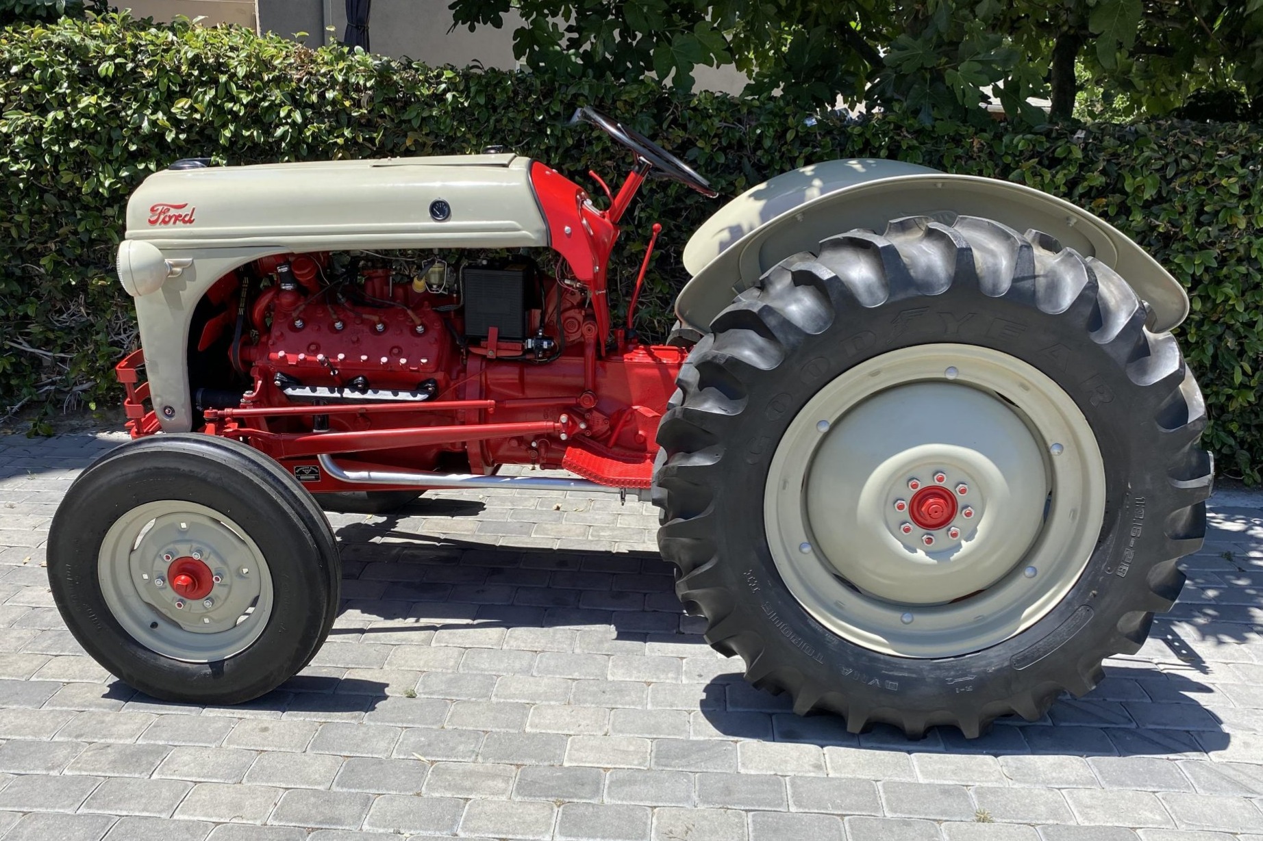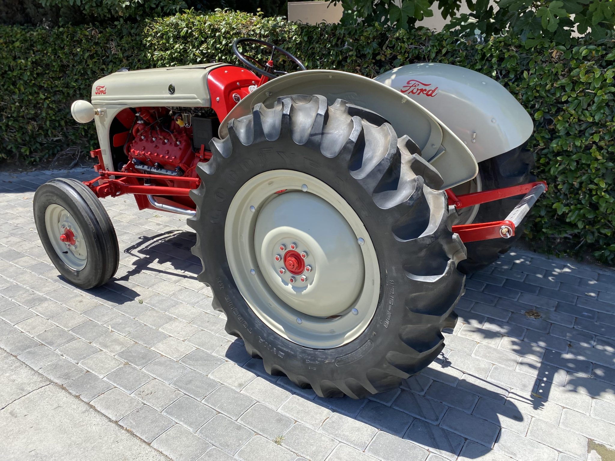 The body-colored six-bolt front wheels are mounted with Firestone 6.00-16 rubber, while the eight-bolt rears are wrapped with Goodyear 13.6-20 tires.